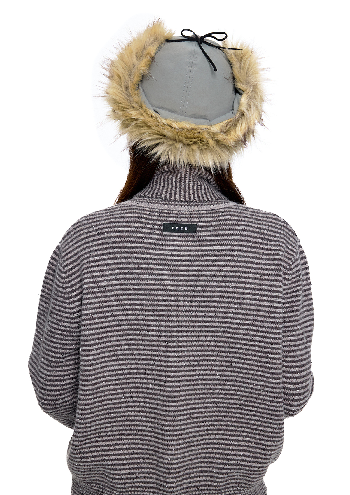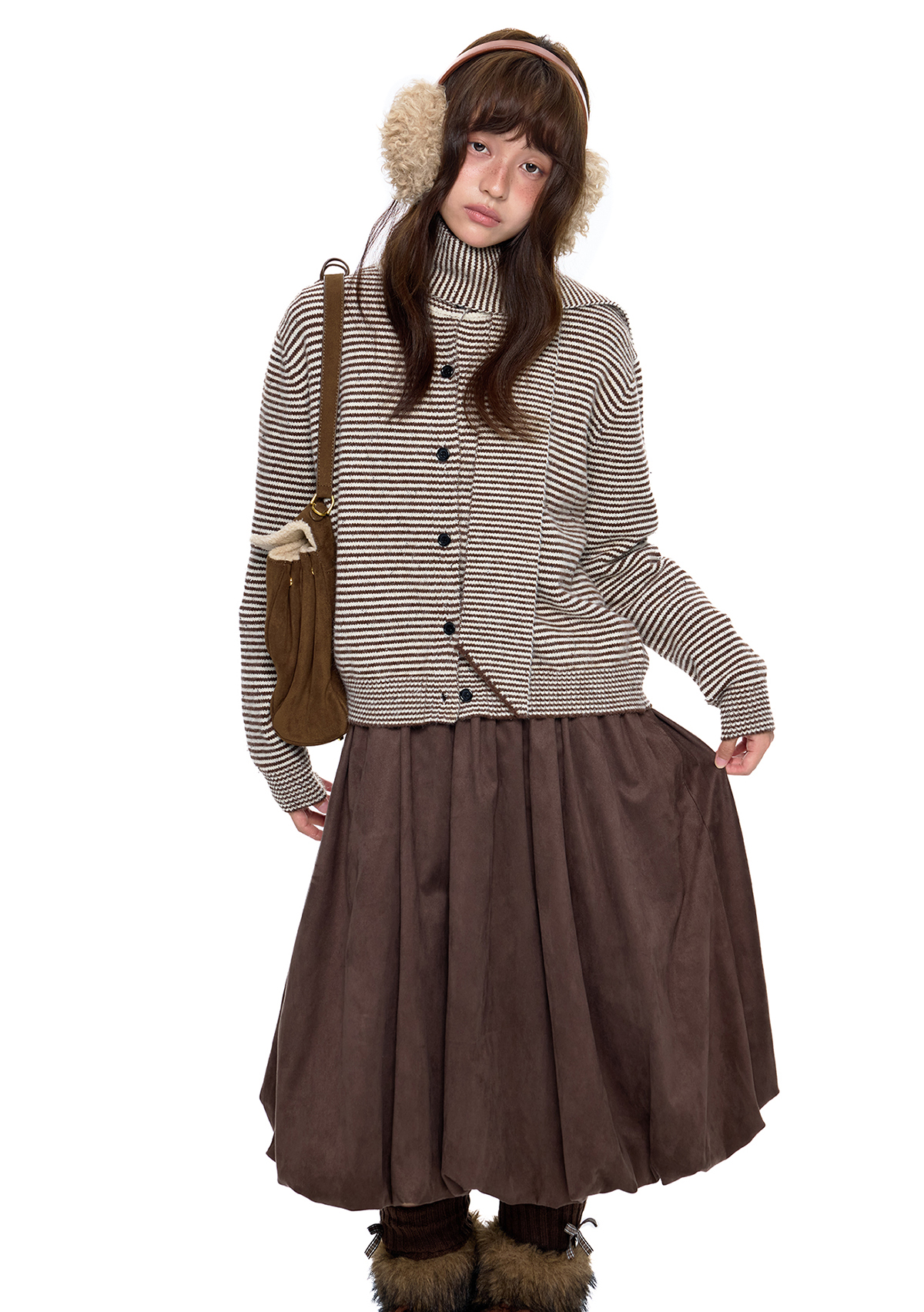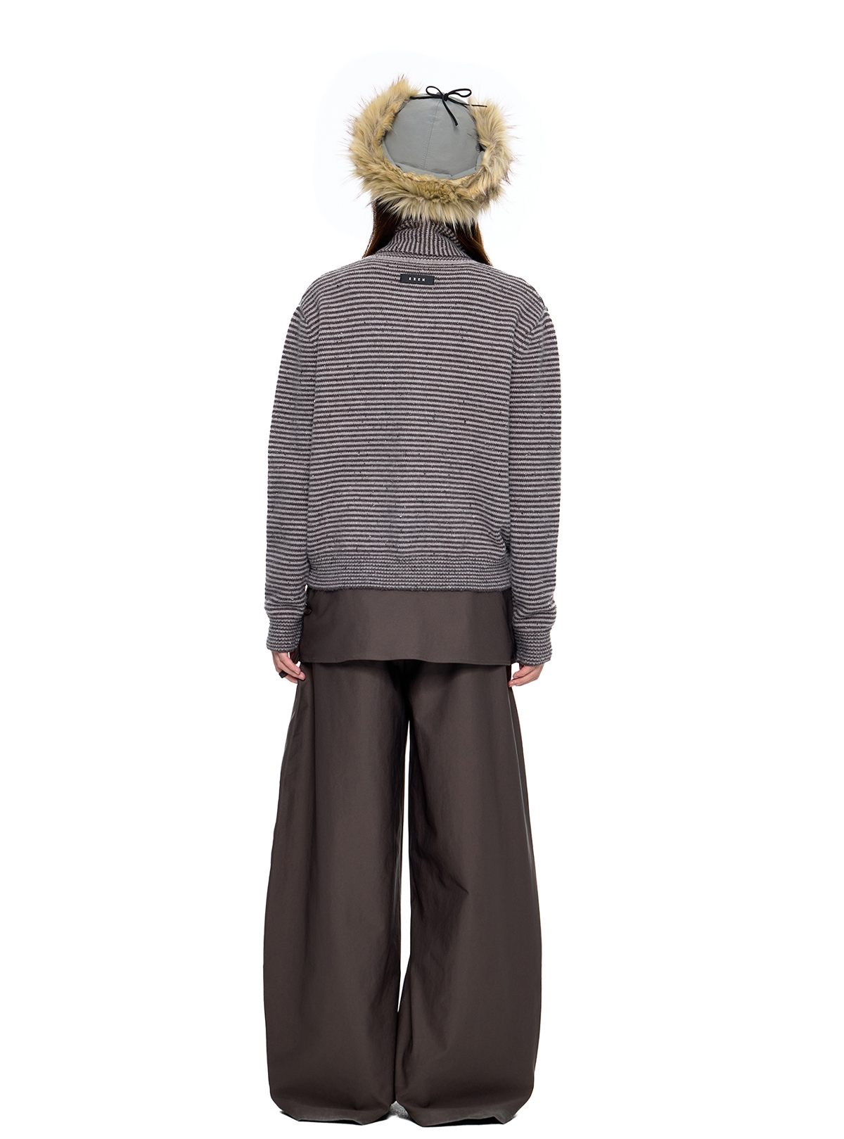 - 스트라이프 패턴 니트 소재로 포근하고 경쾌한 분위기 연출