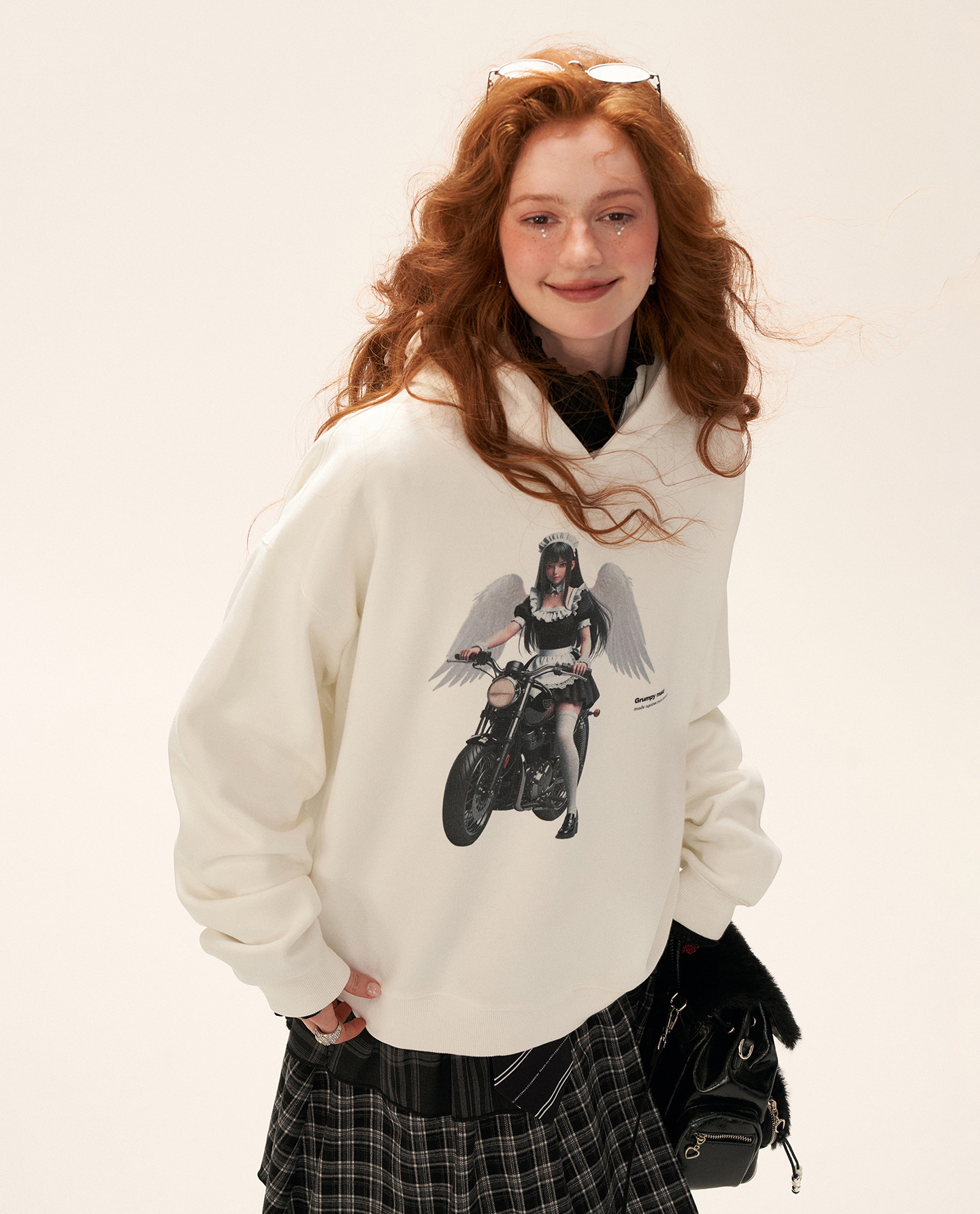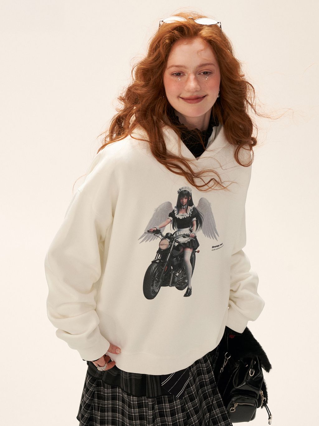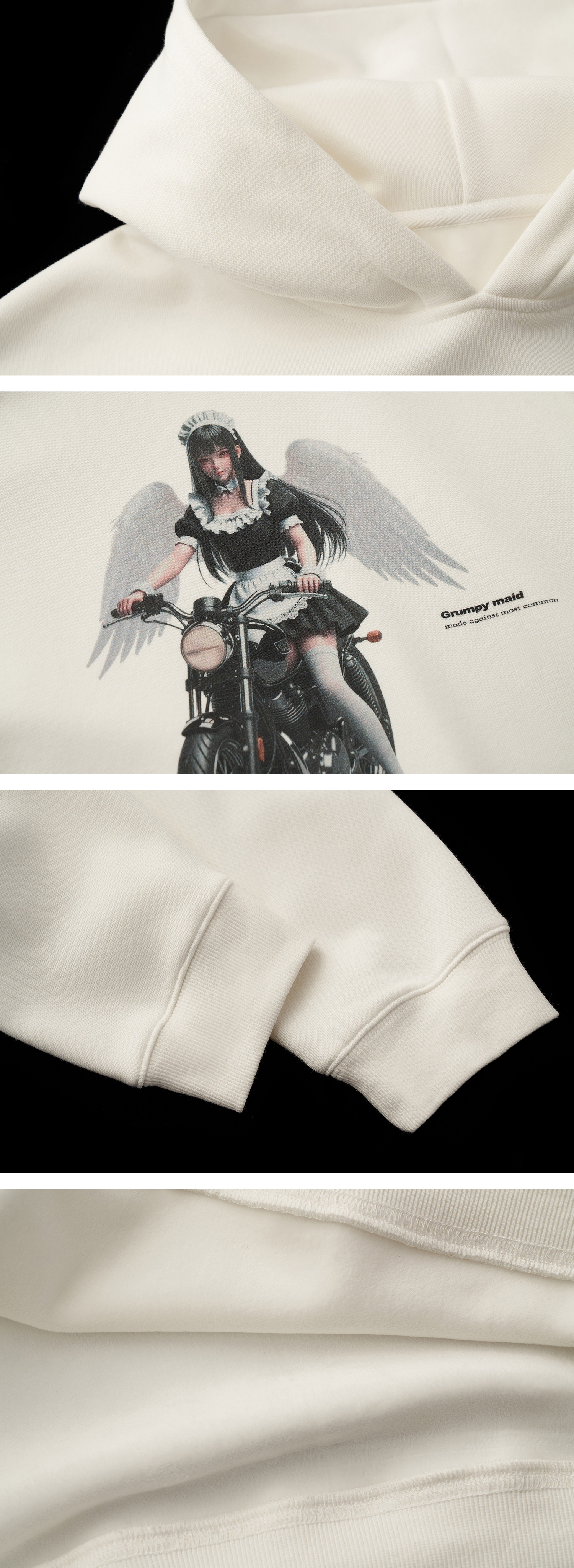 - 중앙에 위치한 ‘Angel Rider’ 그래픽 프린트로 유니크한 포인트