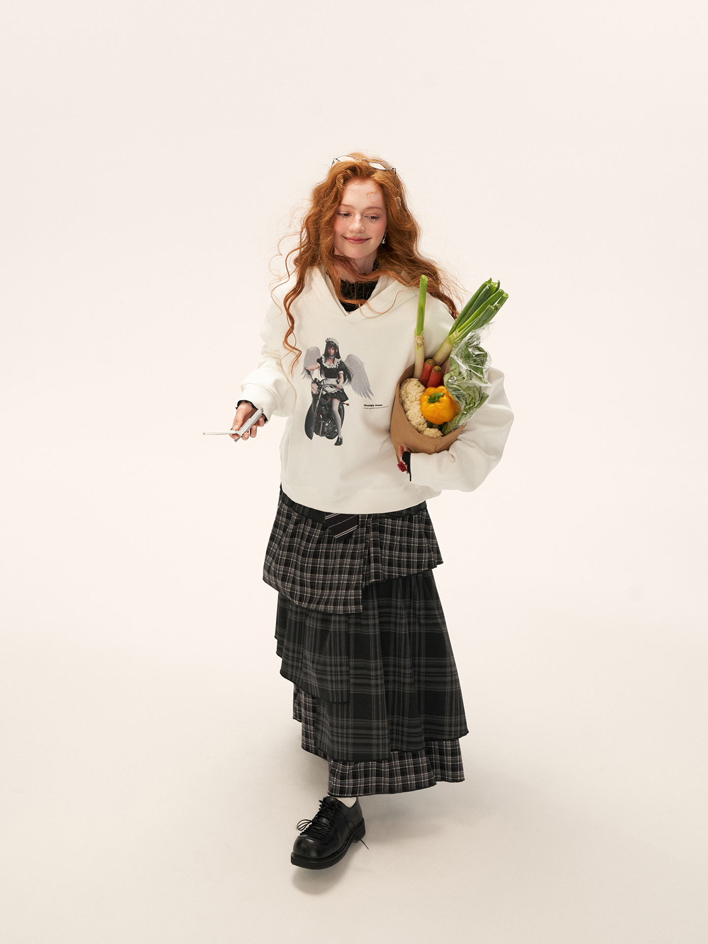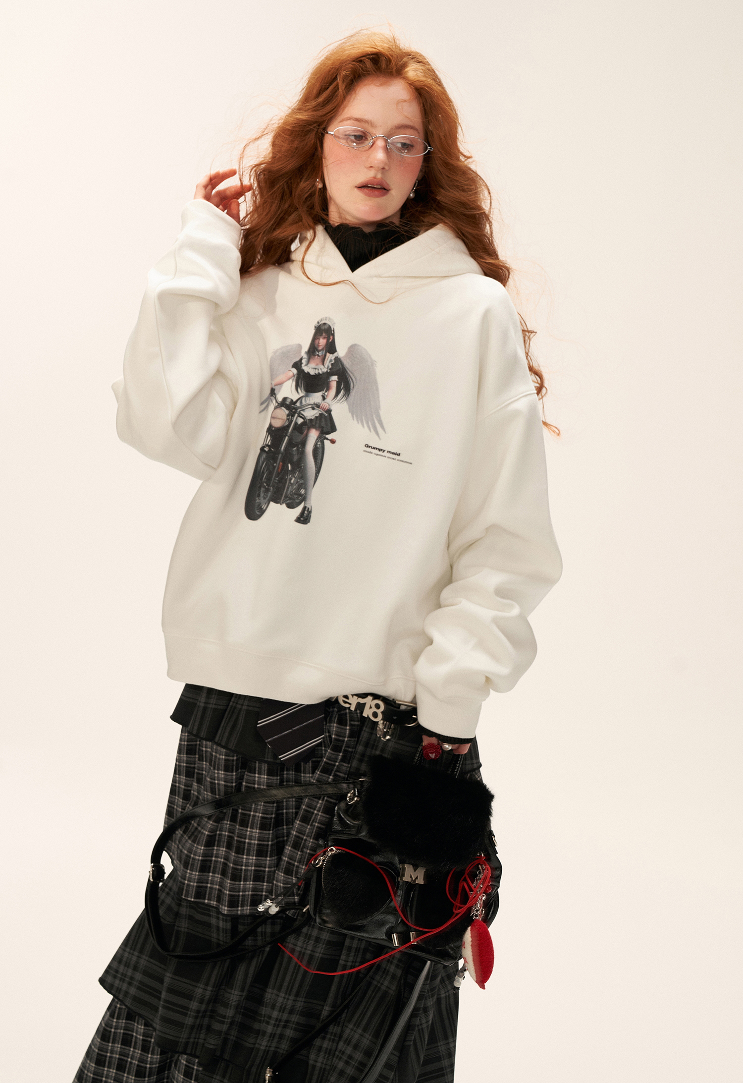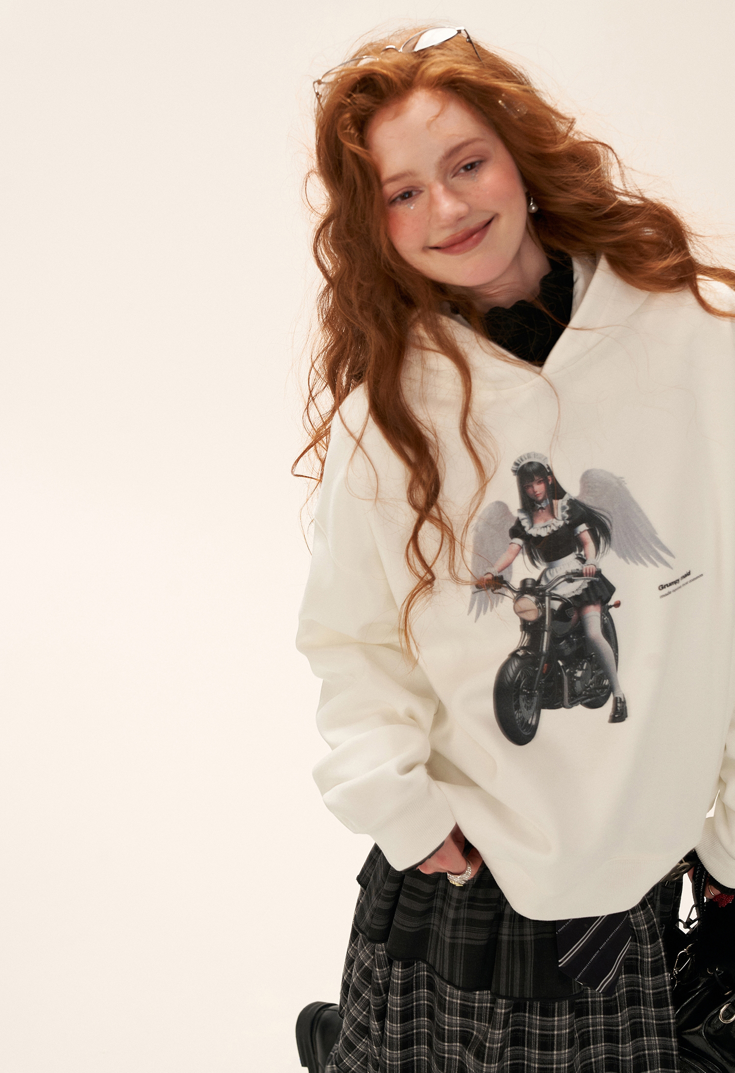 엔젤 그래픽으로 위트 있게 완성된 스트리트 무드의 오버핏 후드티입니다.