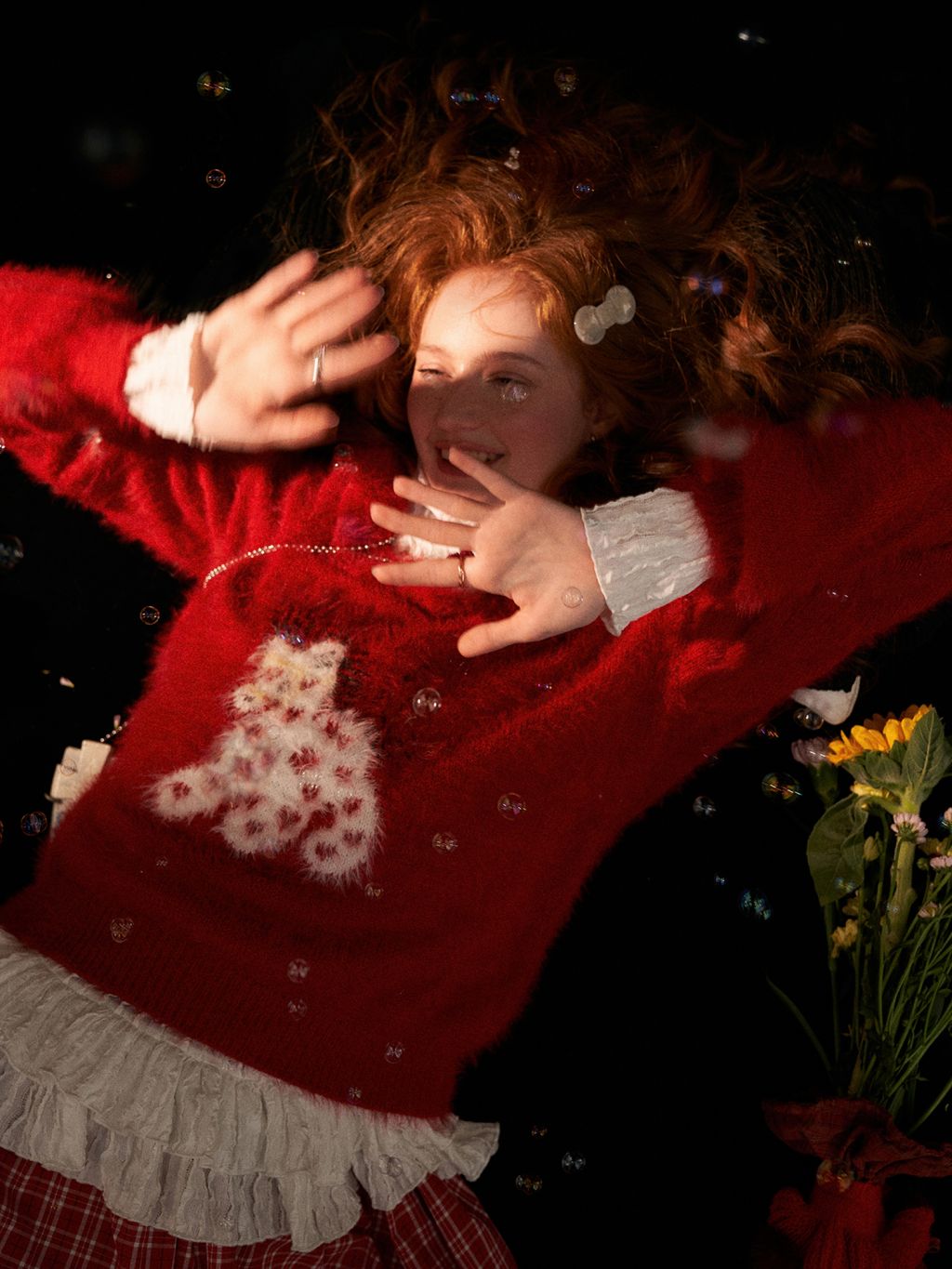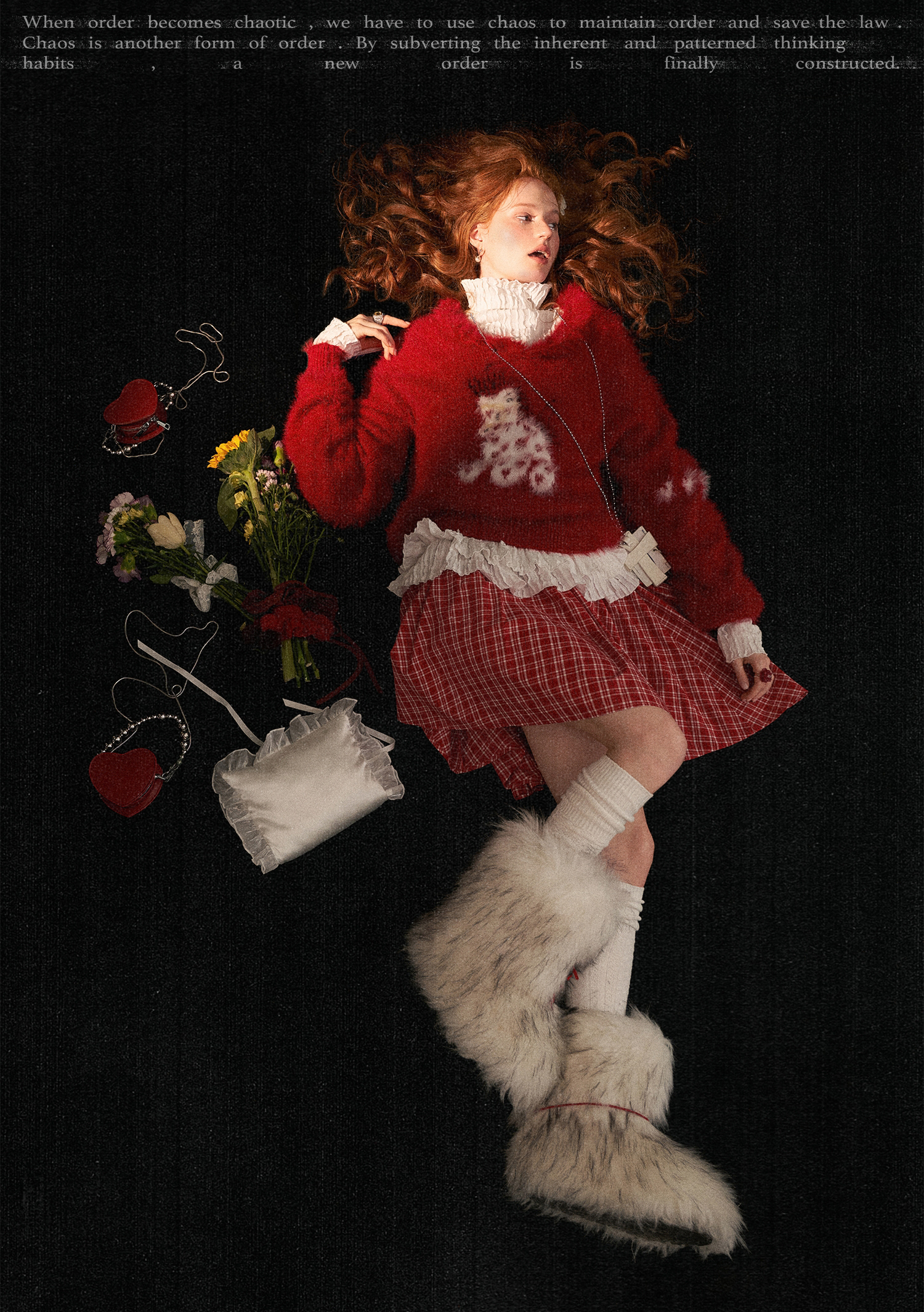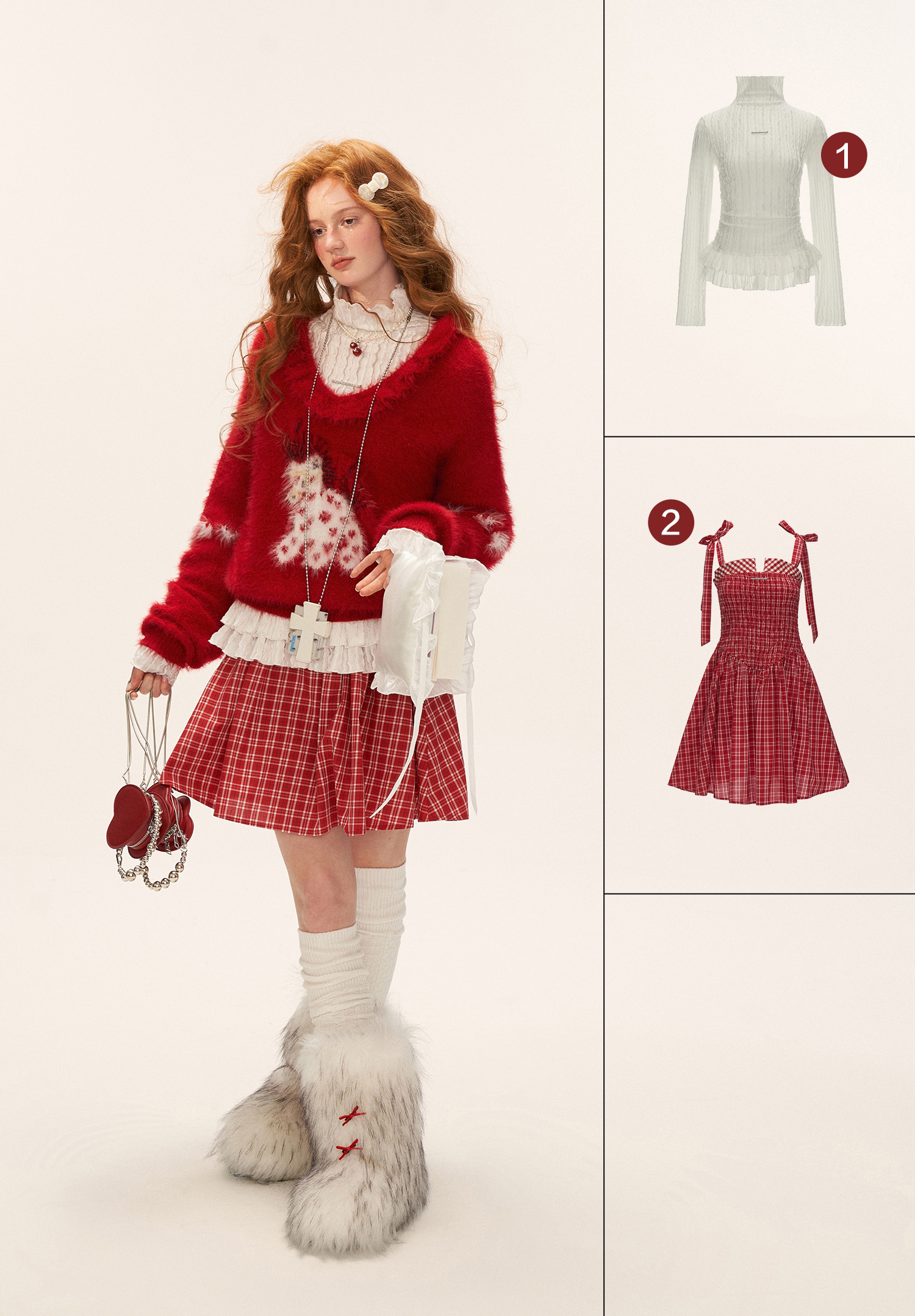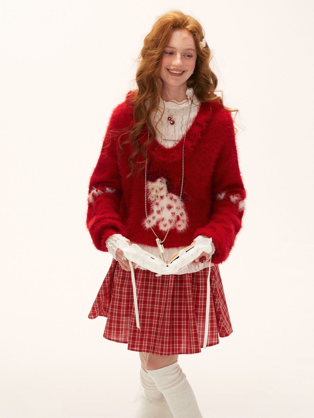 사랑스러운 포니 패턴과 풍성한 헤어리 텍스처로 포근한 무드를 완성한 하트 포니 퍼지 니트 입니다.