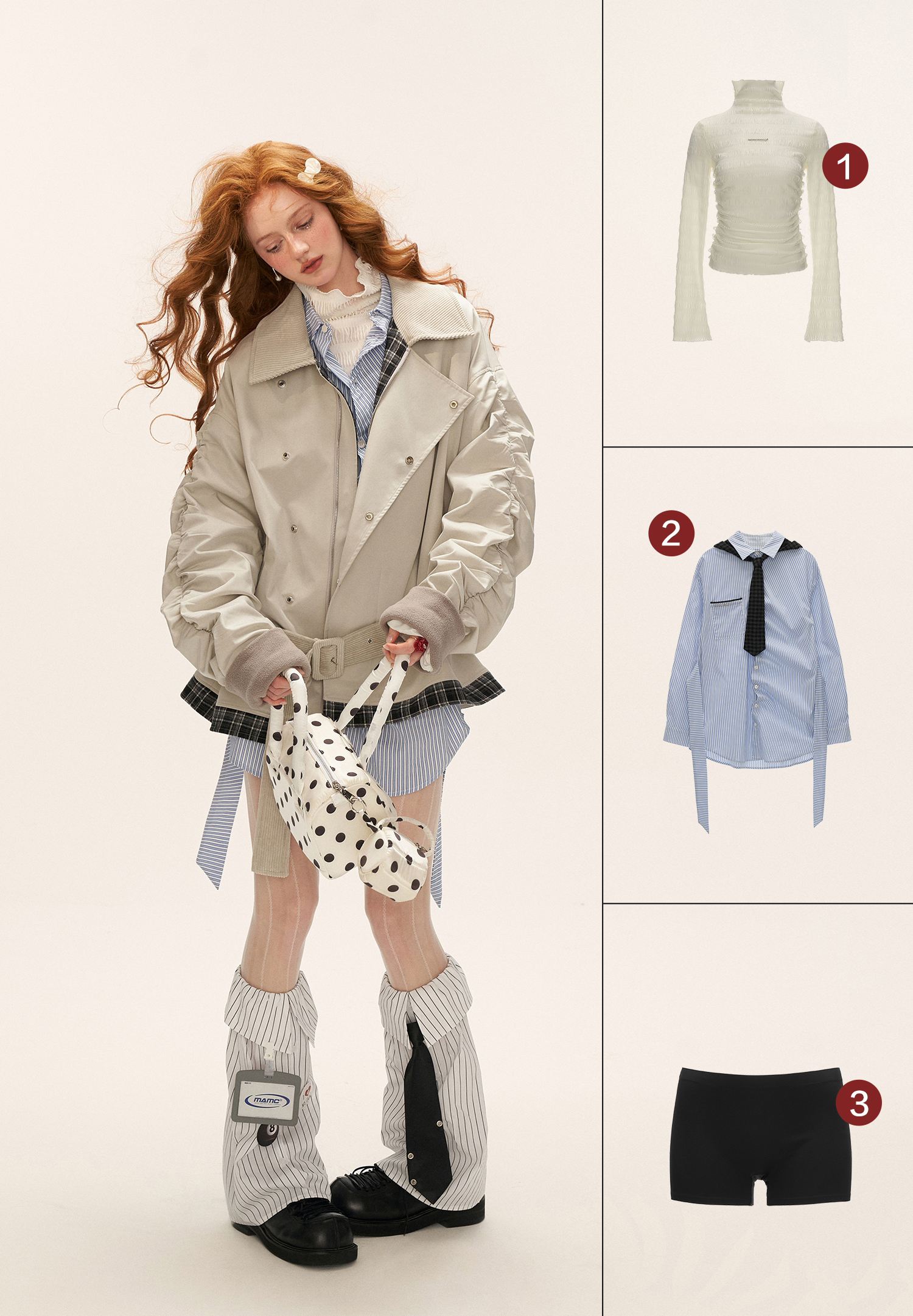 - 밑단 체크 배색 안감으로 은은한 레이어드 포인트