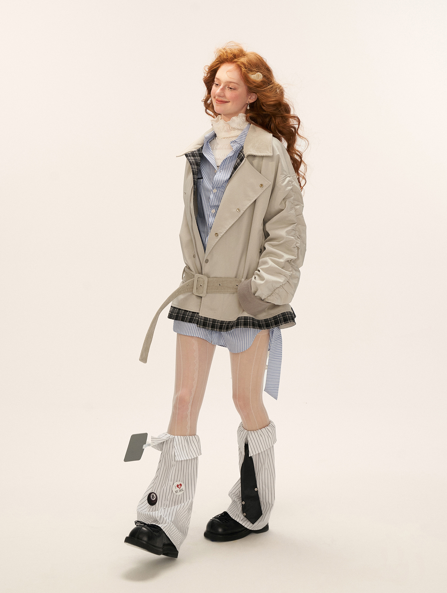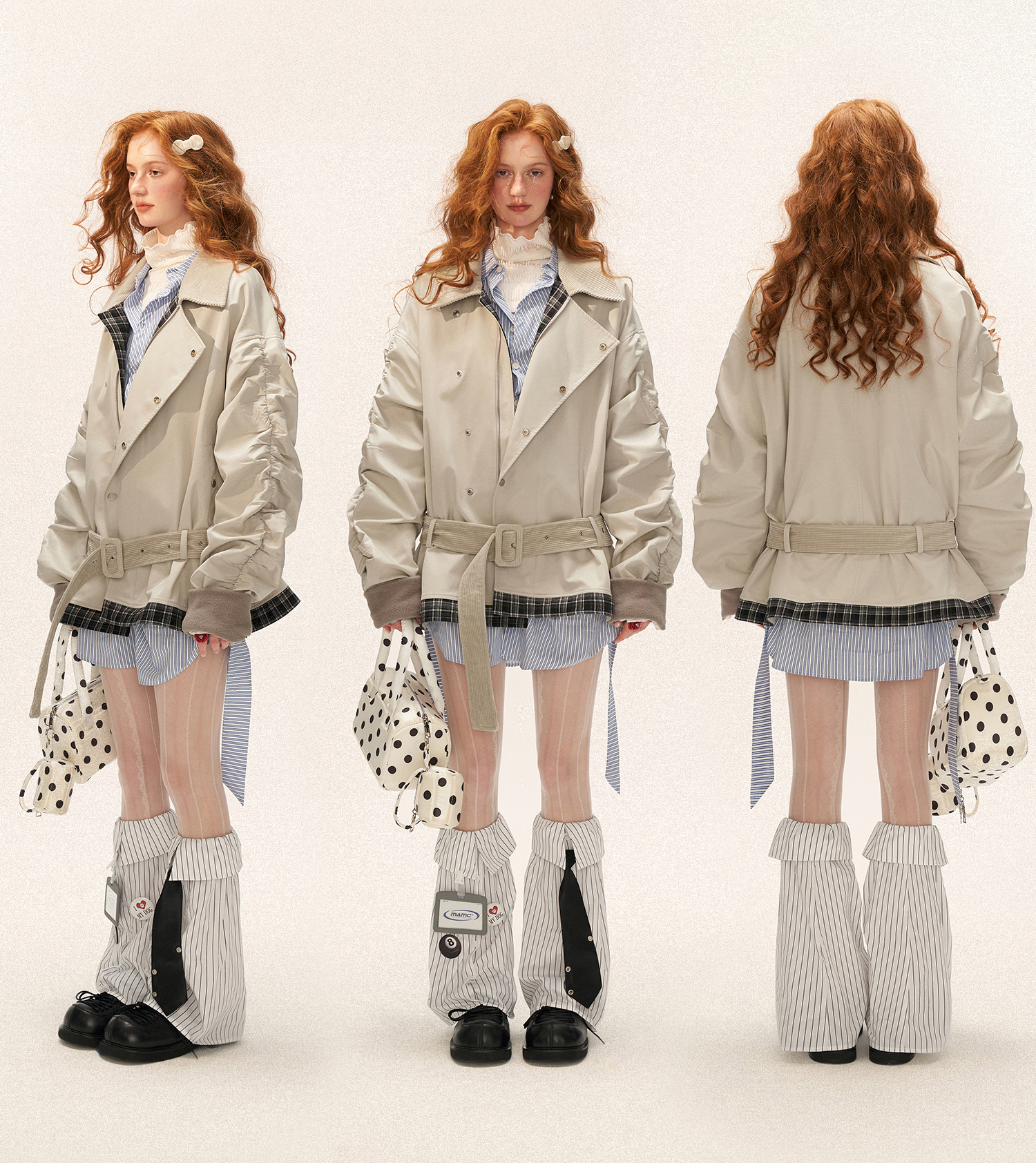 - 벨트 스트랩 디테일로 다양한 실루엣 연출이 가능한 모던 아우터