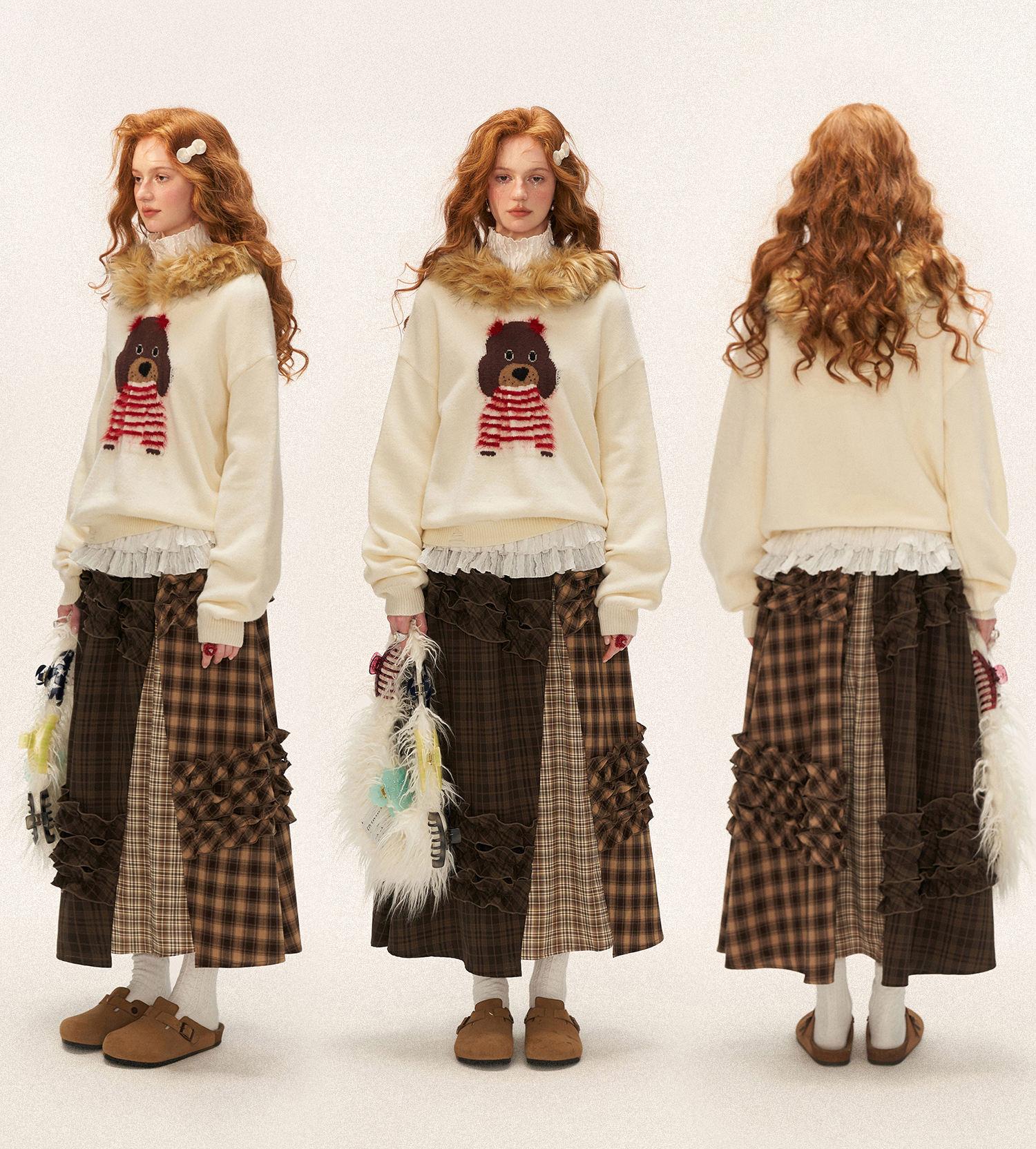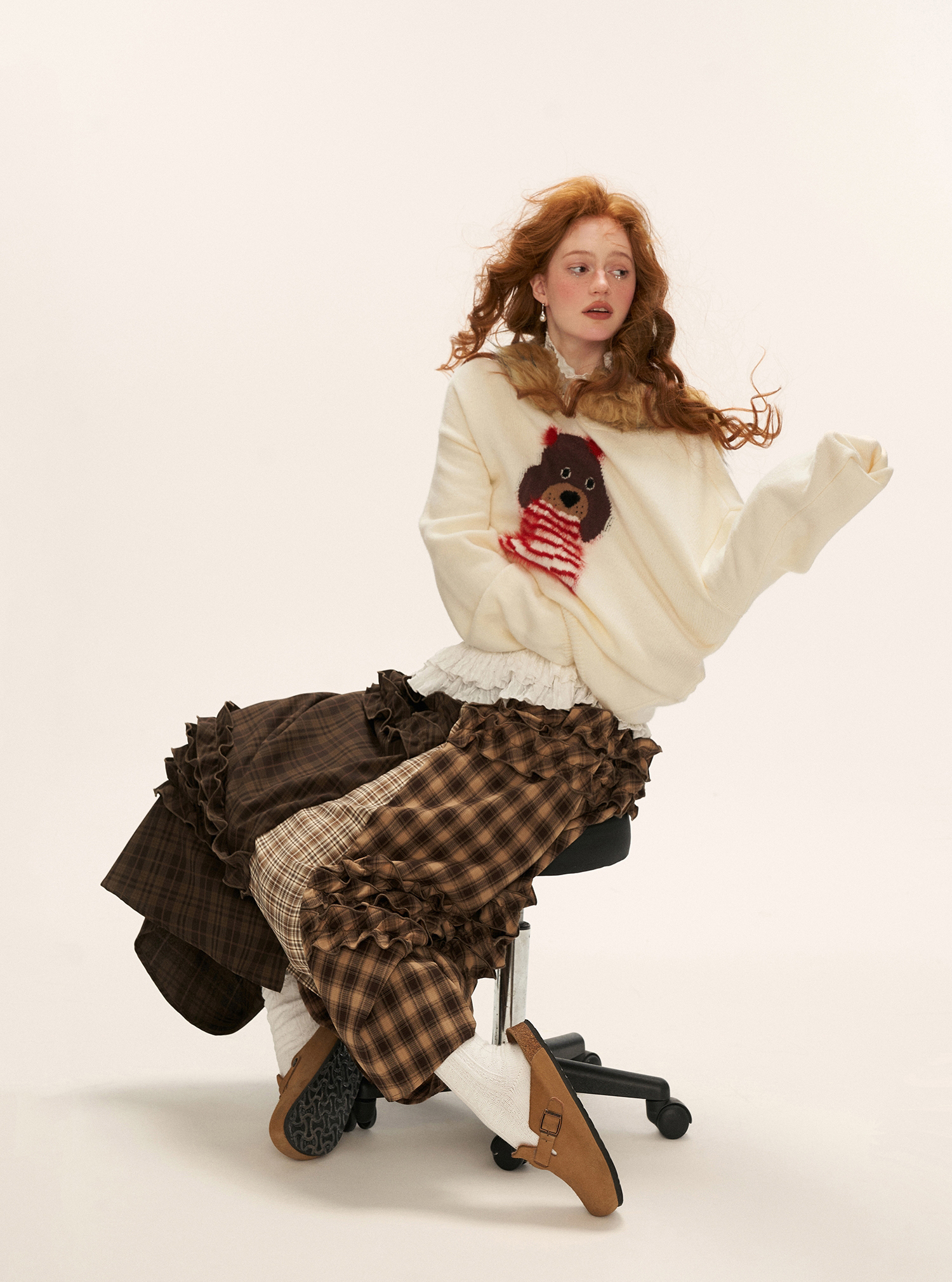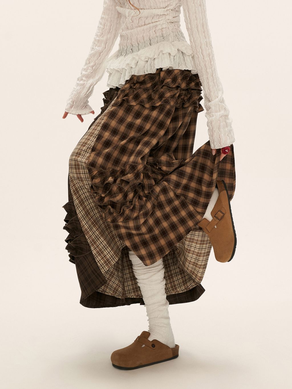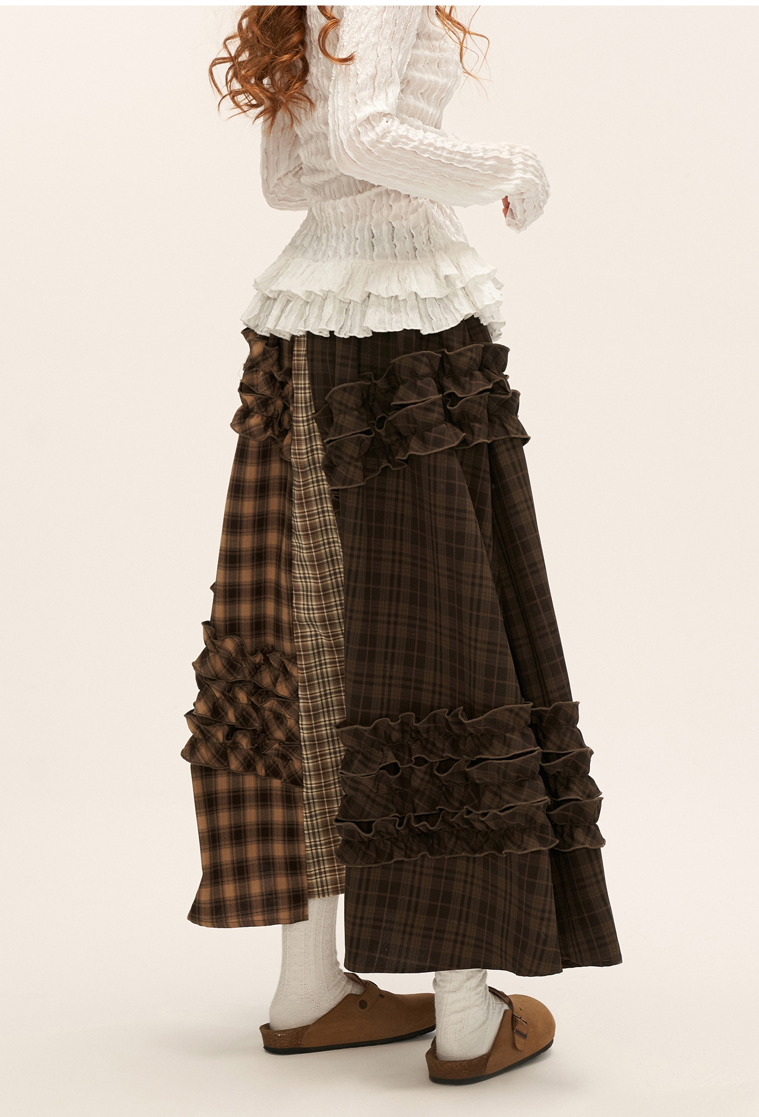 톤이 다른 브라운 체크 원단을 믹스해 입체적인 컬러 밸런스와 풍성한 러플 디테일을 완성한 모카 러플 체크 스커트입니다.