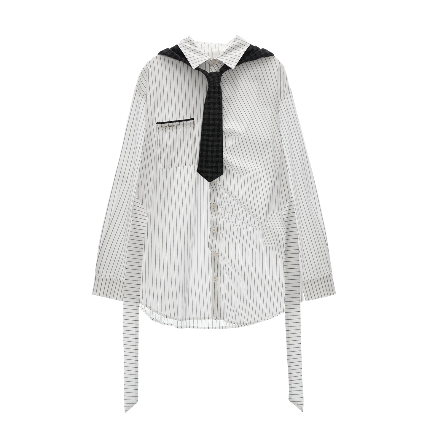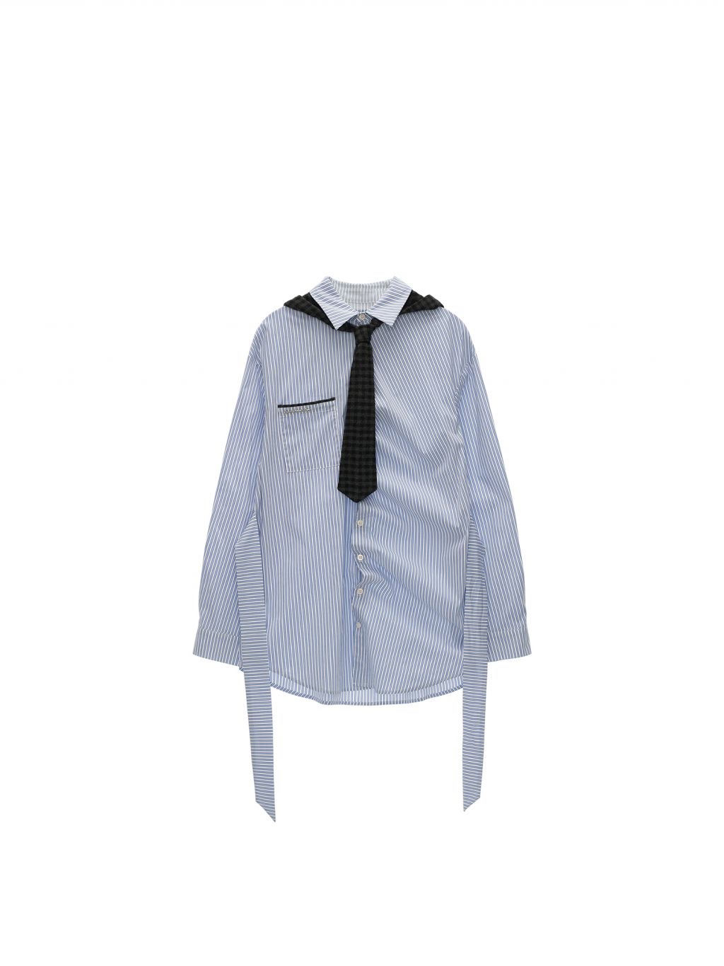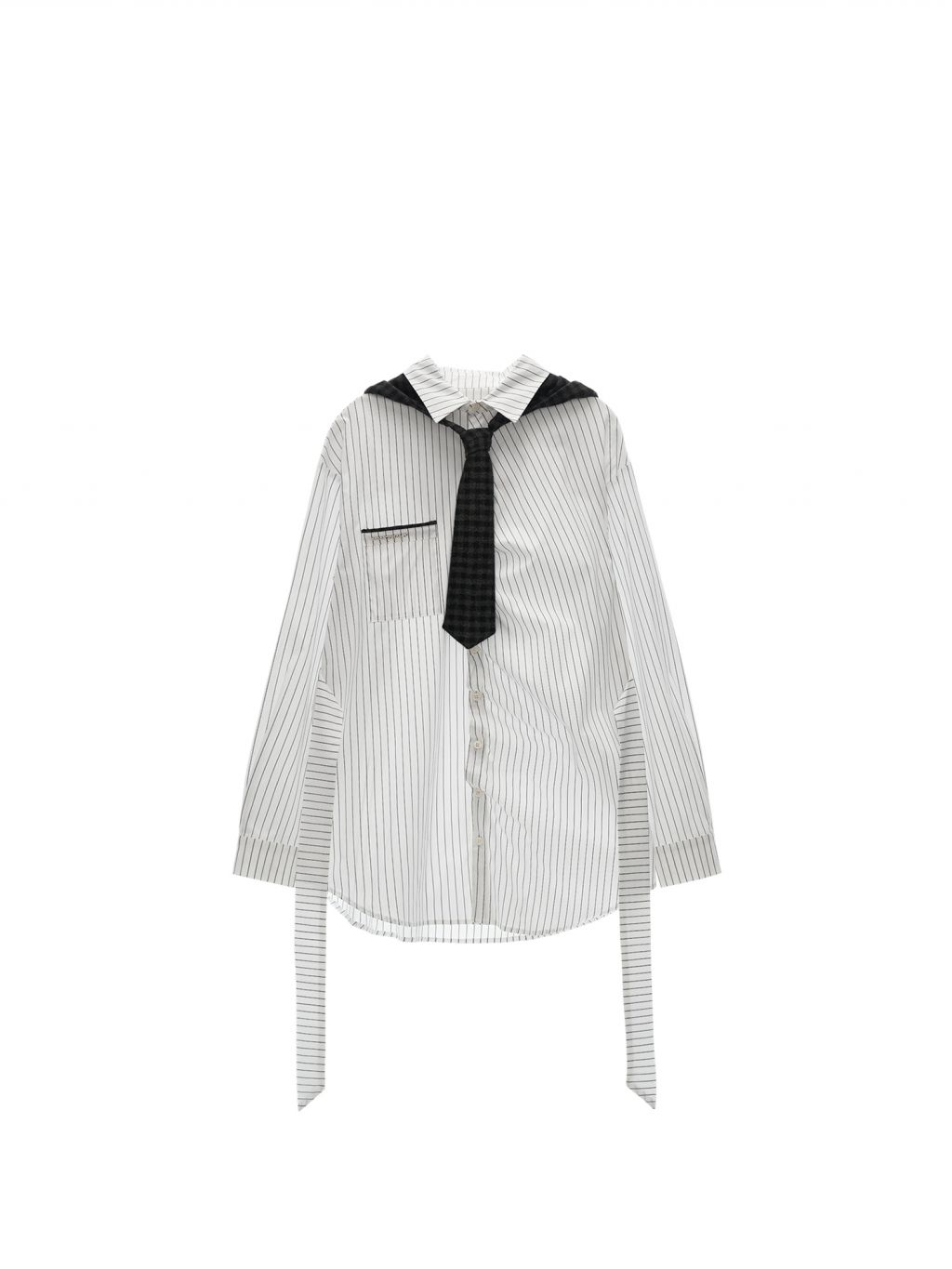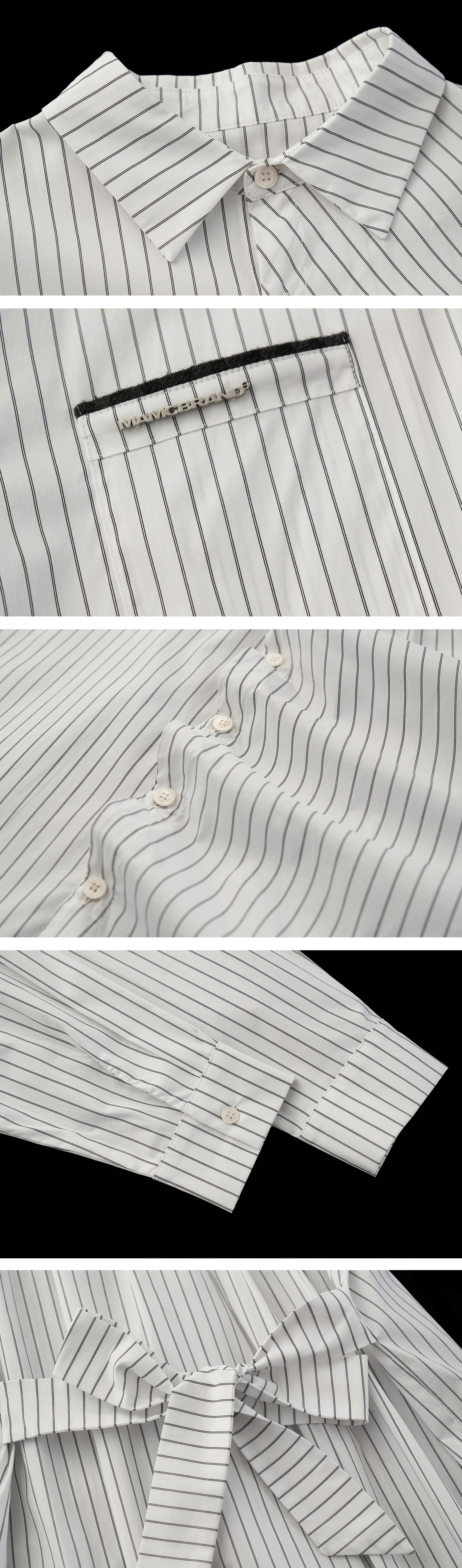 스트라이프 패턴과 오버사이즈 실루엣이 어우러진 셔츠로 허리 스트랩 디테일로 다양한 실루엣 연출이 가능한 아이템입니다. (타이 후드 미포함, 입고예정)