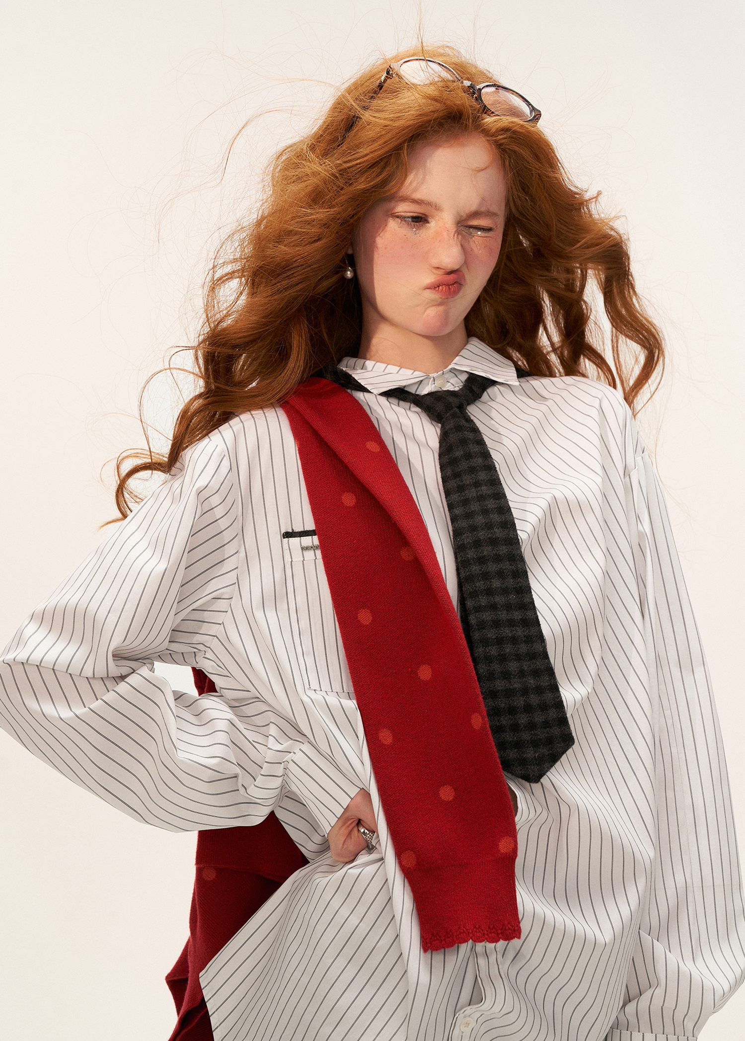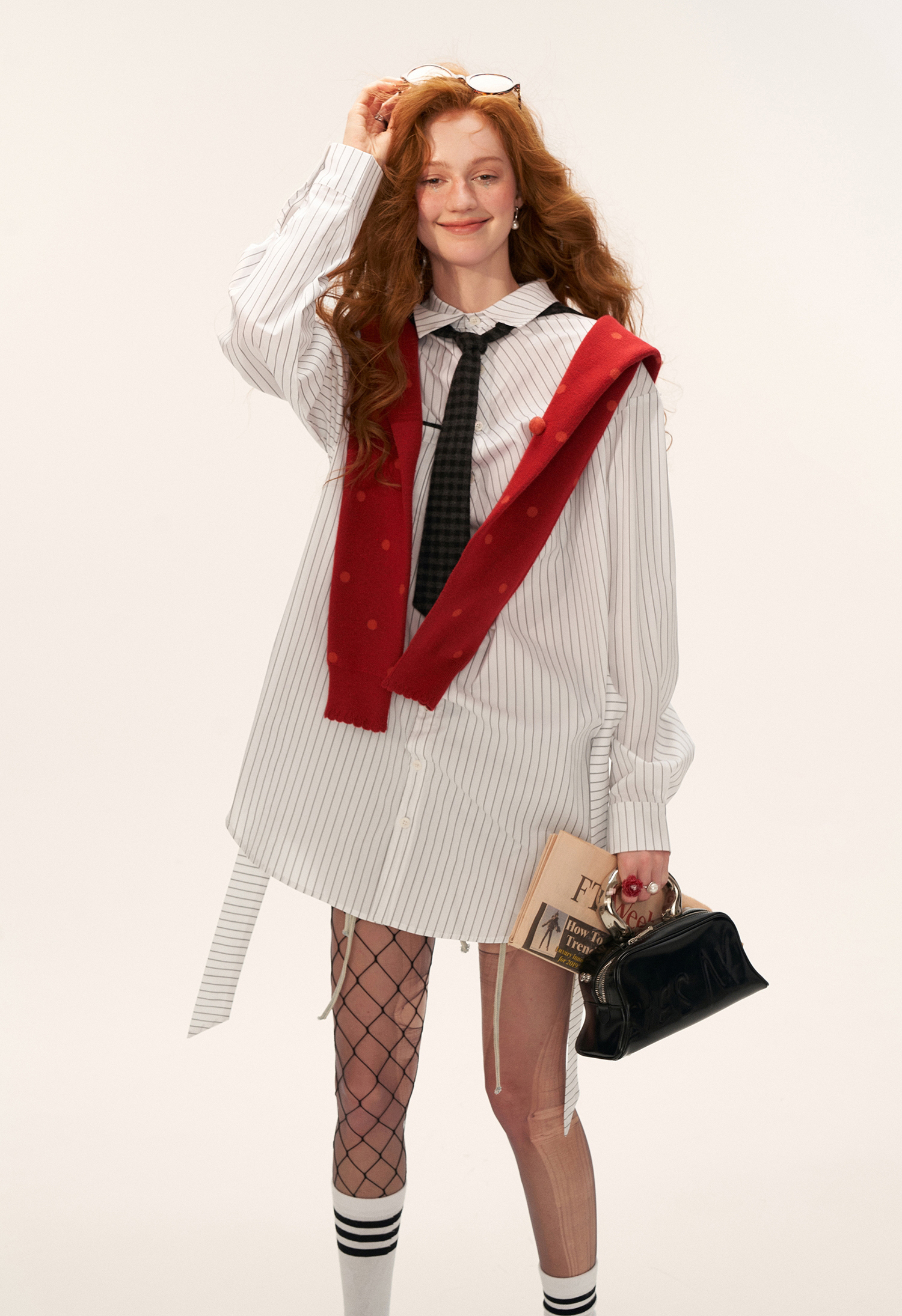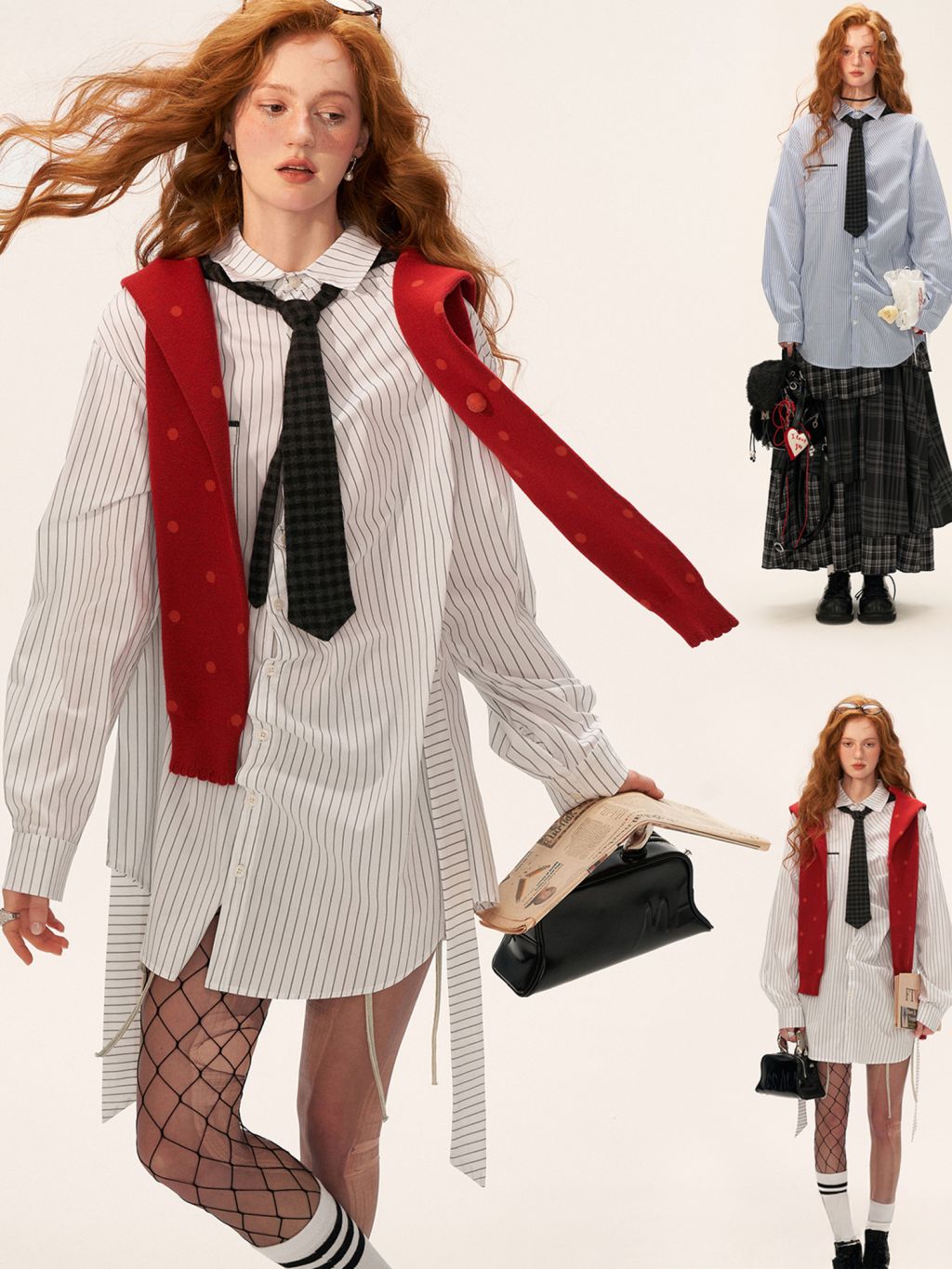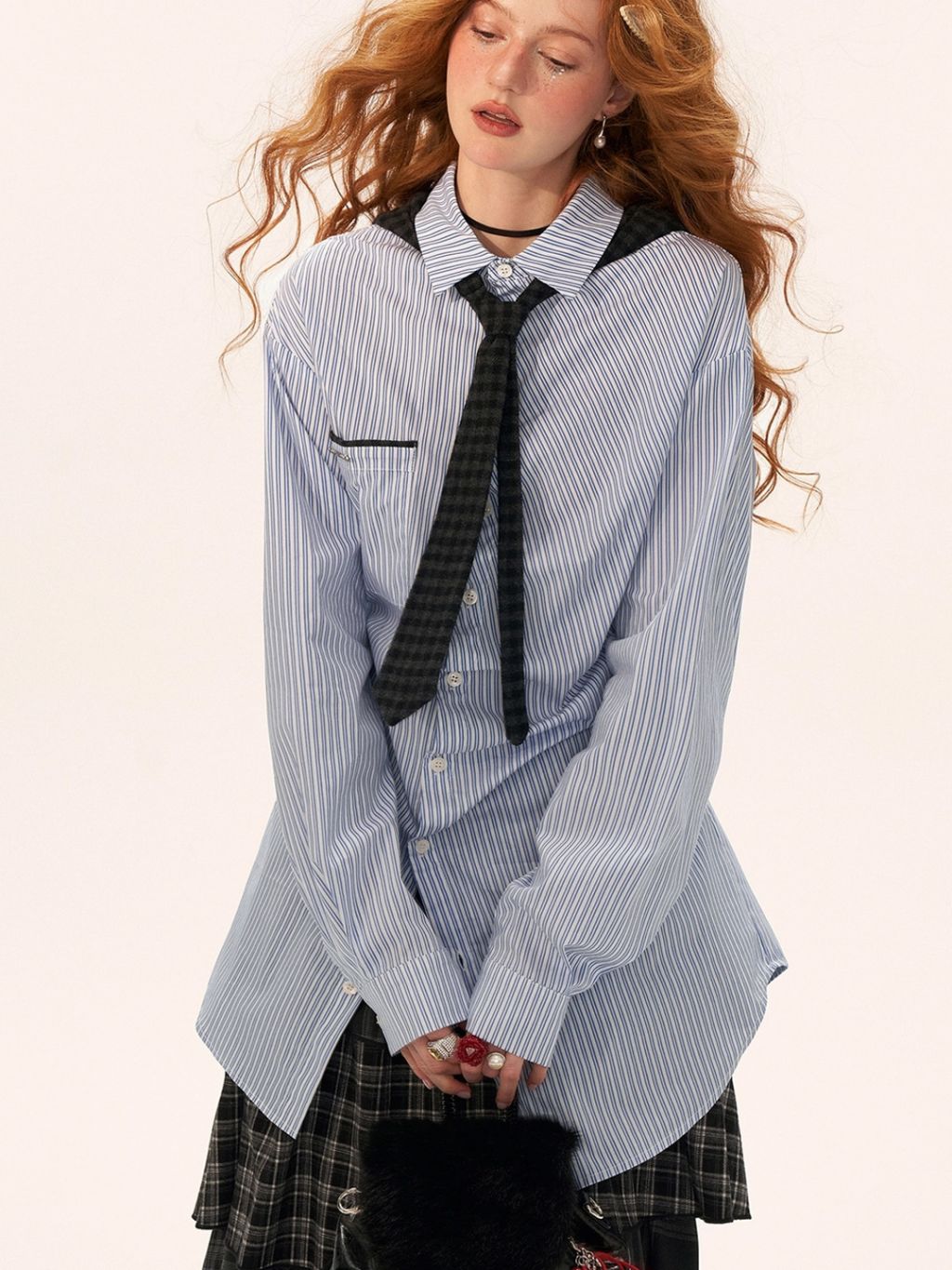 스트라이프 패턴과 오버사이즈 실루엣이 어우러진 셔츠로 허리 스트랩 디테일로 다양한 실루엣 연출이 가능한 아이템입니다. (타이 후드 미포함, 입고예정)