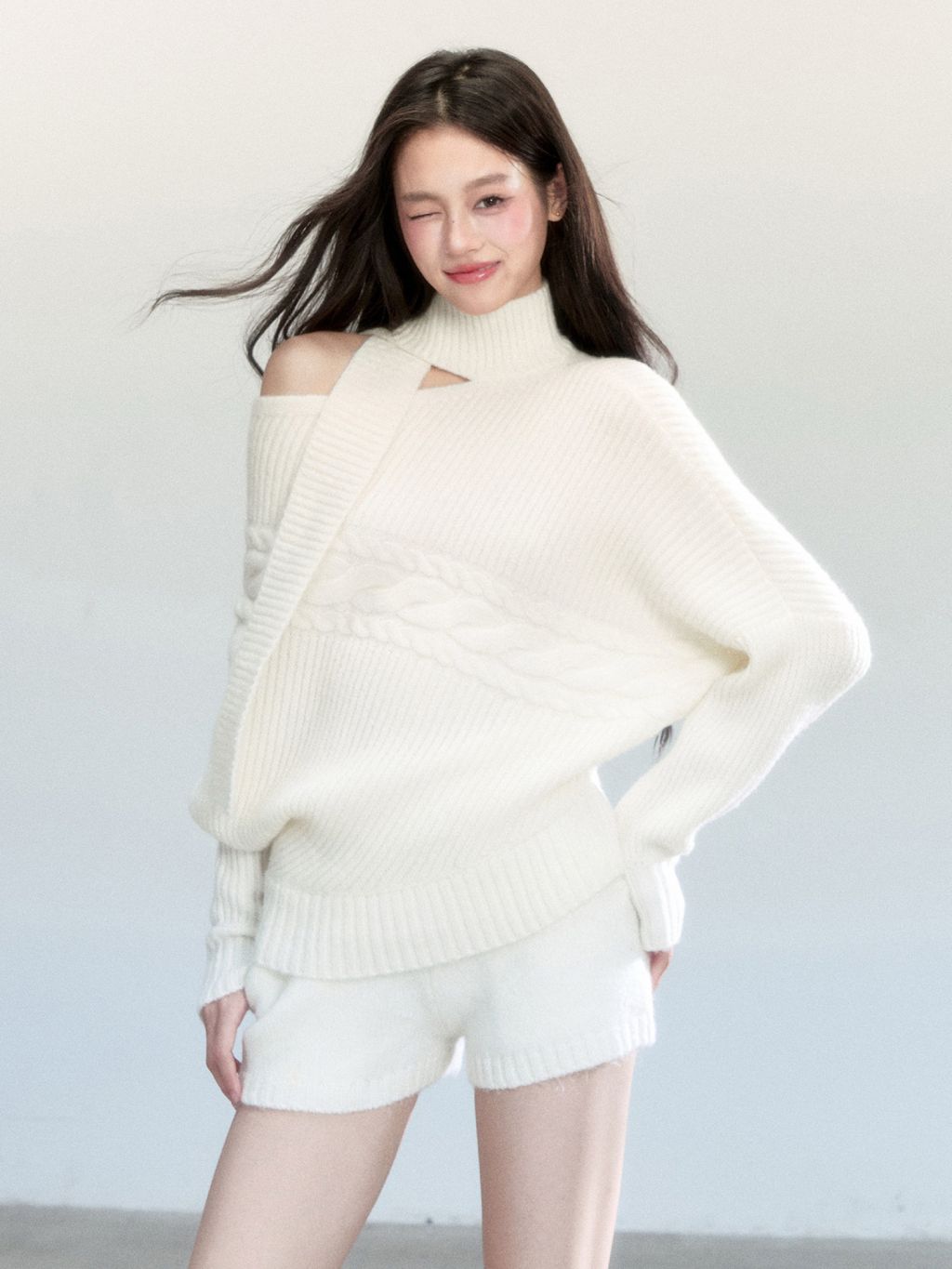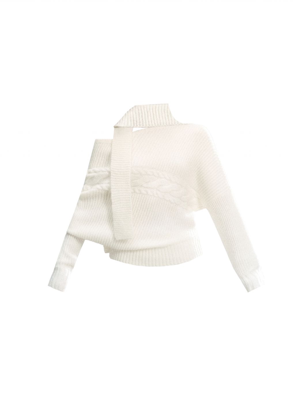 - 숄더 컷아웃과 머플러 디테일로 포인트를 더한 유니크한 상의 디자인