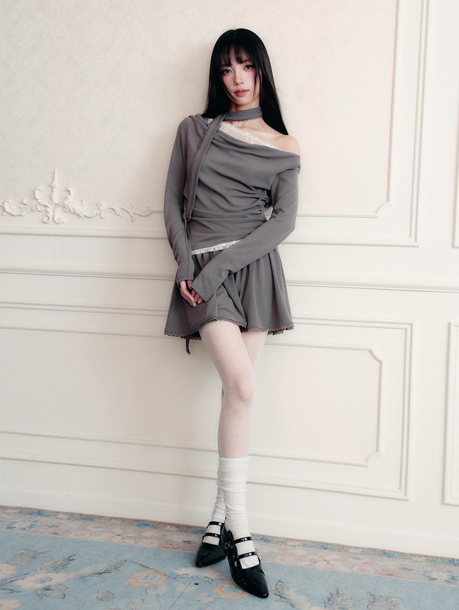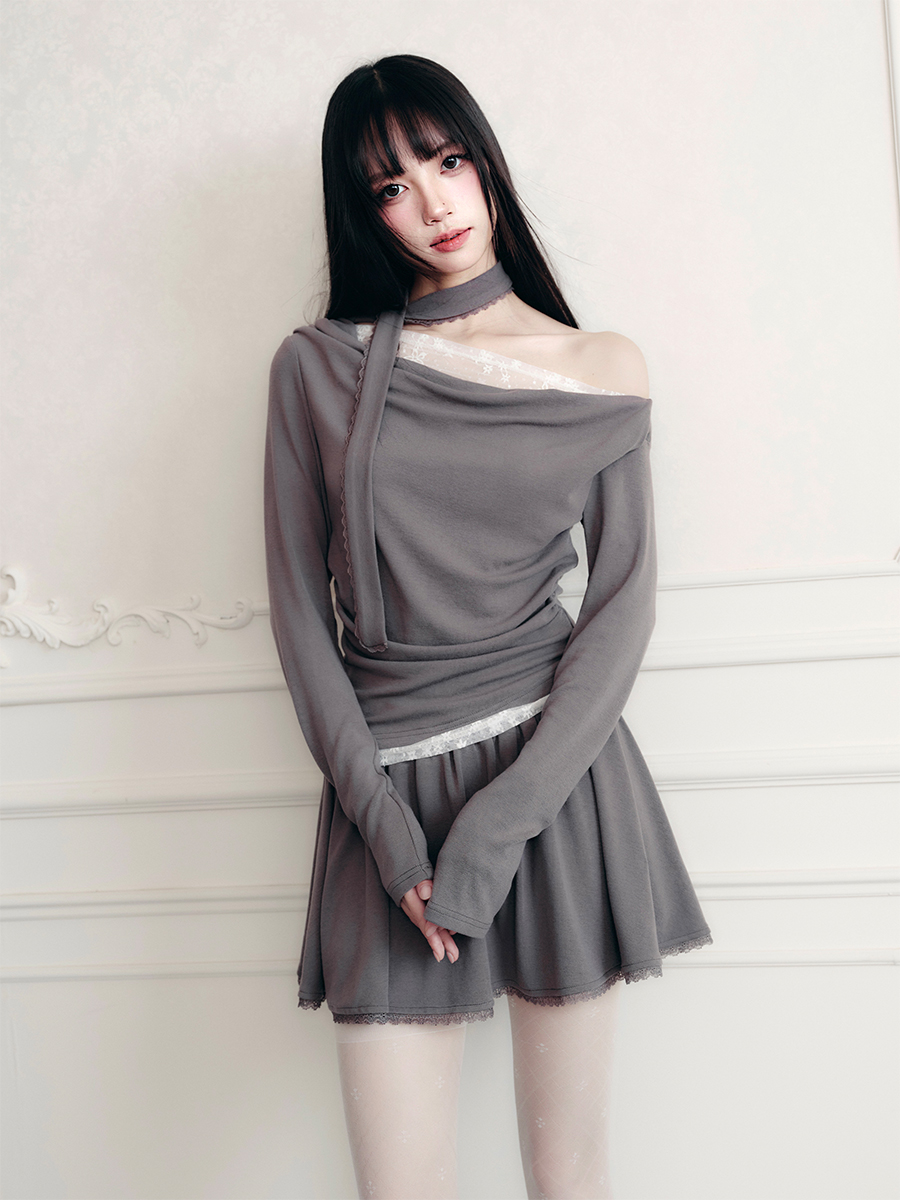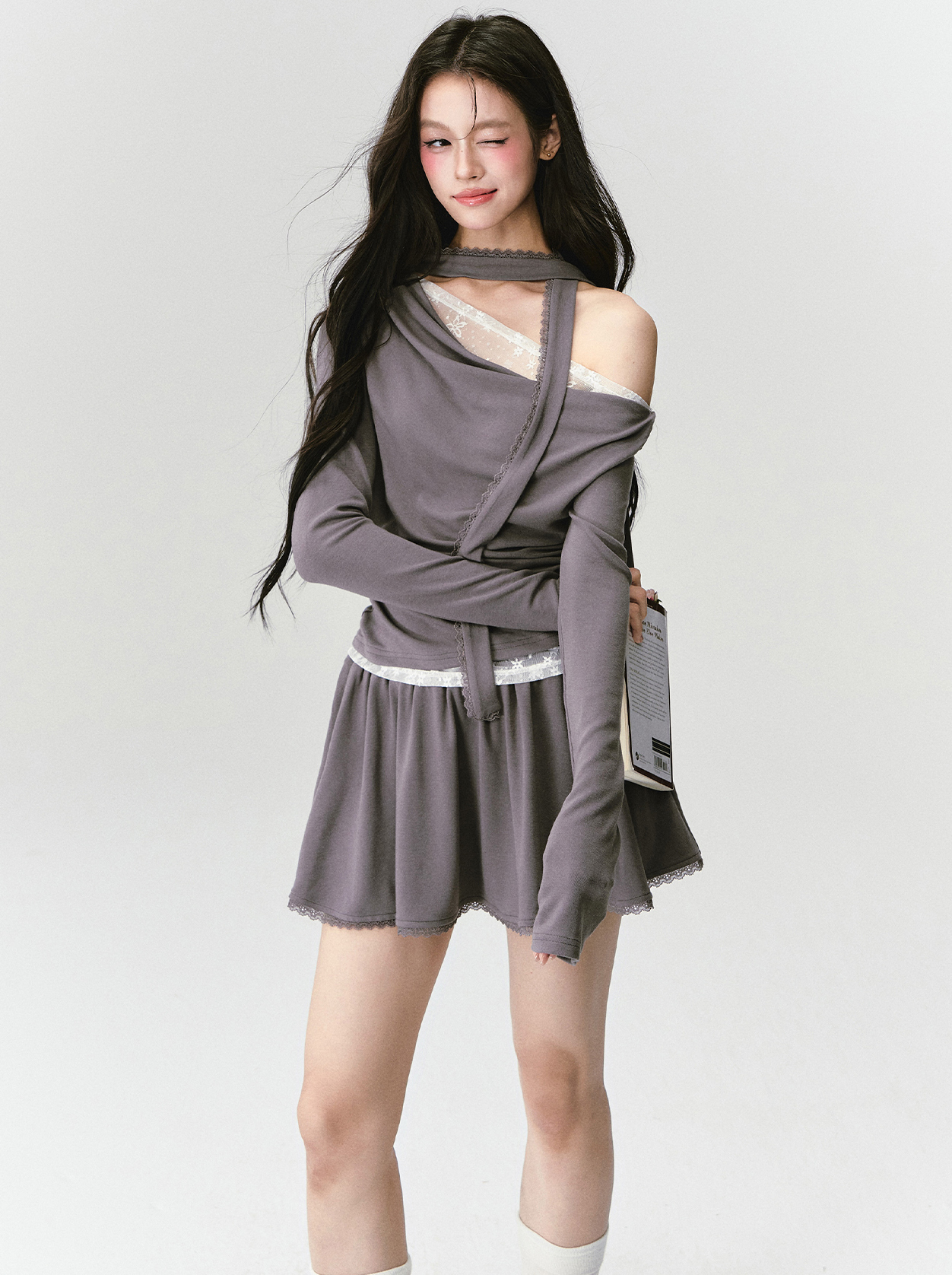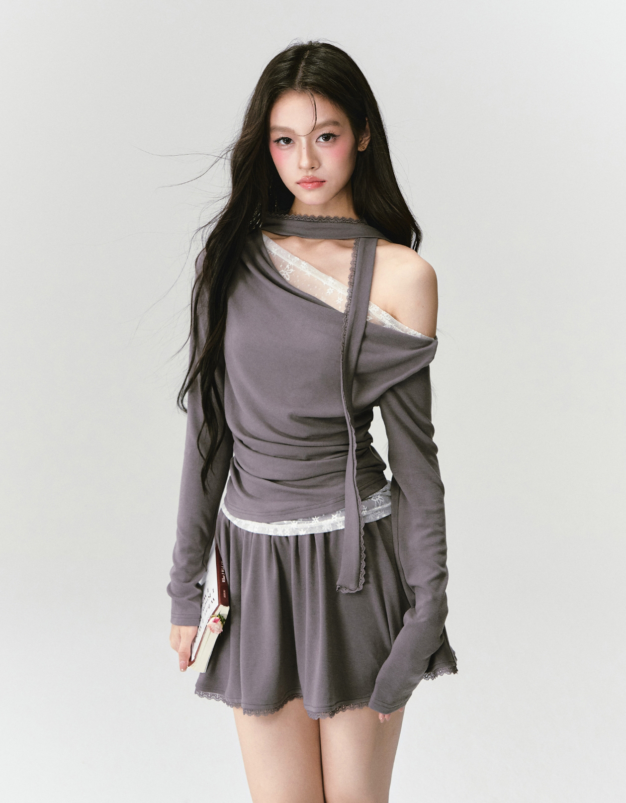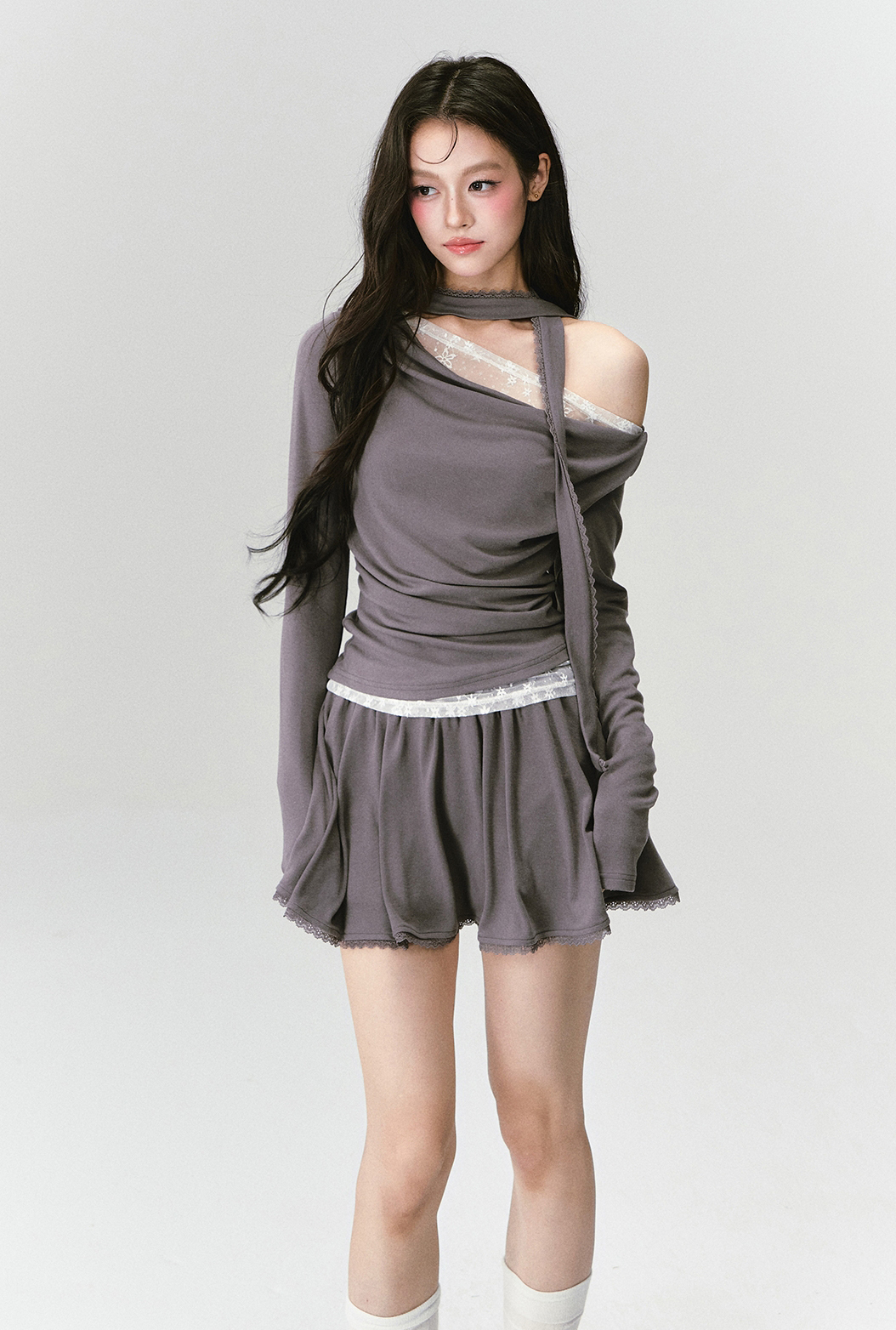 Misty Mauve Drape Knit Set-up (Top & Skirt: Sold Separately)