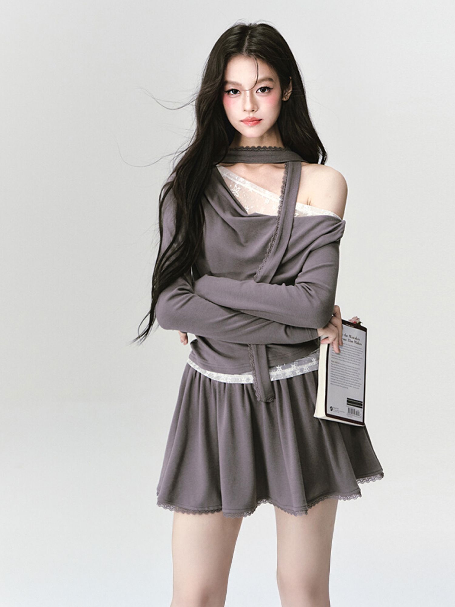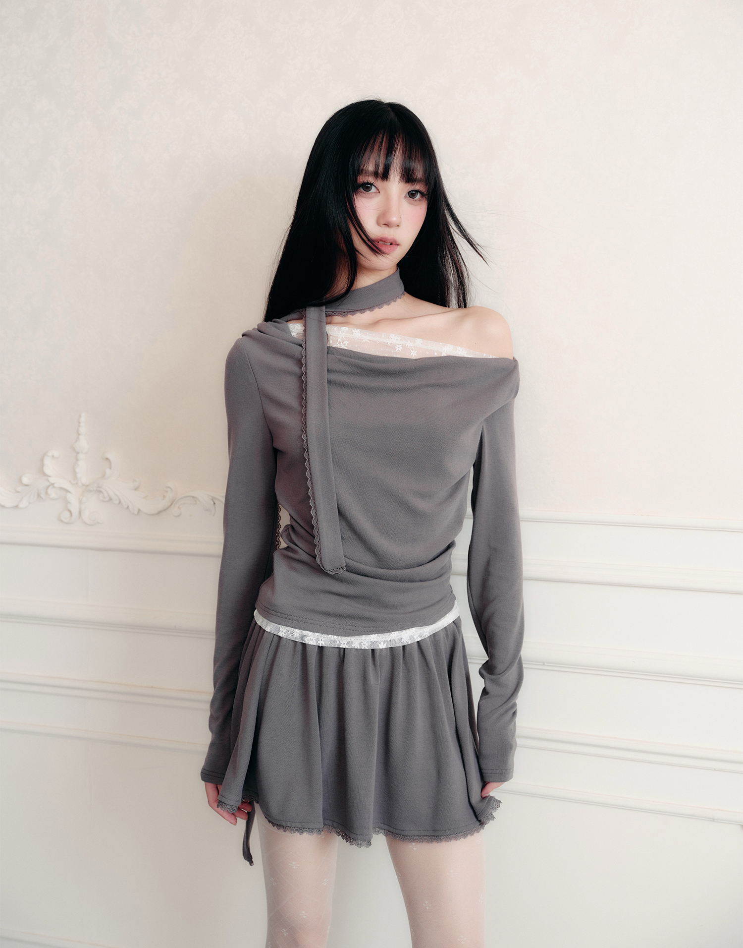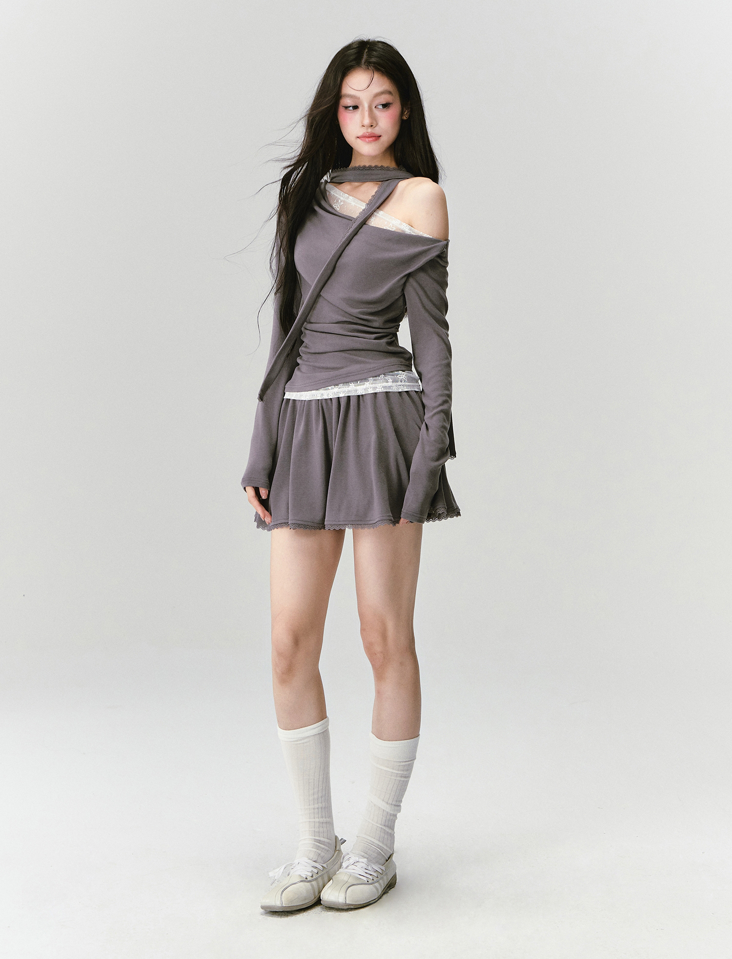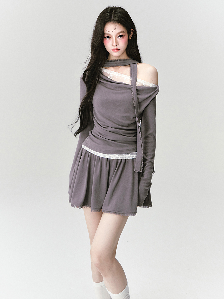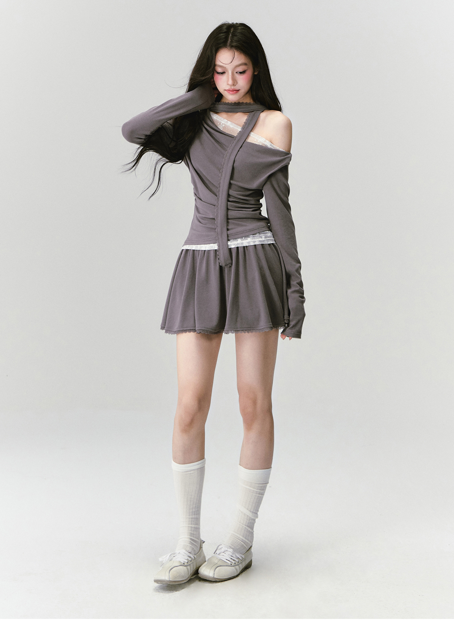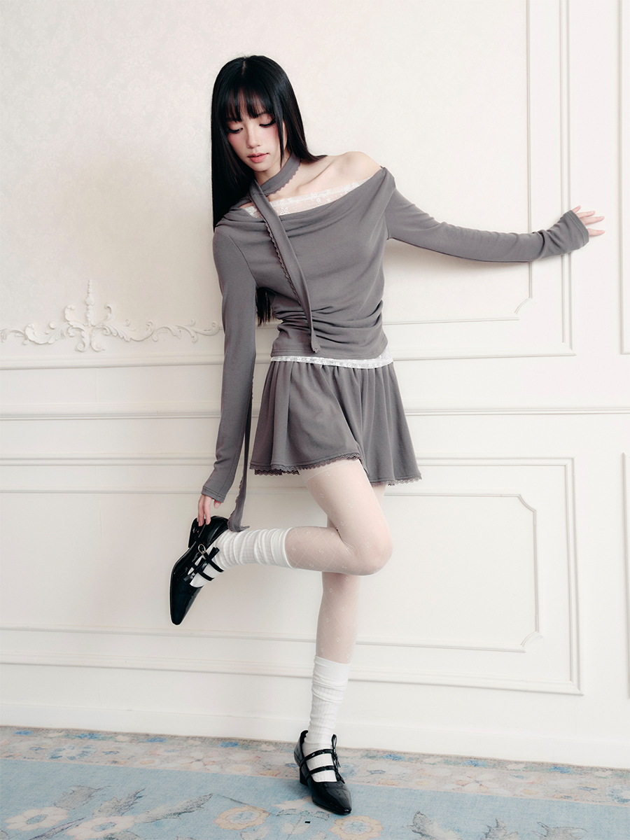 Misty Mauve Drape Knit Set-up (Top & Skirt: Sold Separately)