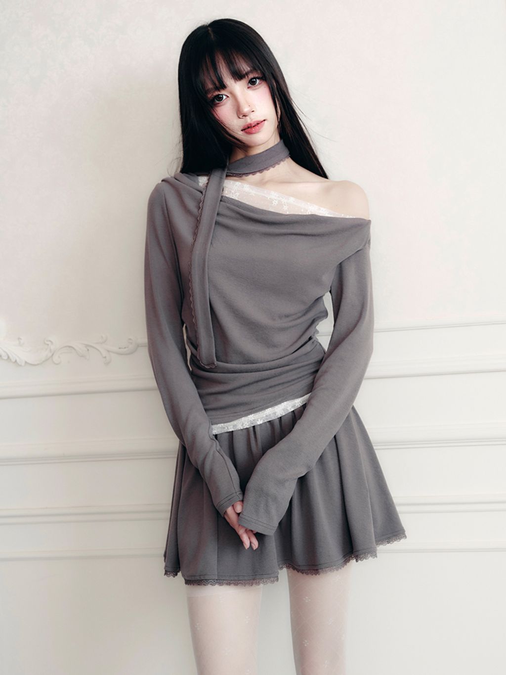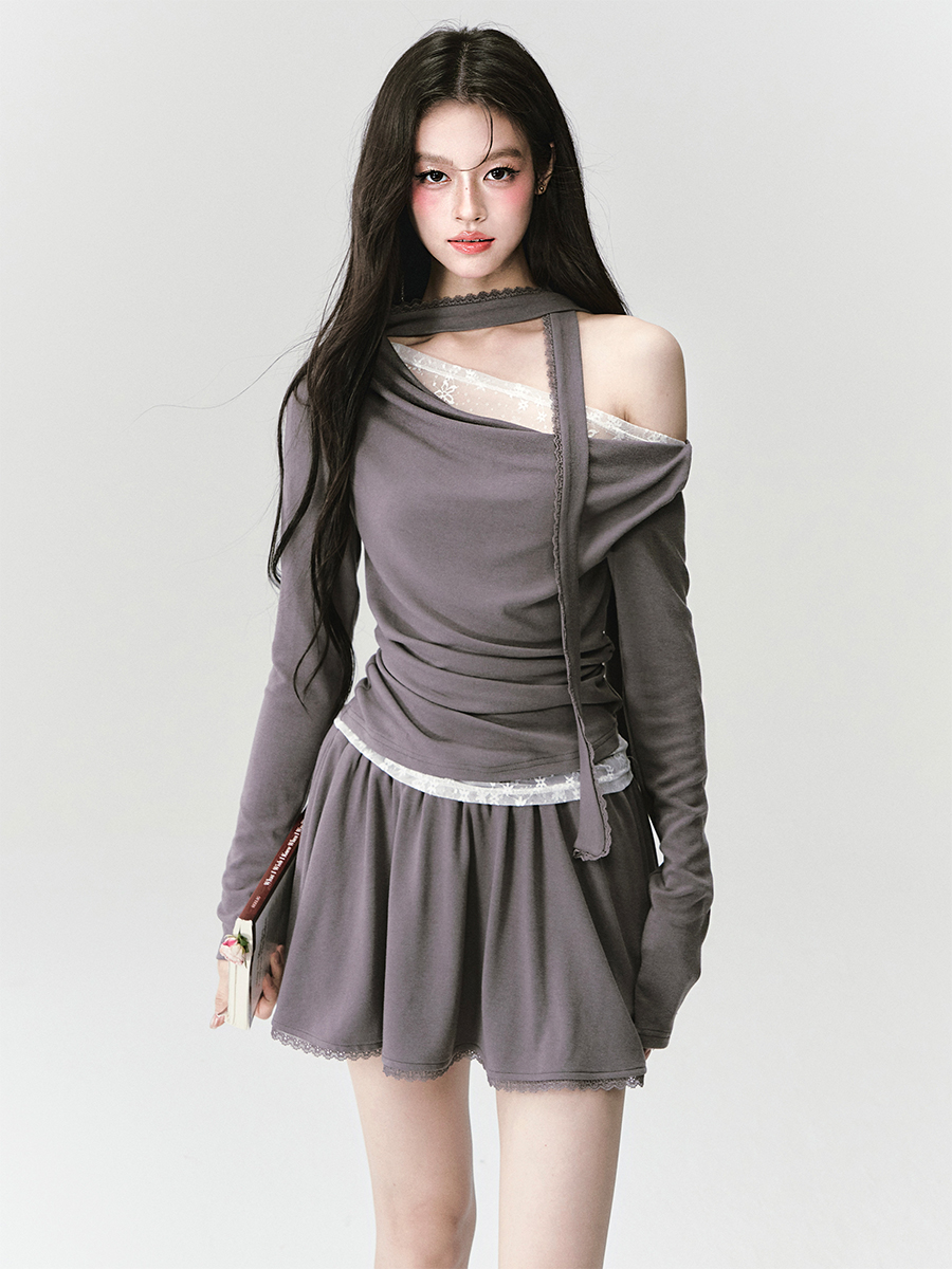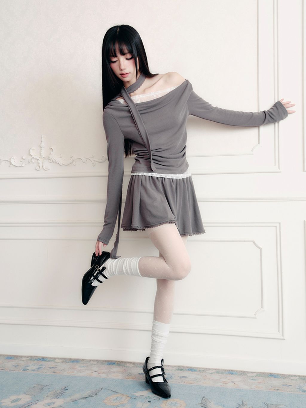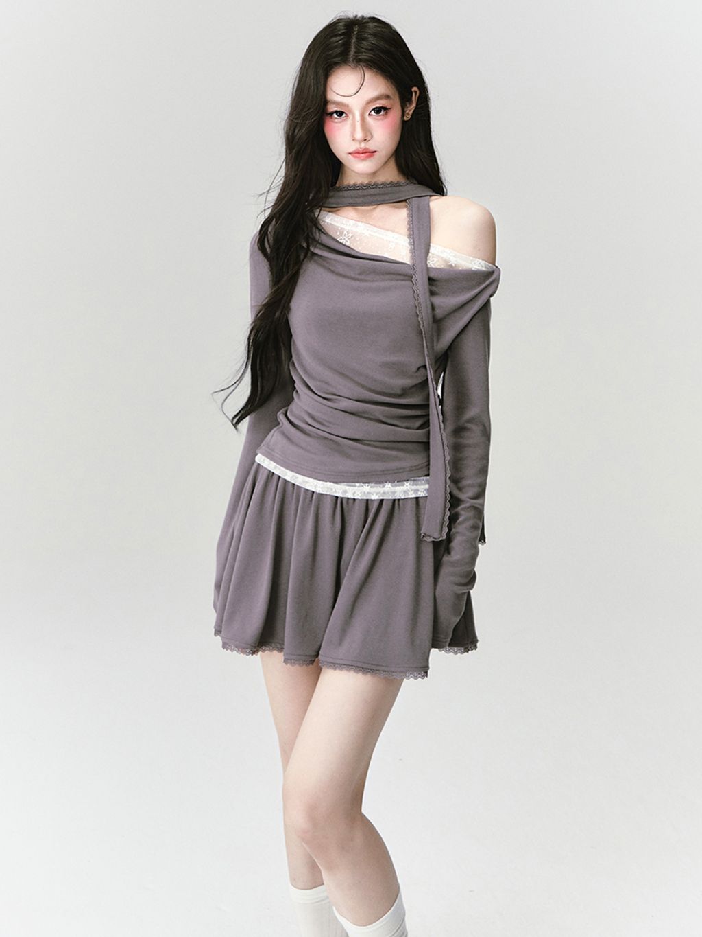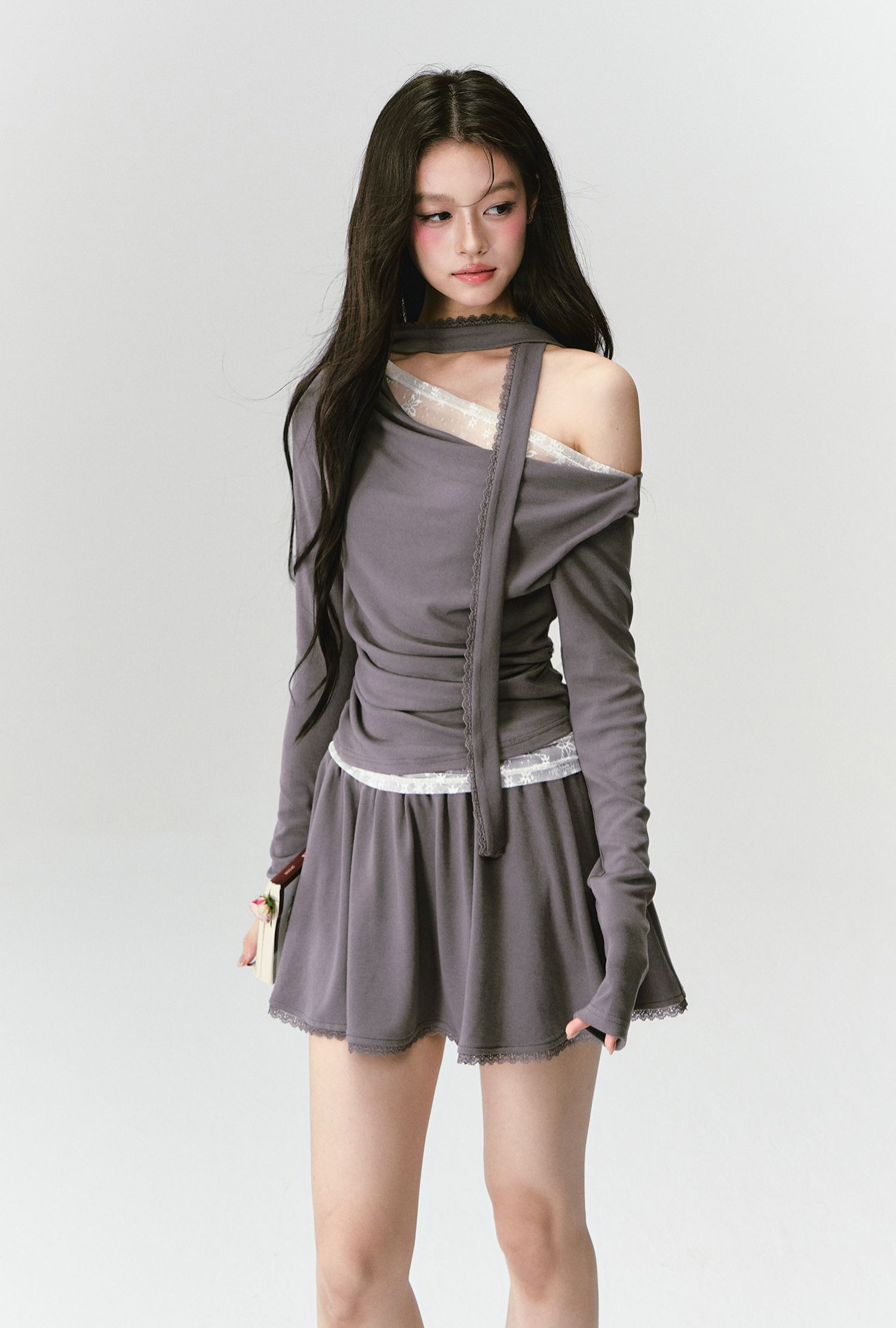 Misty Mauve Drape Knit Set-up (Top & Skirt: Sold Separately)