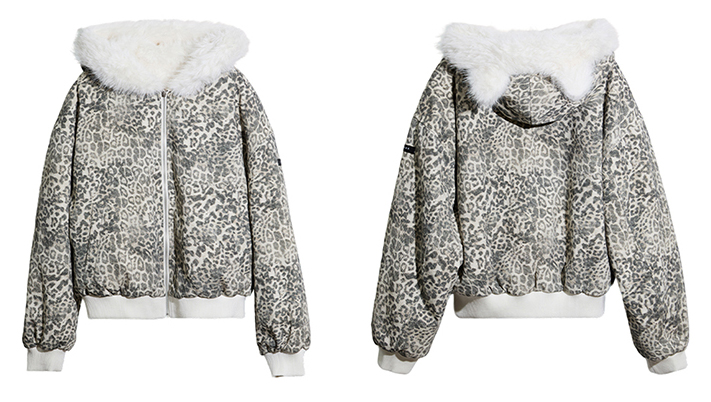 Reversible Leopard Fur Ear Hood Fur Jacket