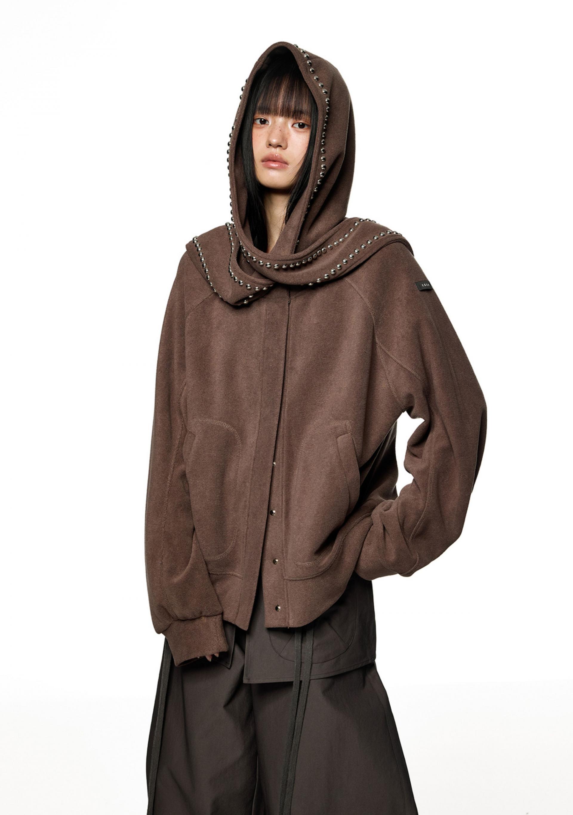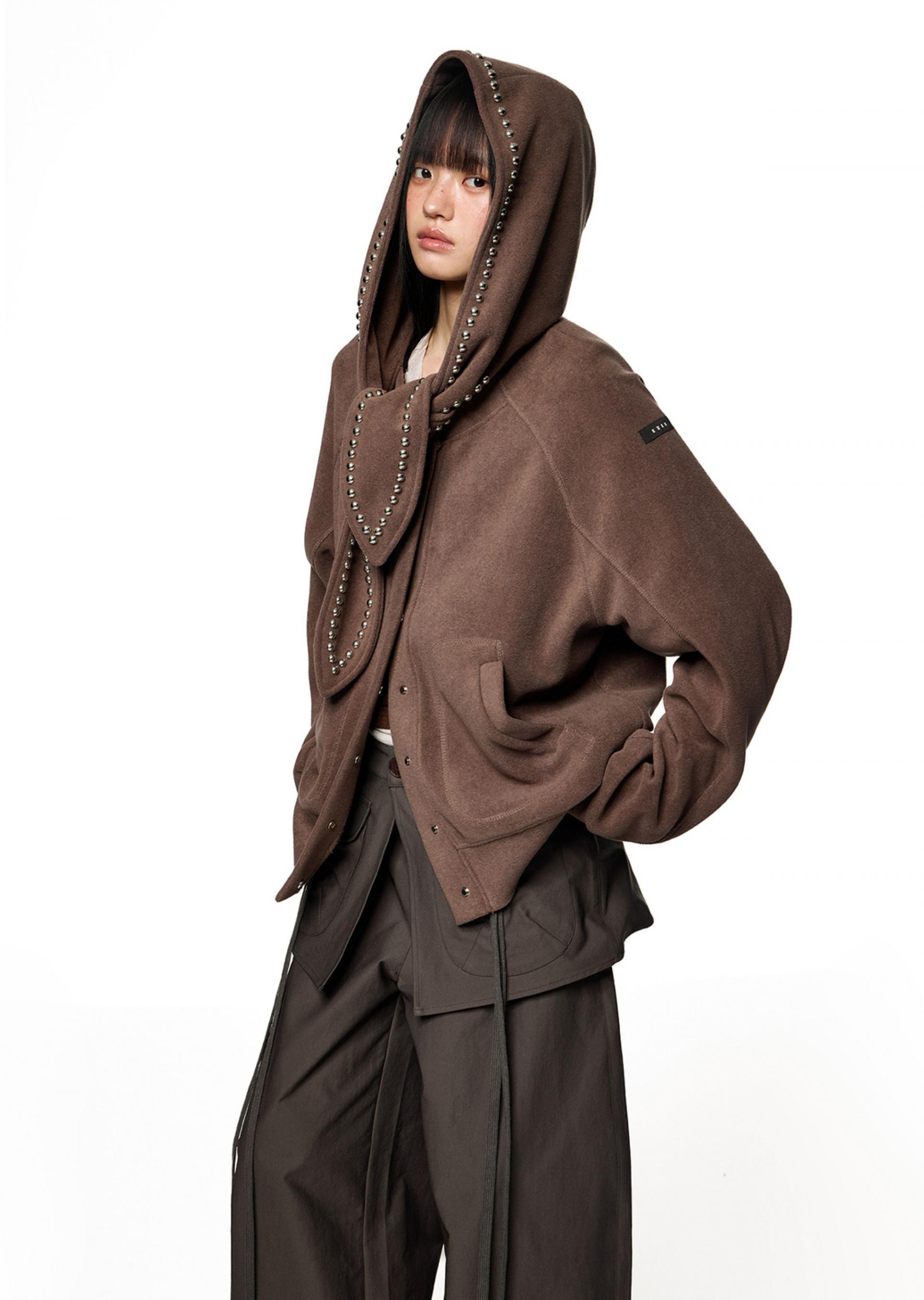 Studded Scarf Strap Hooded Cardigan