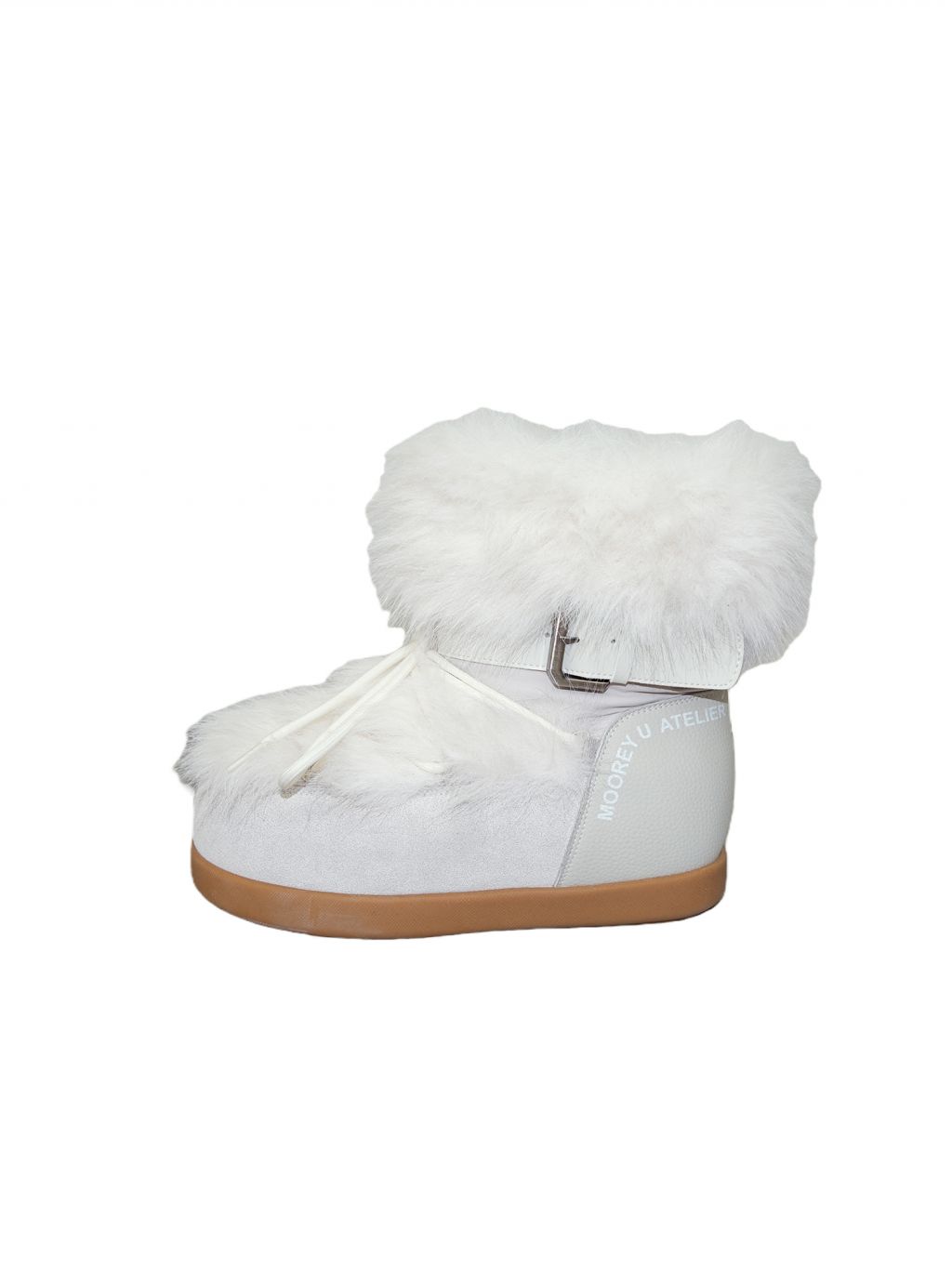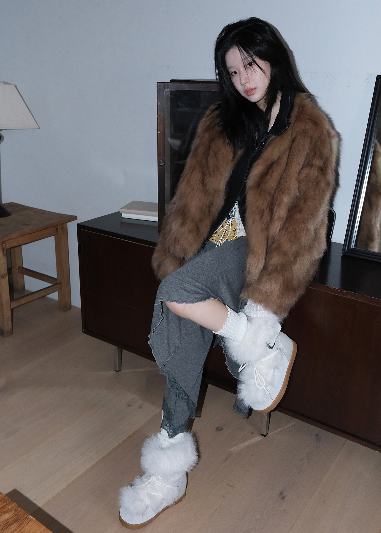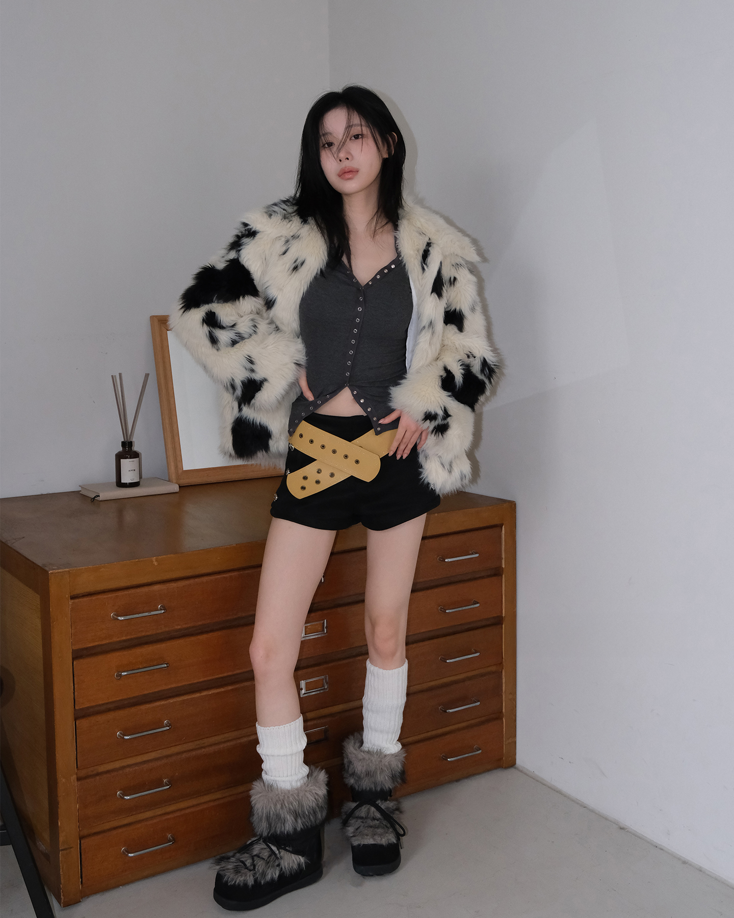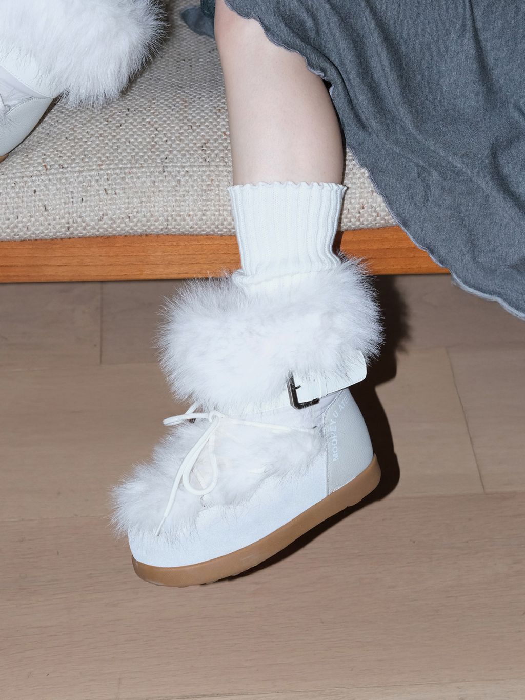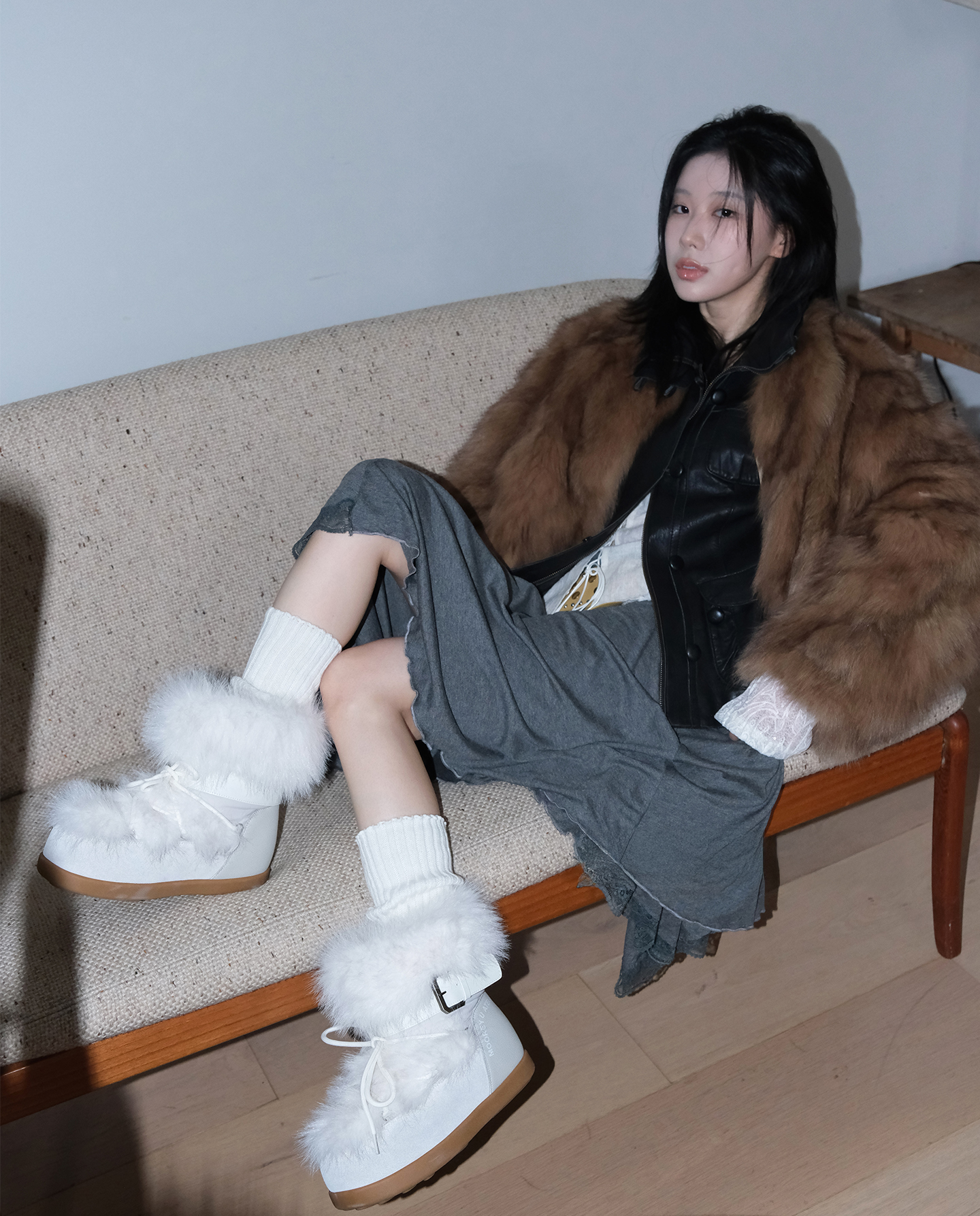 겨울 시즌 보온성과 착화감을 강화한 퍼 라이닝 벨트 부츠로, 5.5cm 히든힐 구조를 통해 편안한 키높이 효과를 제공합니다.