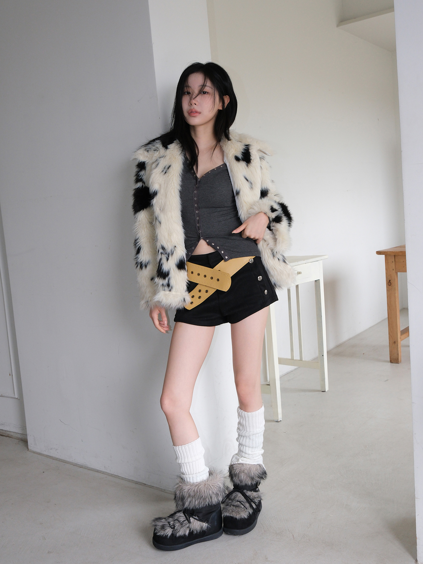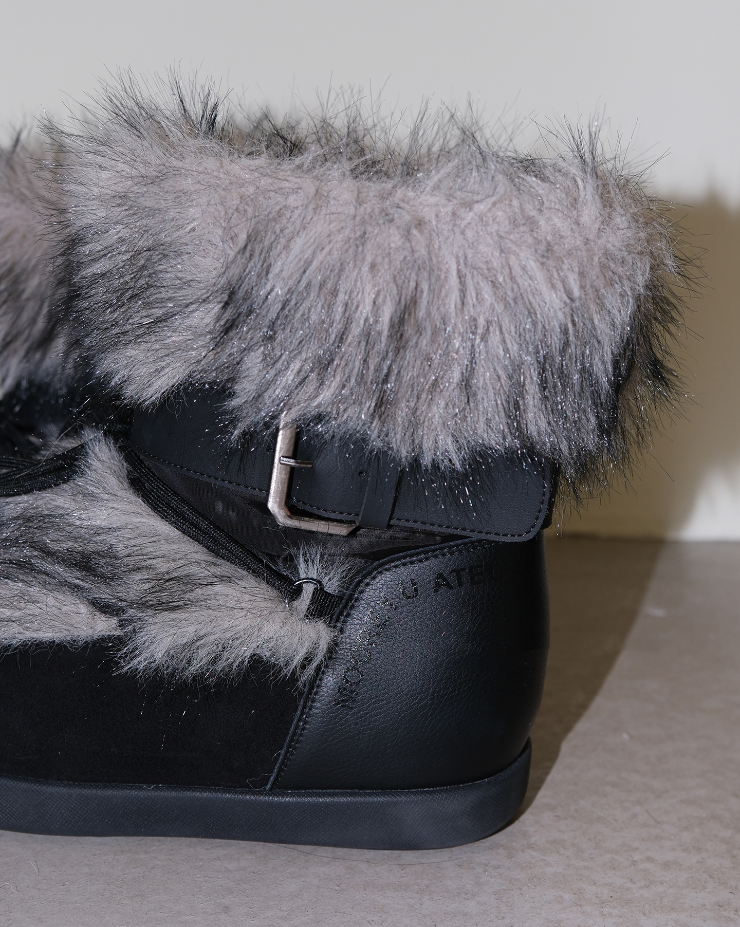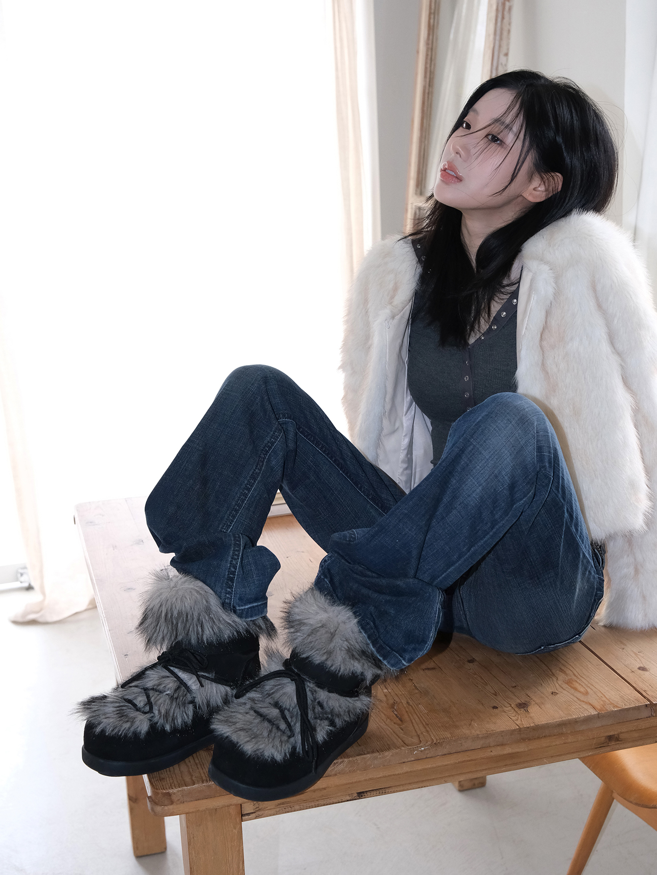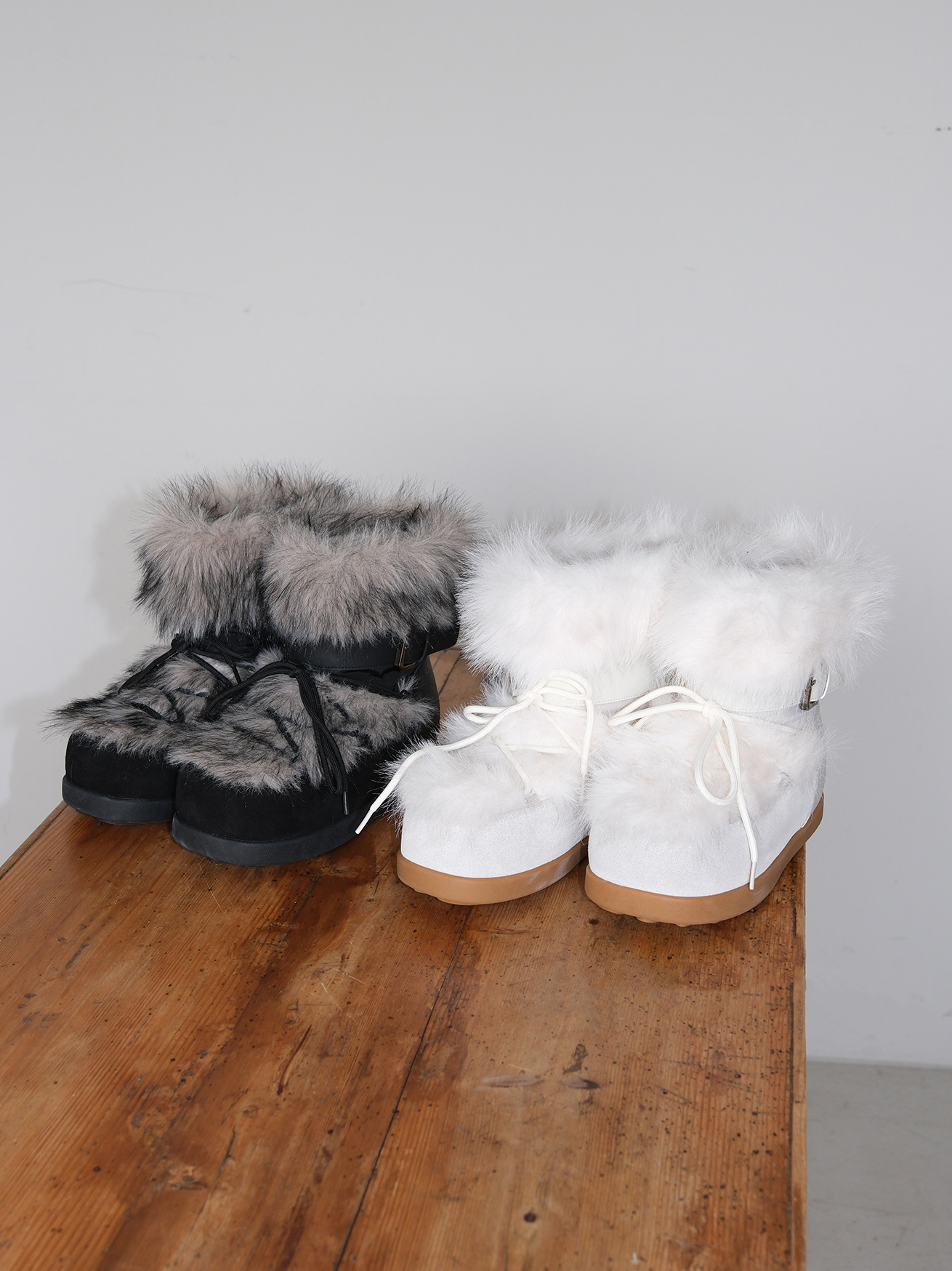 겨울 시즌 보온성과 착화감을 강화한 퍼 라이닝 벨트 부츠로, 5.5cm 히든힐 구조를 통해 편안한 키높이 효과를 제공합니다.