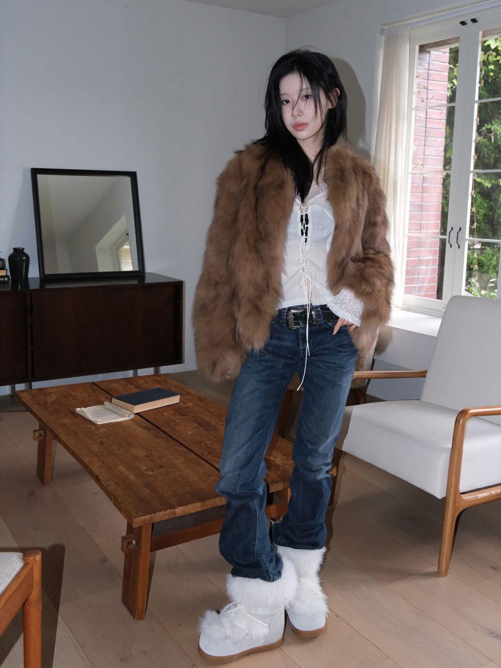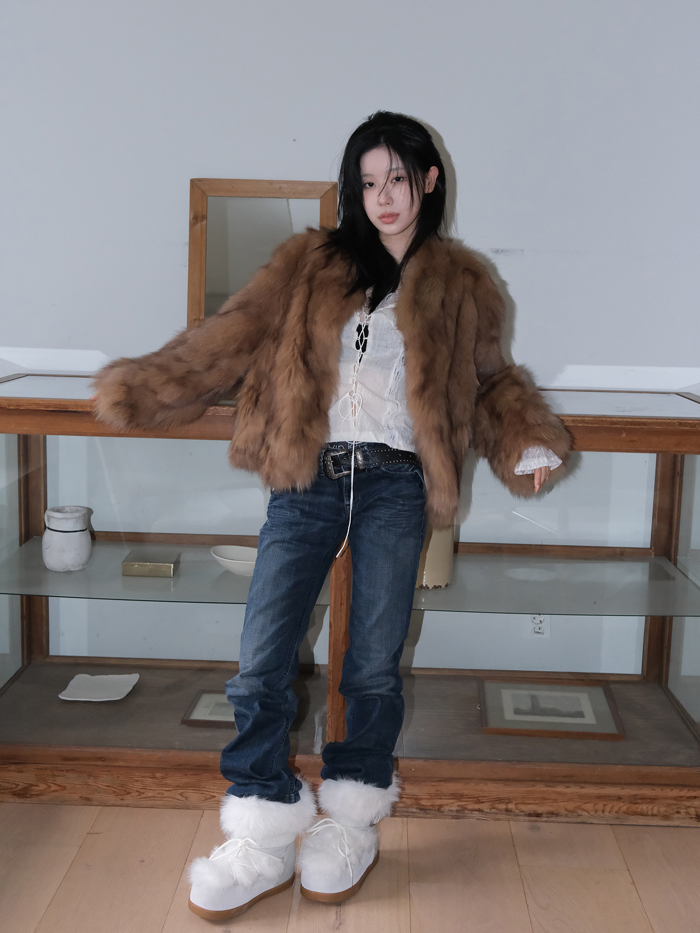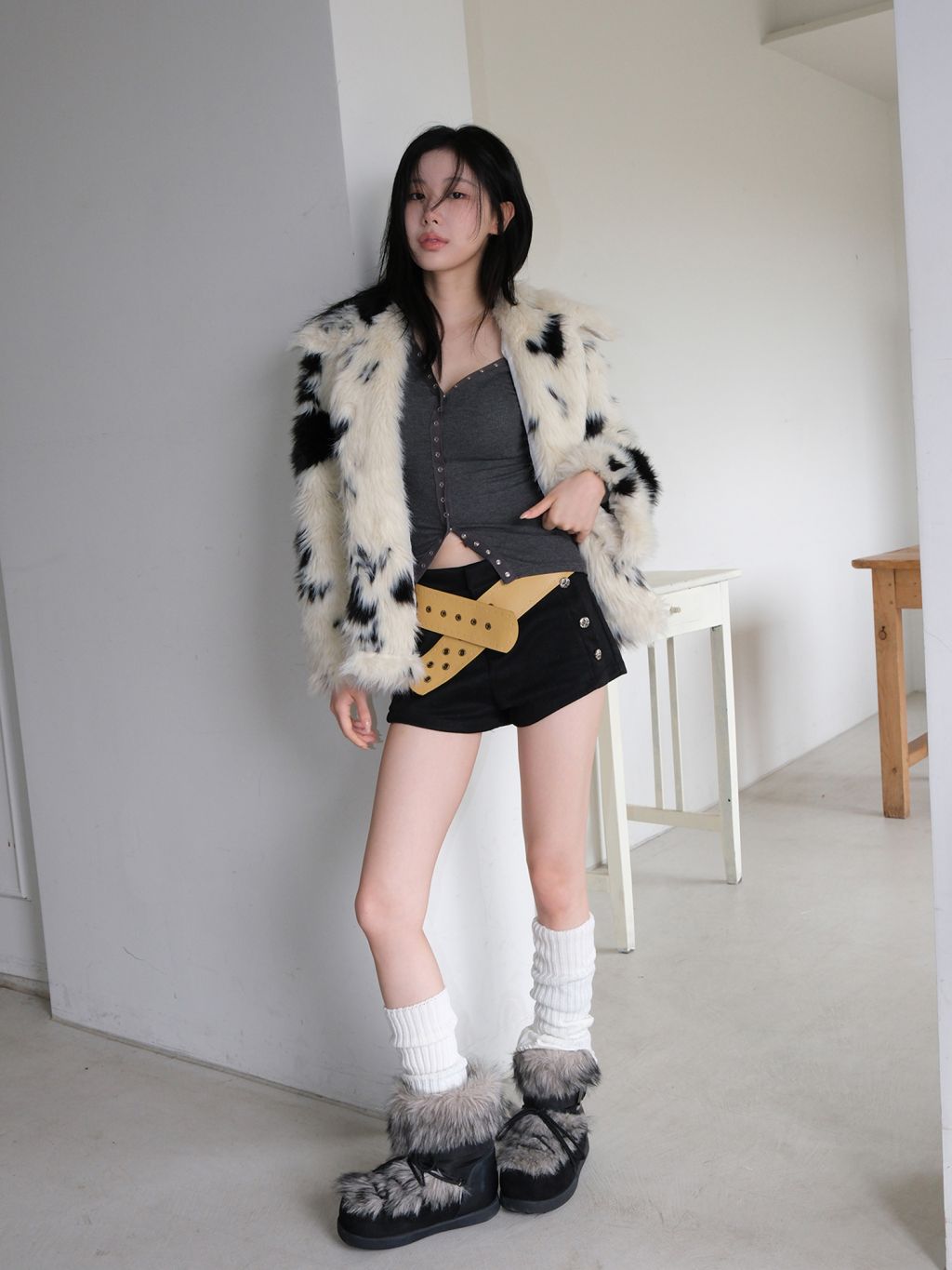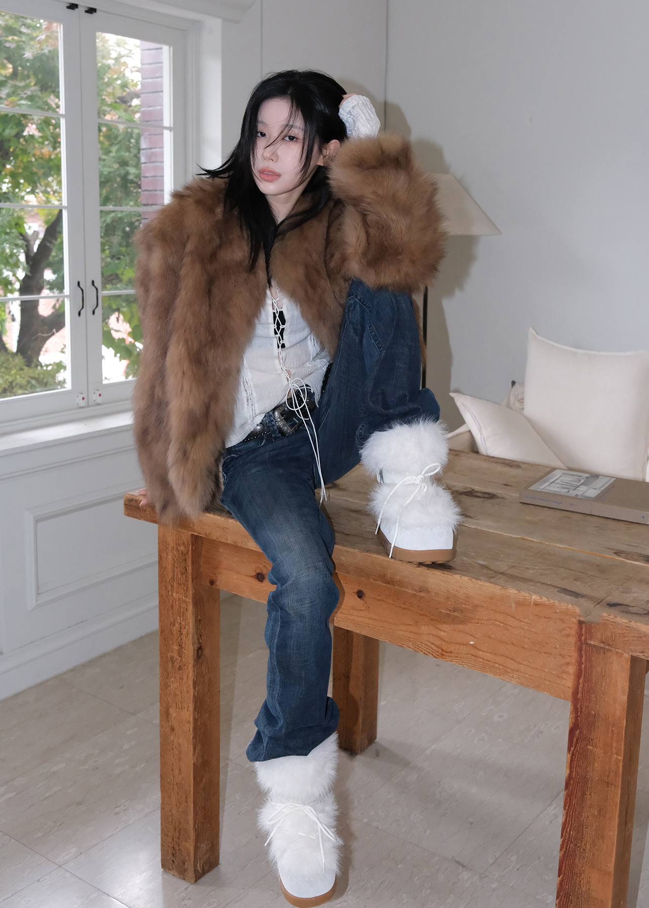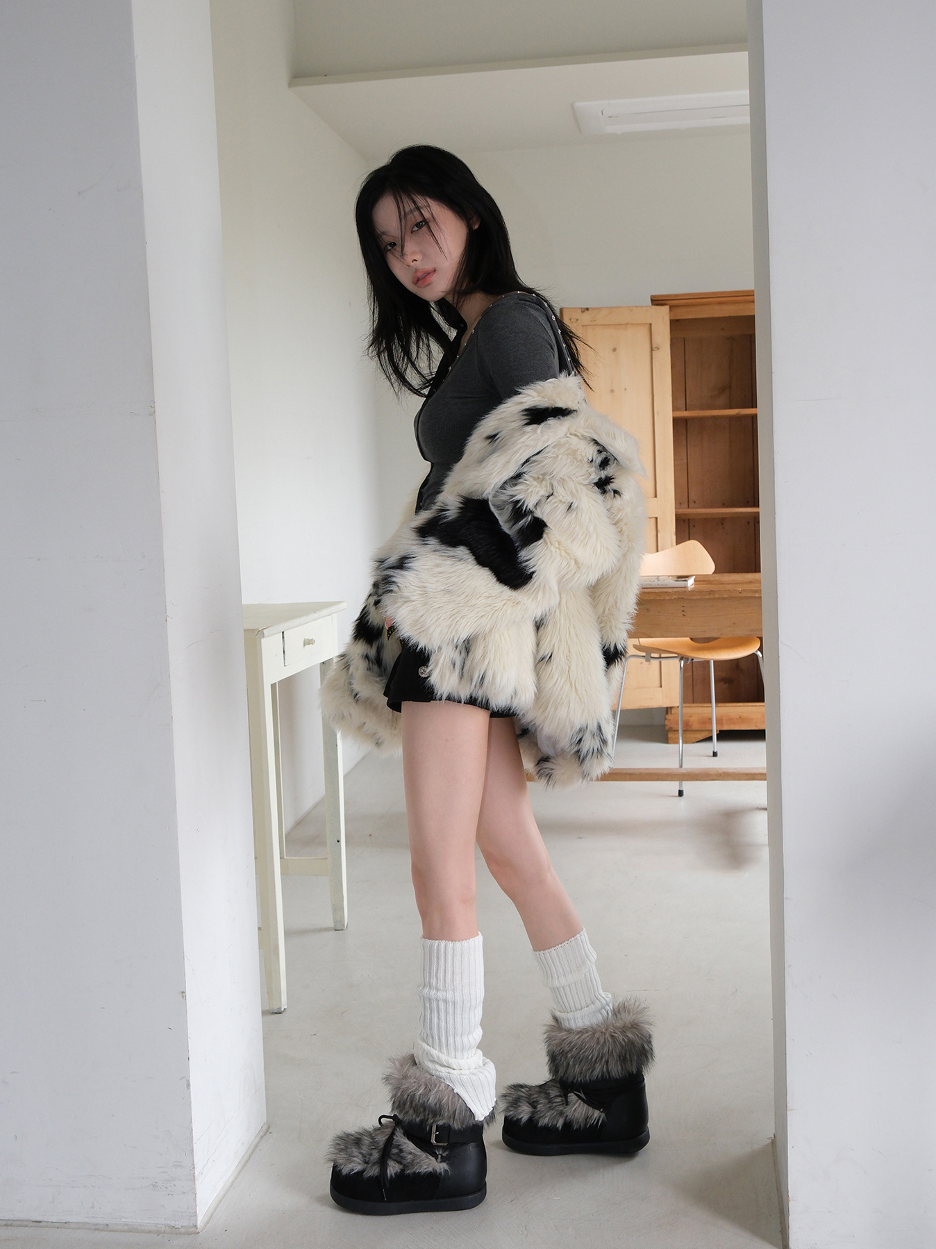 겨울 시즌 보온성과 착화감을 강화한 퍼 라이닝 벨트 부츠로, 5.5cm 히든힐 구조를 통해 편안한 키높이 효과를 제공합니다.
