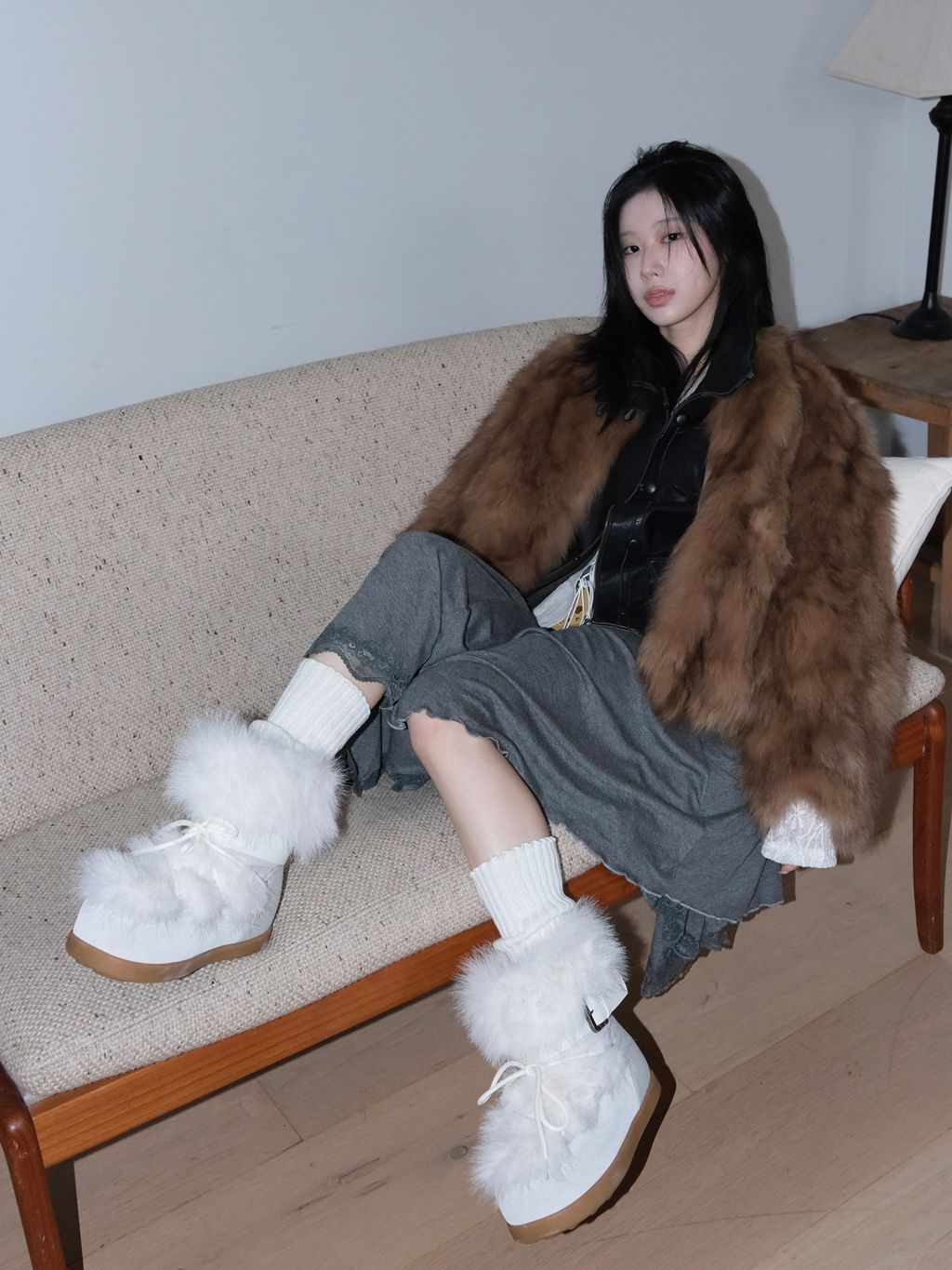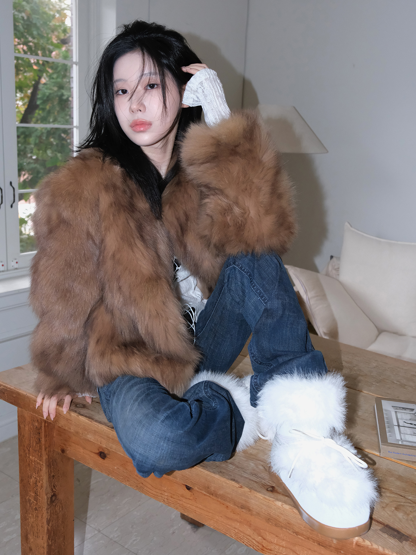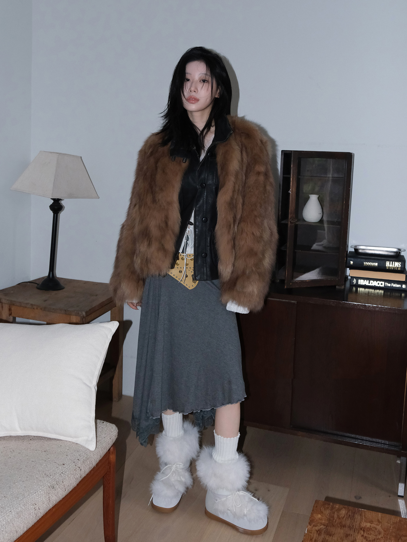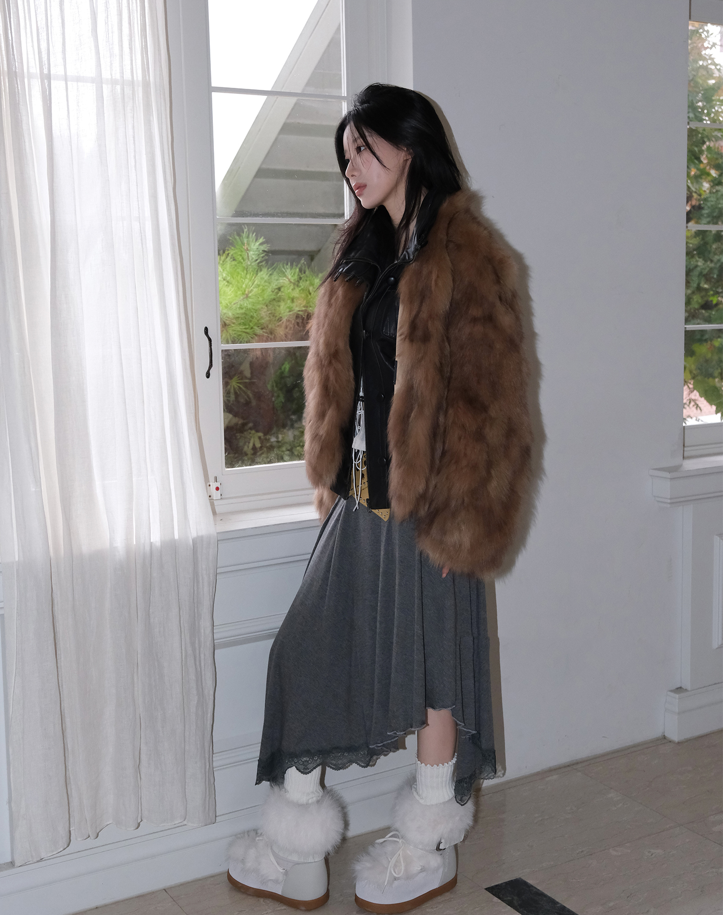 Upper (Black) : Cow fiber + Flocking fabric + Umbrella fabric + Faux mink fur