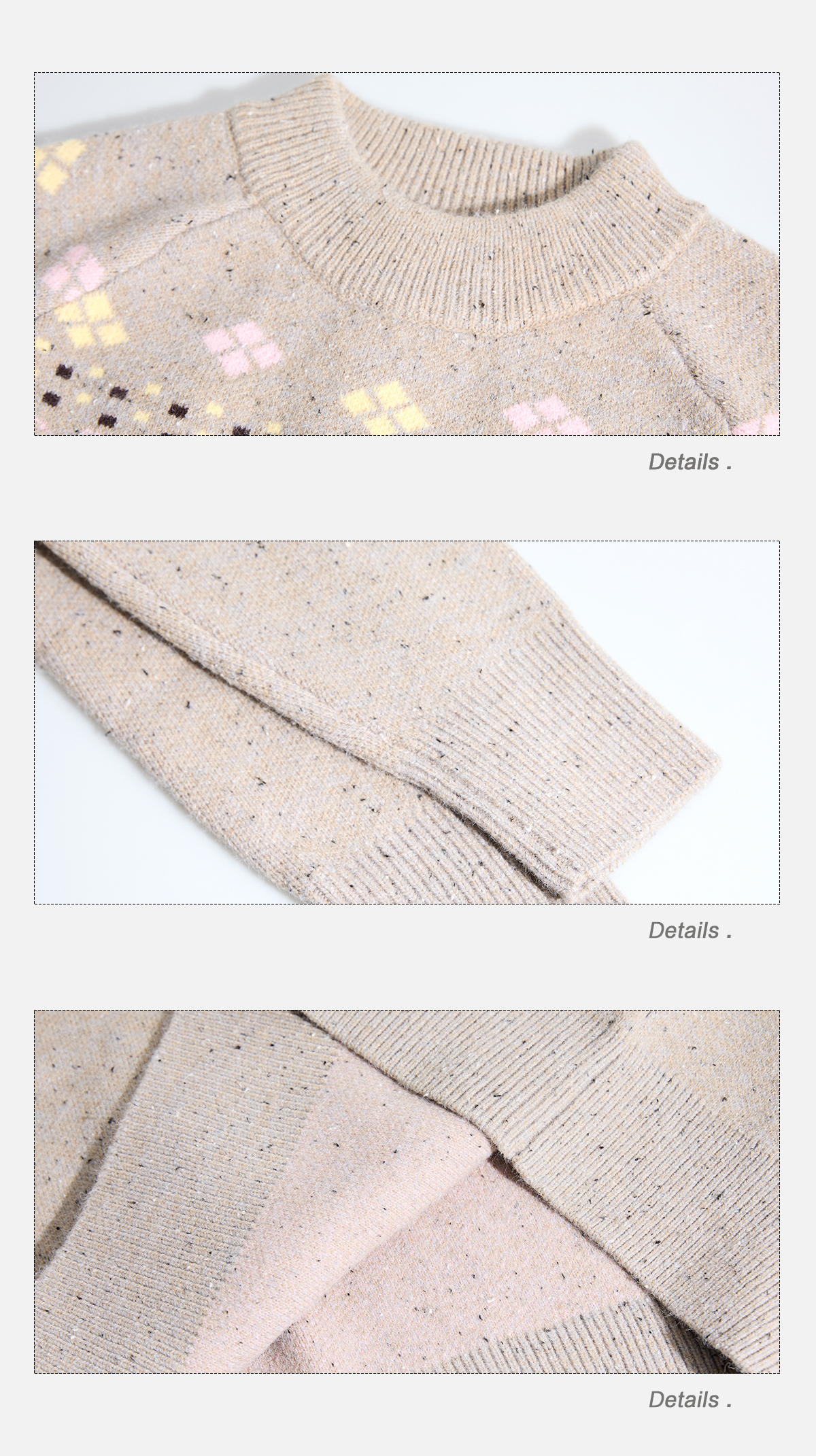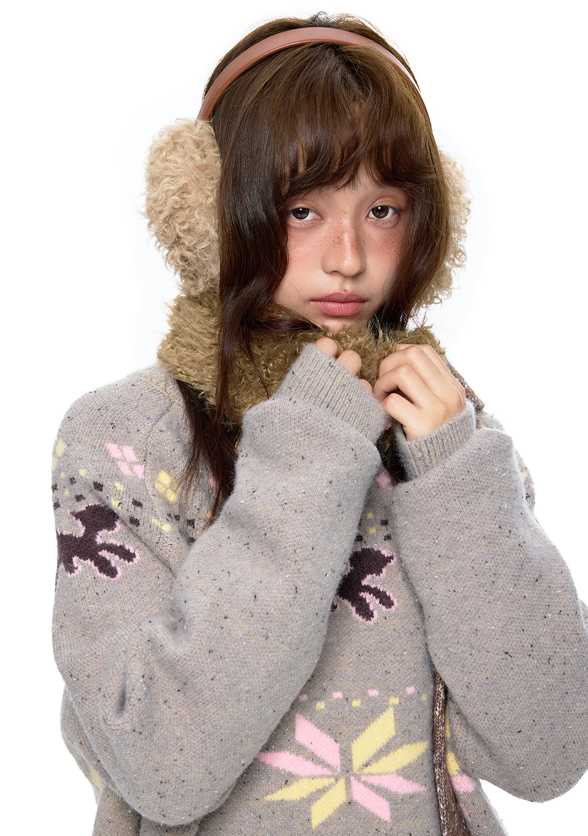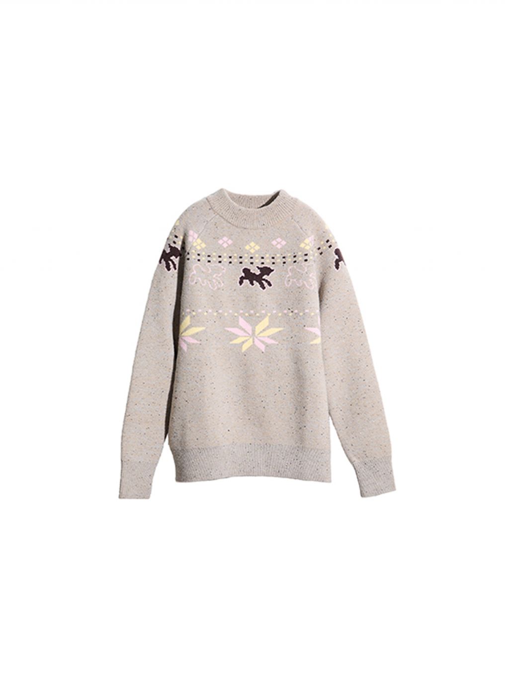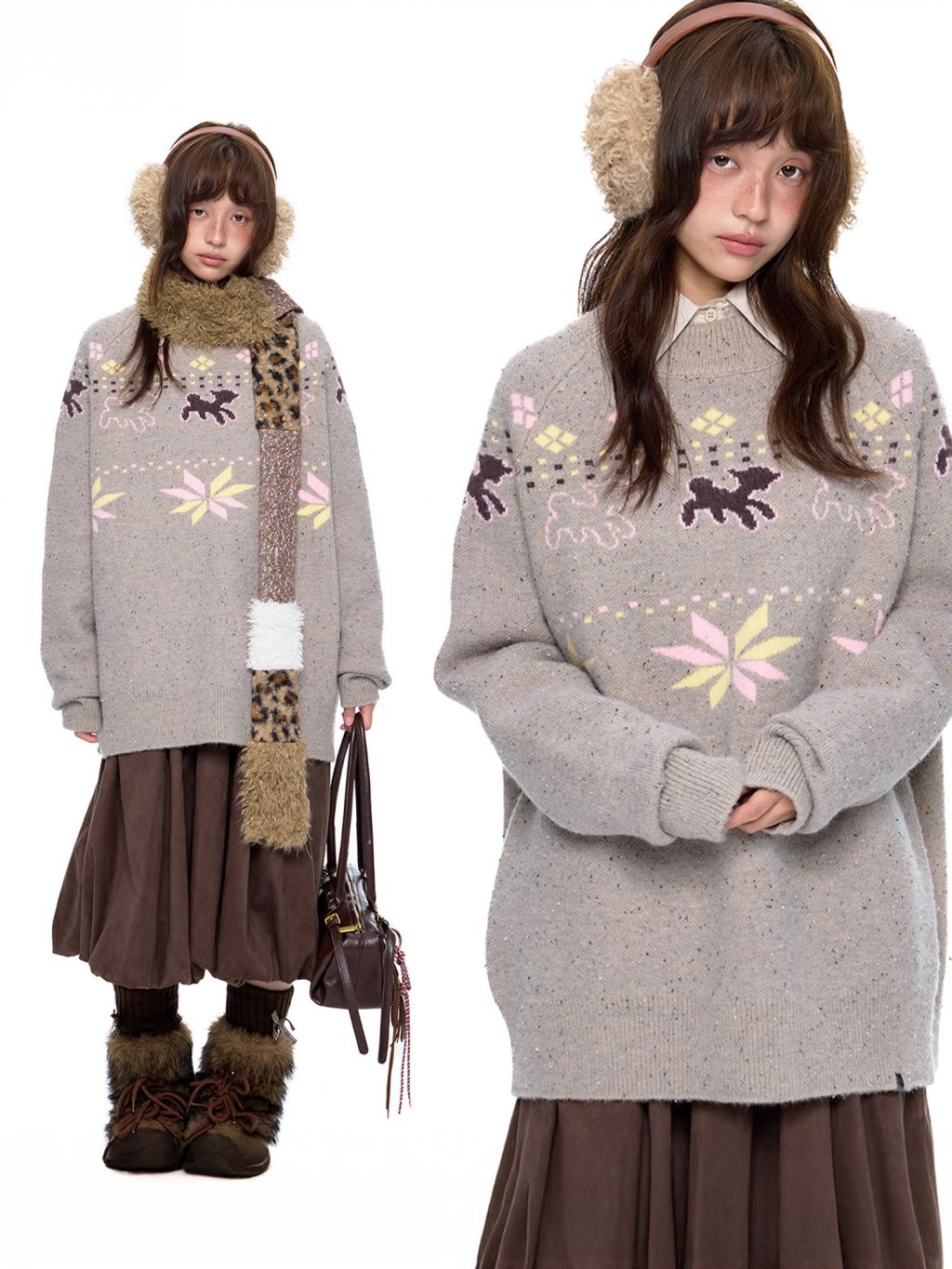포근한 네프 원사와 강아지·스노우 패턴이 포인트인 오버핏 니트 스웨터입니다.