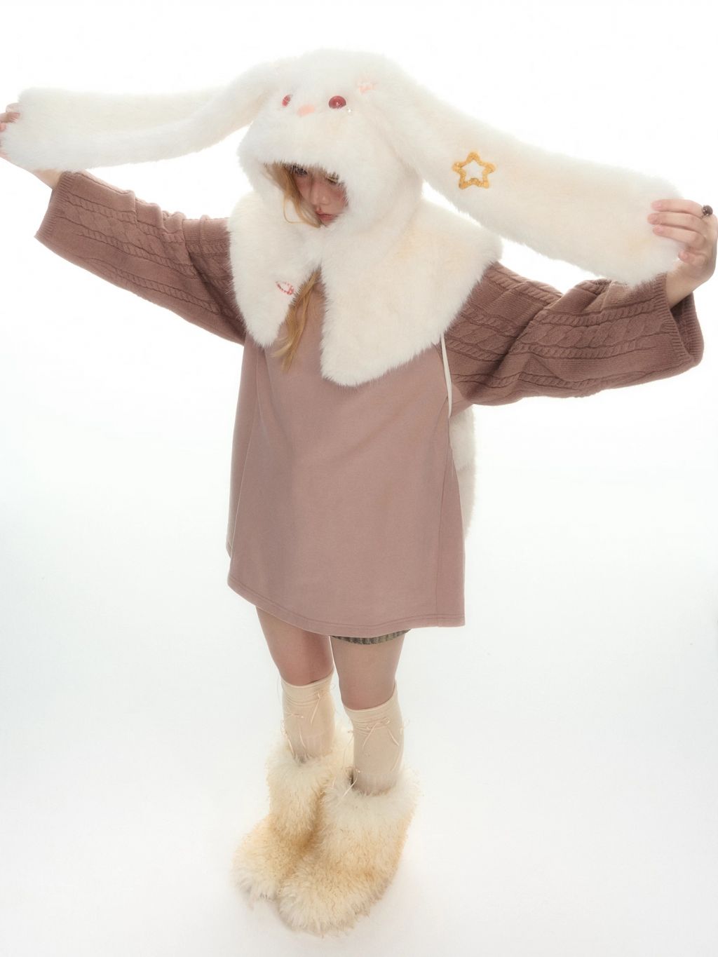 귀엽고 포근한 토끼모티브 후드 누빔 머플러로, 한 번에 보온과 스타일을 완성해주는 아이템입니다.