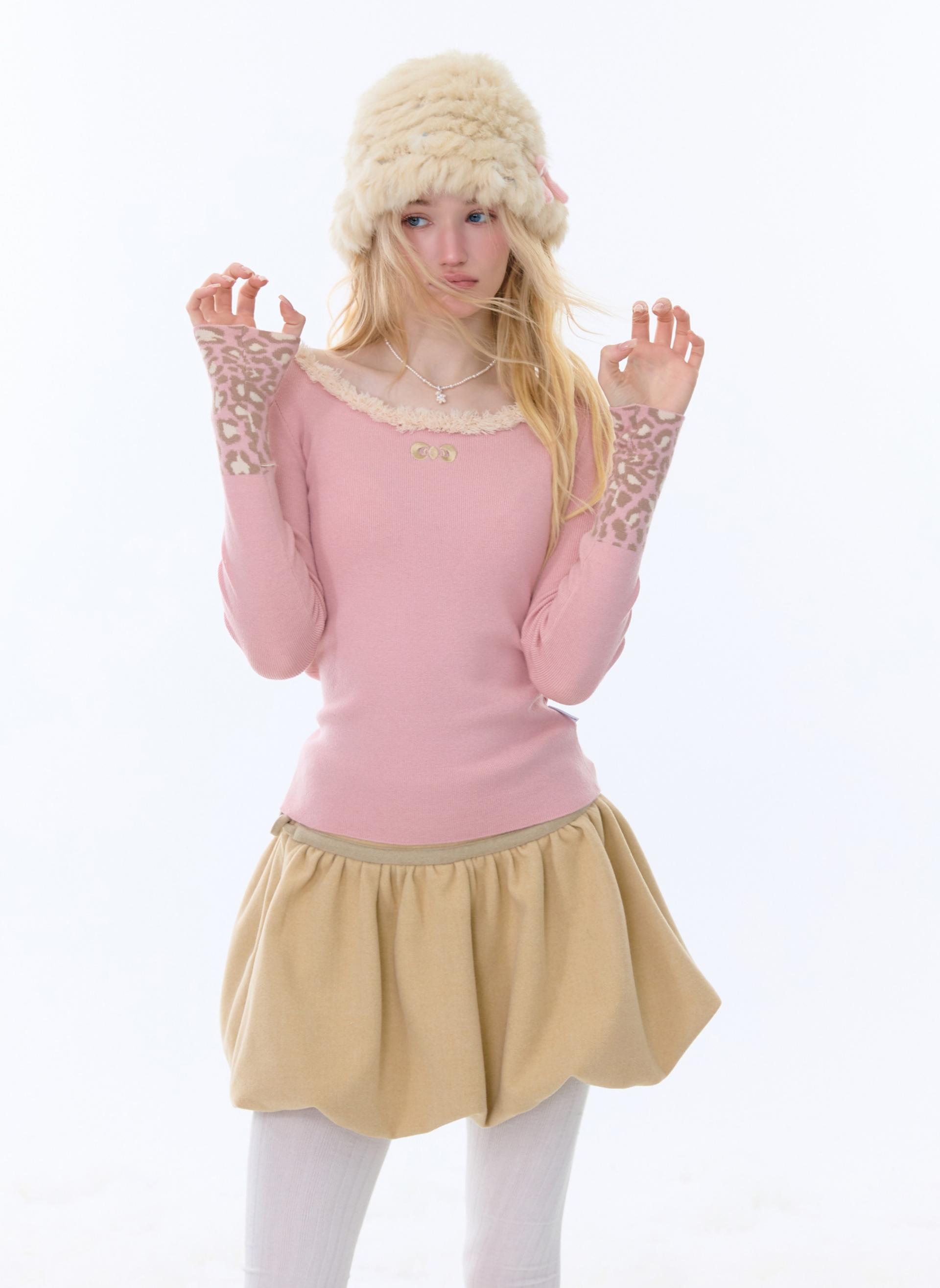 - 소매 끝 레오파드 패턴으로 시즌무드+러블리 감성 강화