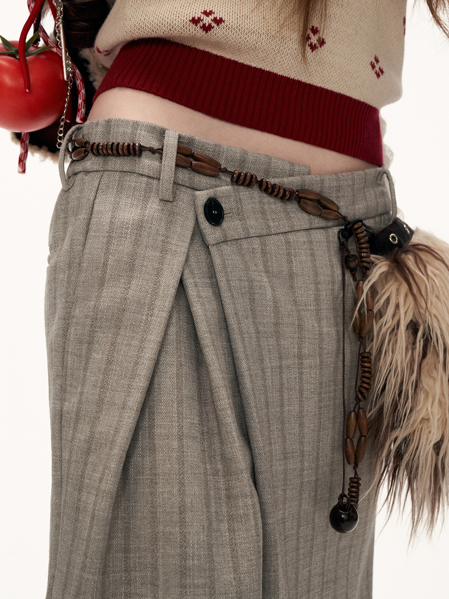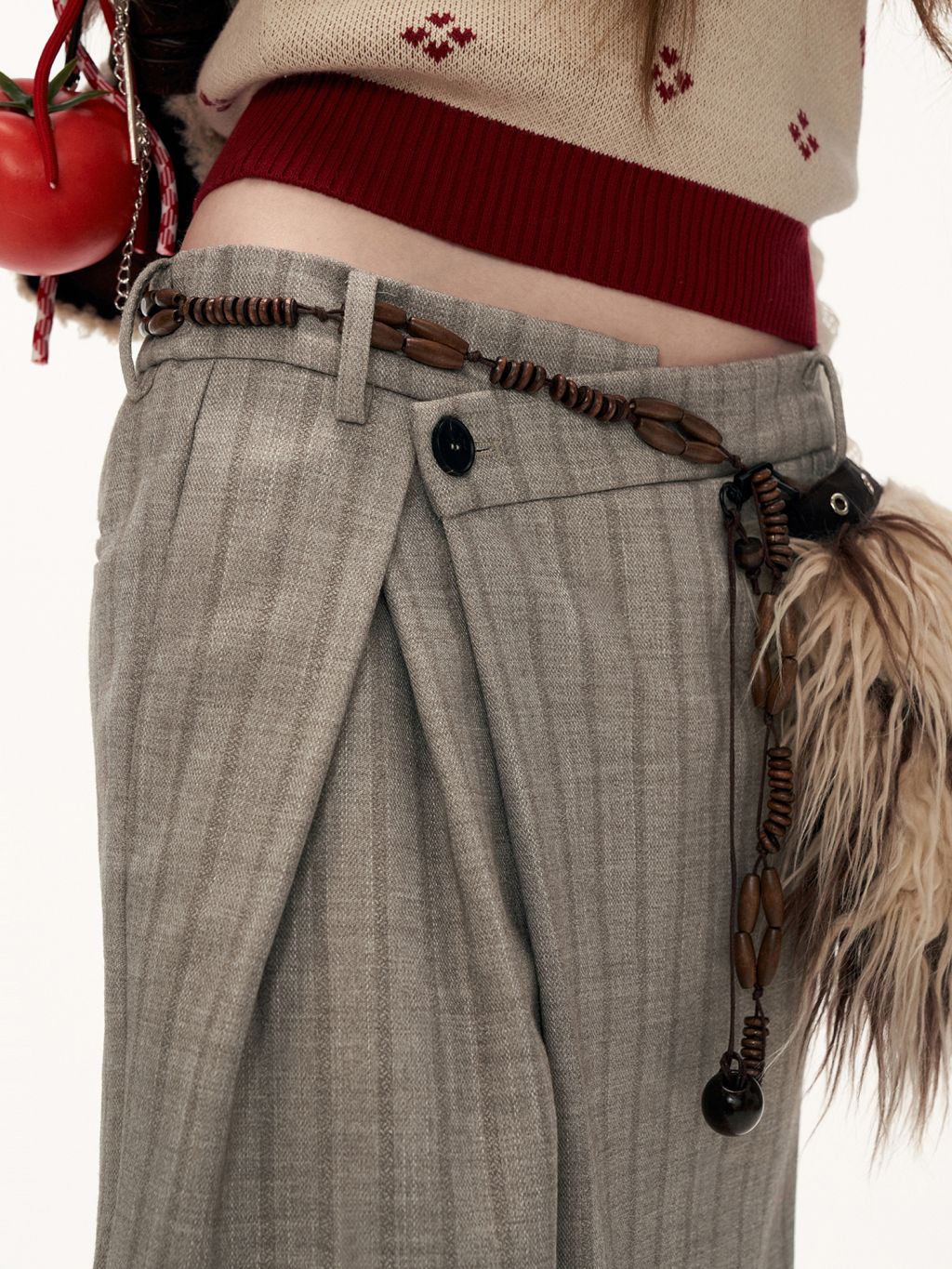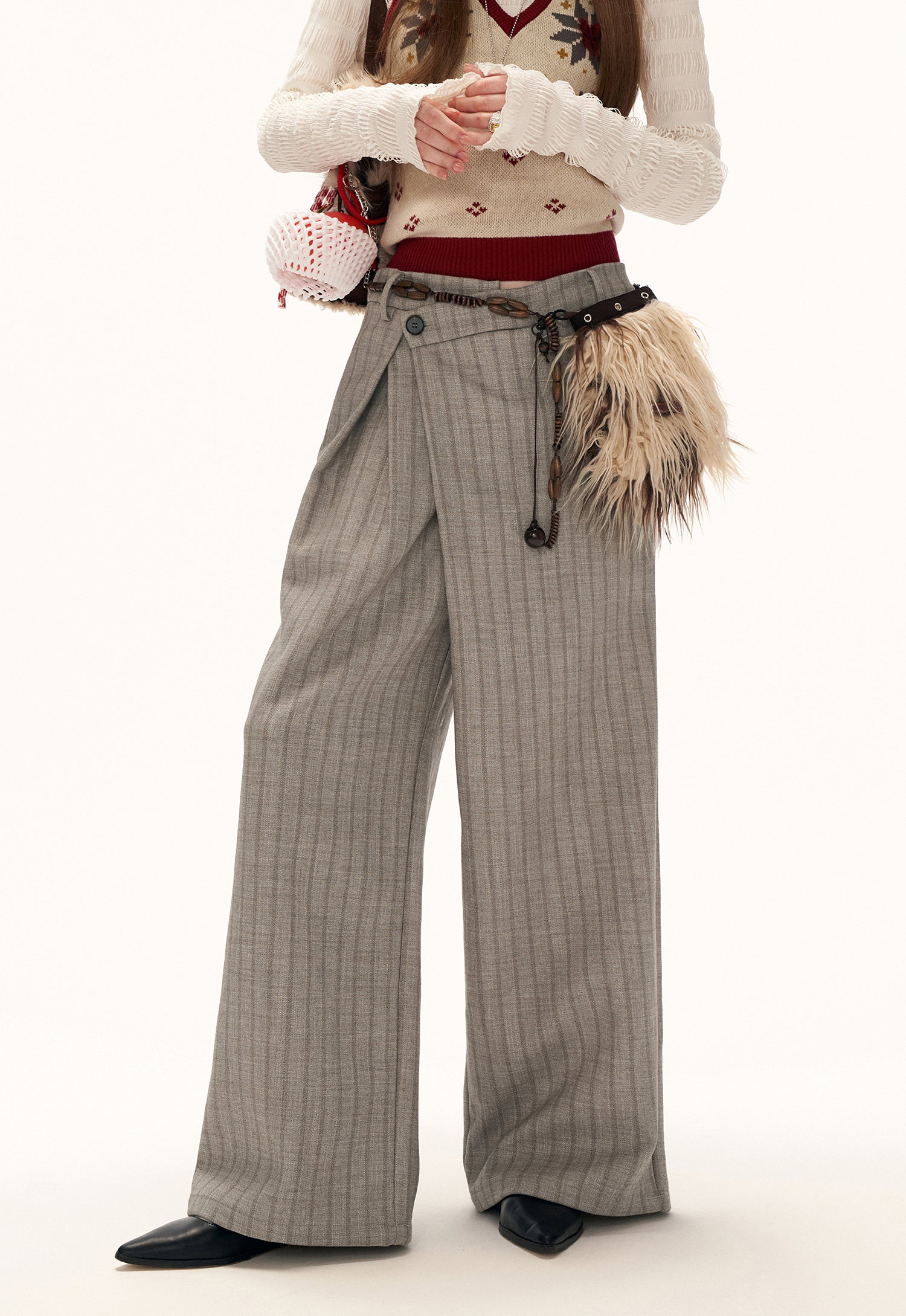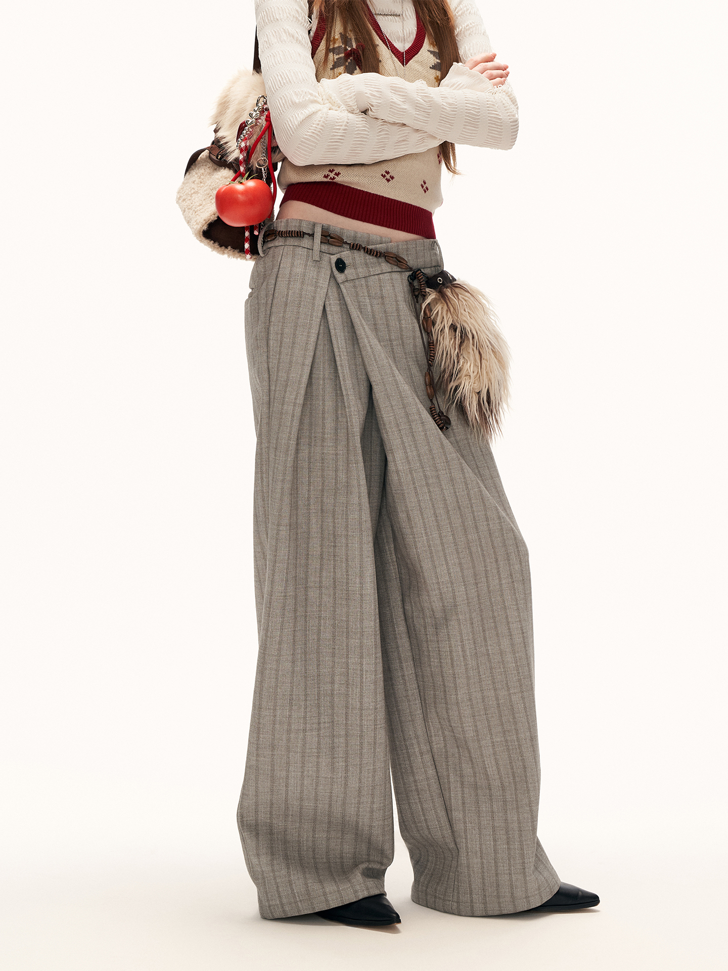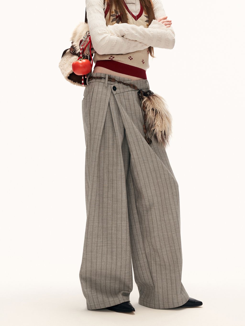 프런트 트위스트 디테일로 유니크한 실루엣을 완성한 테일러드 와이드 팬츠입니다.
