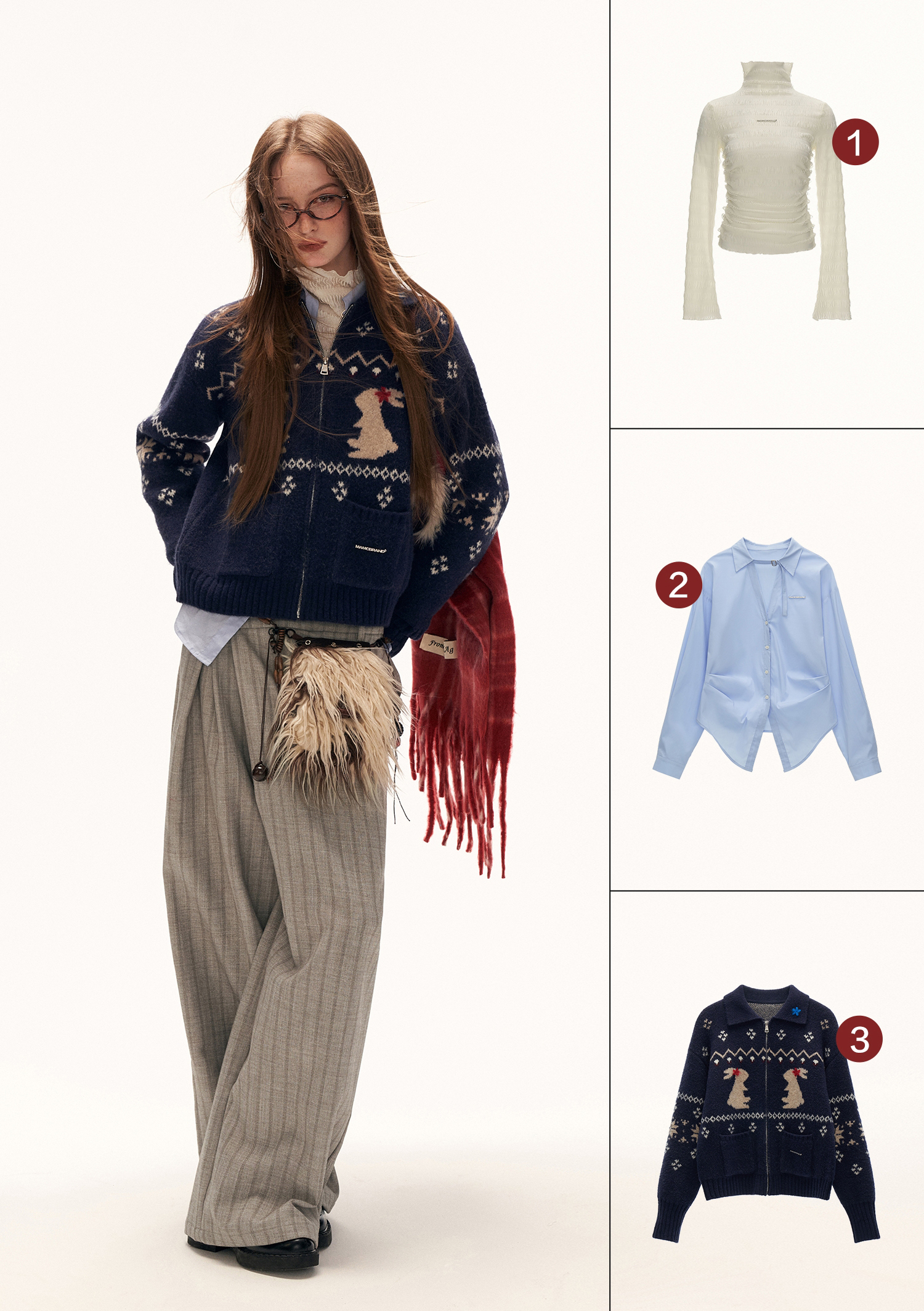 - 셔츠·니트 등 다양한 톱과 조화로운 스타일링 가능