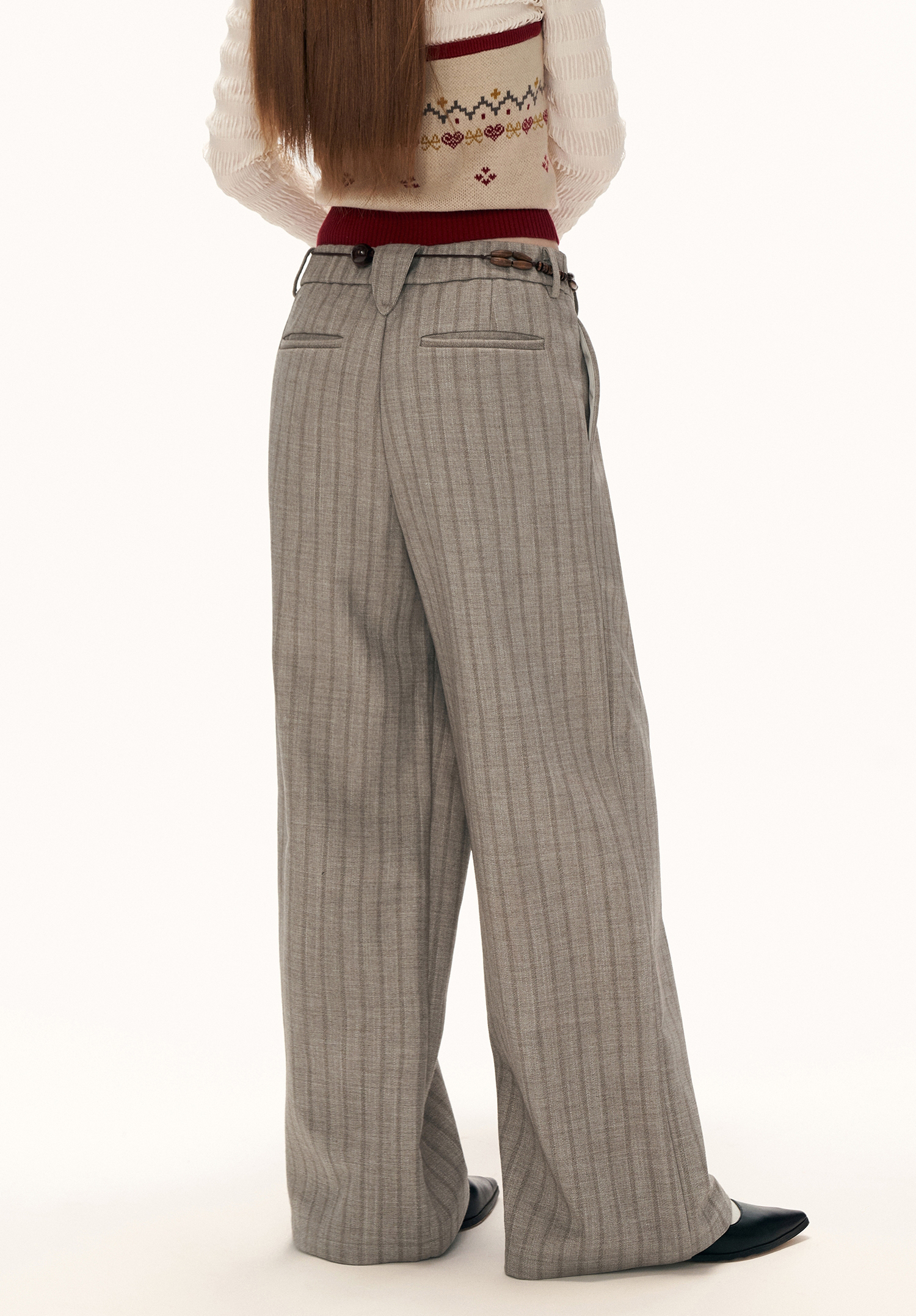 - 잔 스트라이프 패턴으로 클래식하면서도 슬림해 보이는 효과