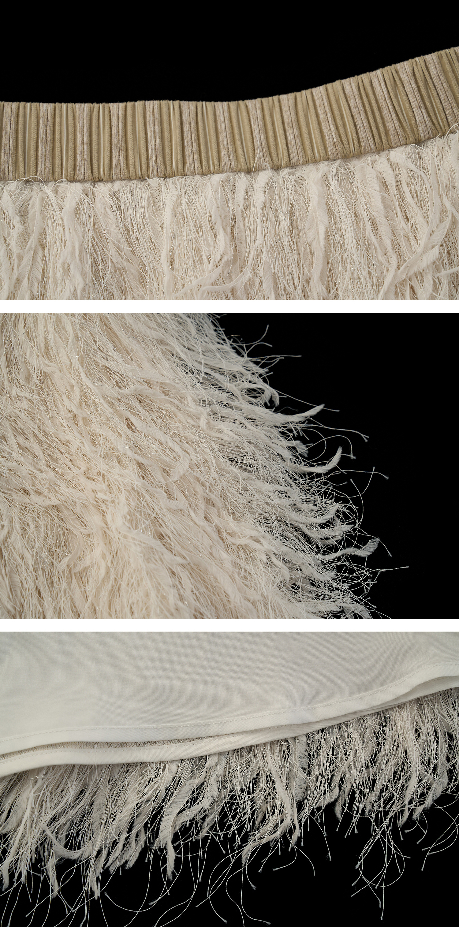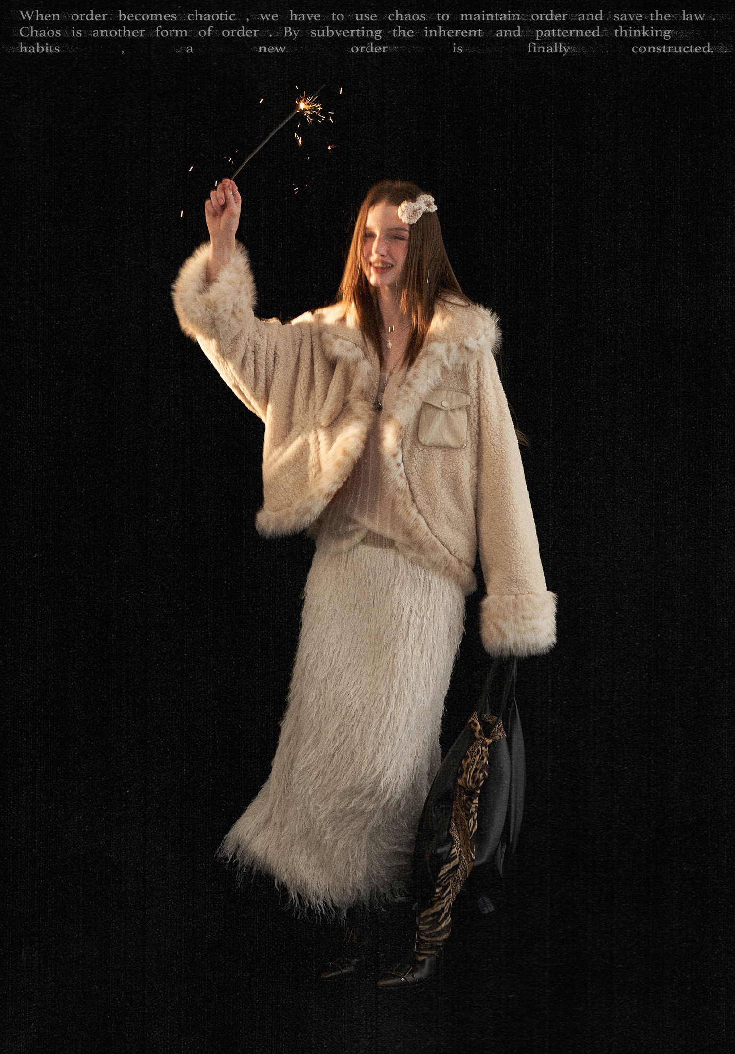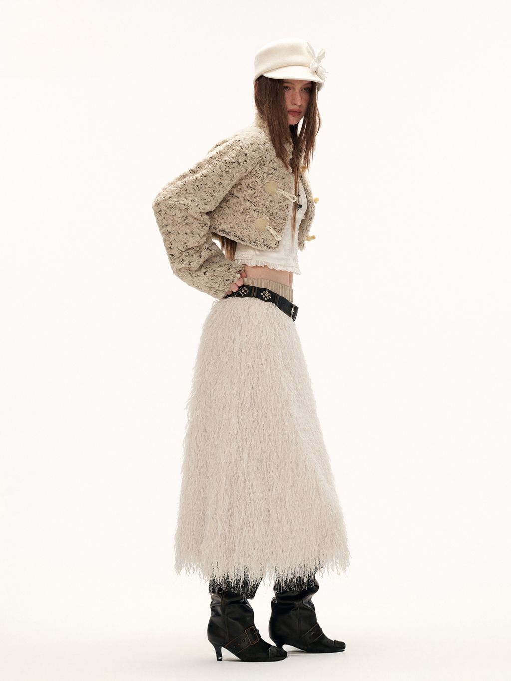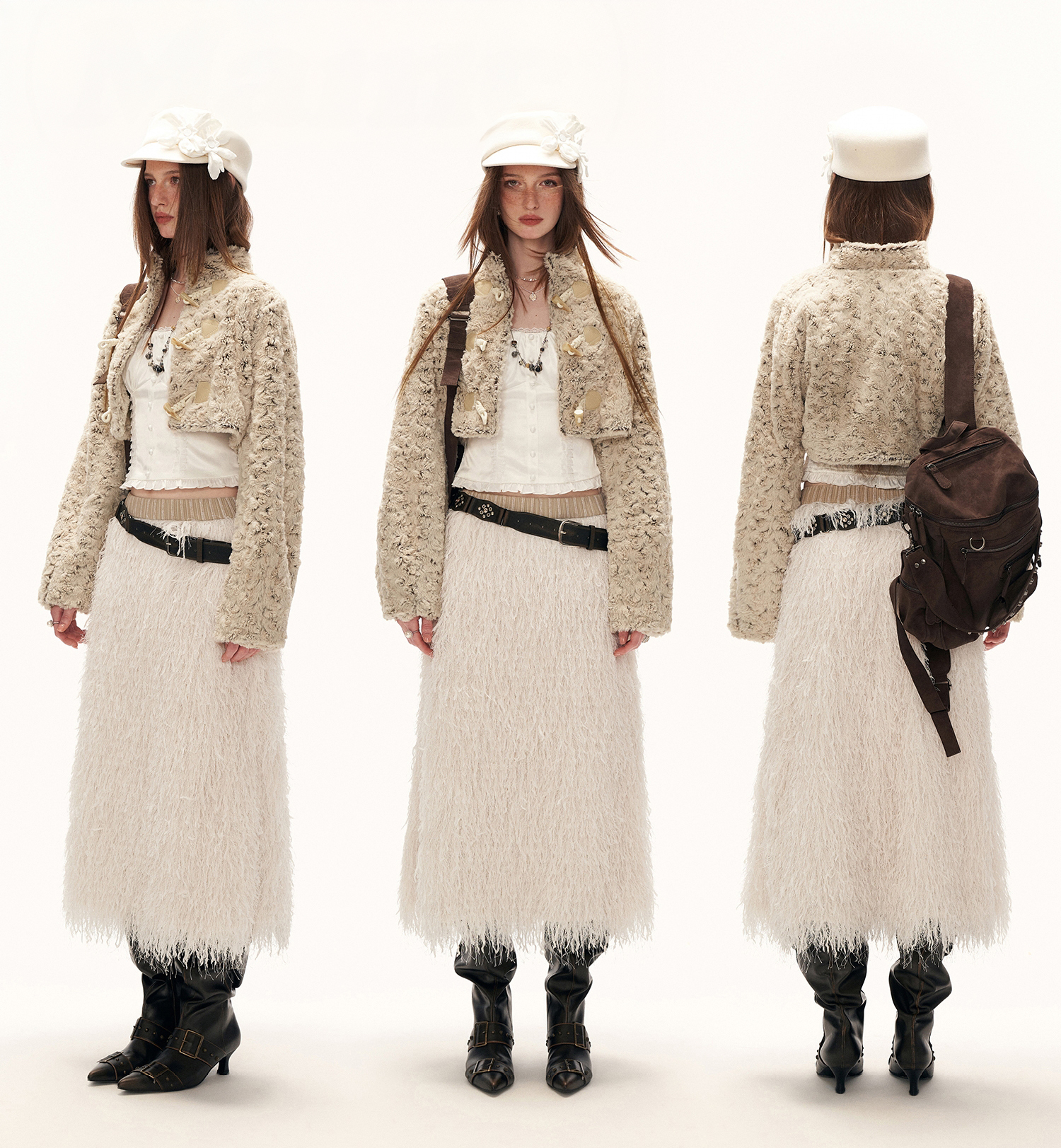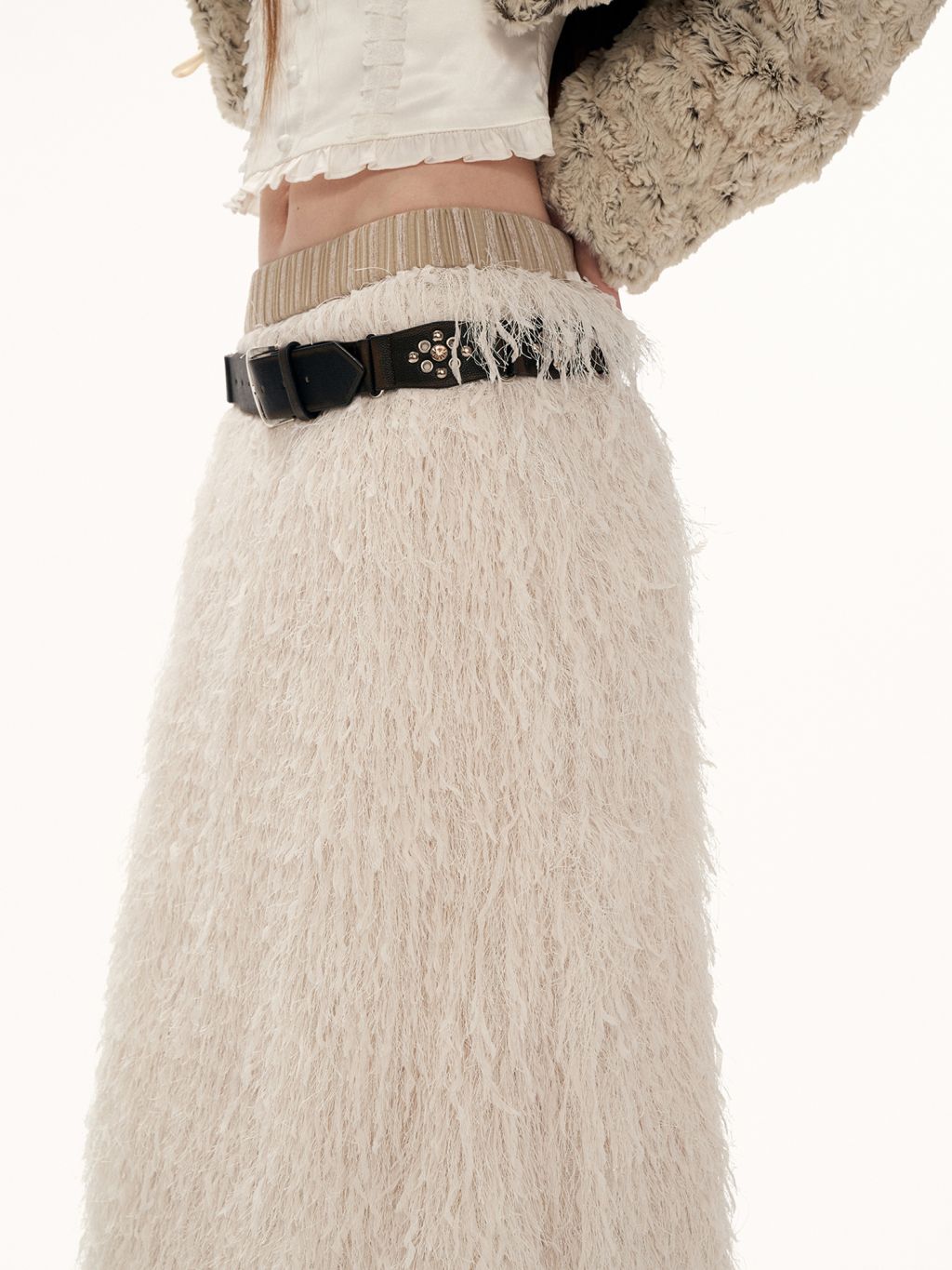풍성한 퍼 프린지 텍스처로 시즌 무드를 고급스럽게 완성하는 윈터 스커트입니다.