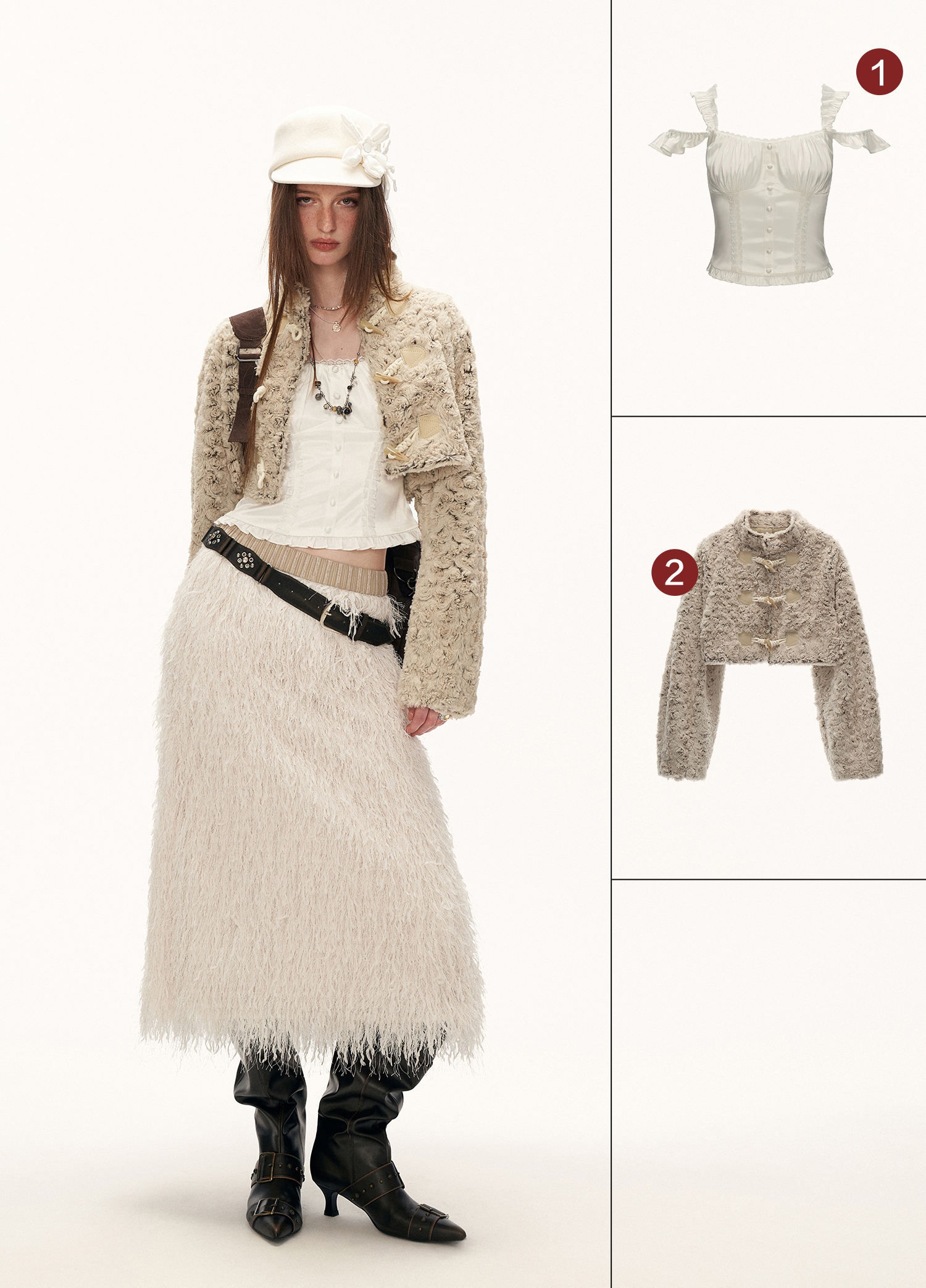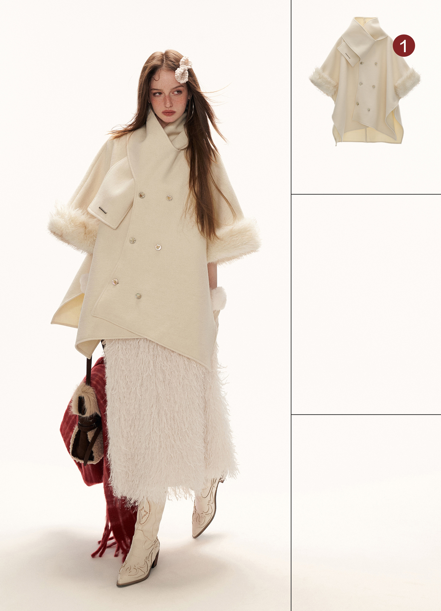 - 퍼 텍스처 프린지로 시각적인 볼륨감과 유니크한 스타일 표현