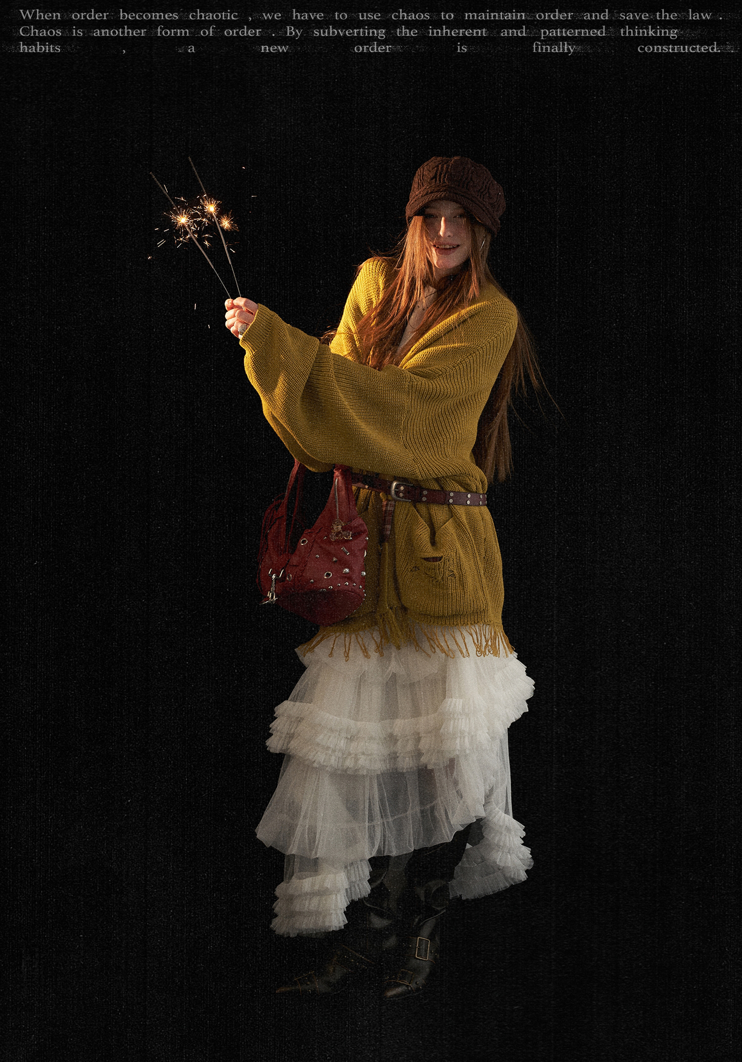 - 부분적인 디스트로이드 니트 마감으로 유니크한 그런지 무드를 연출