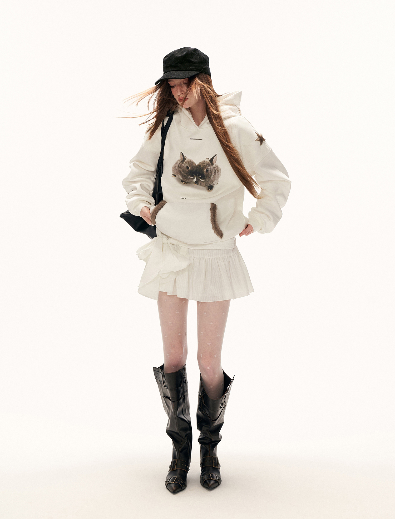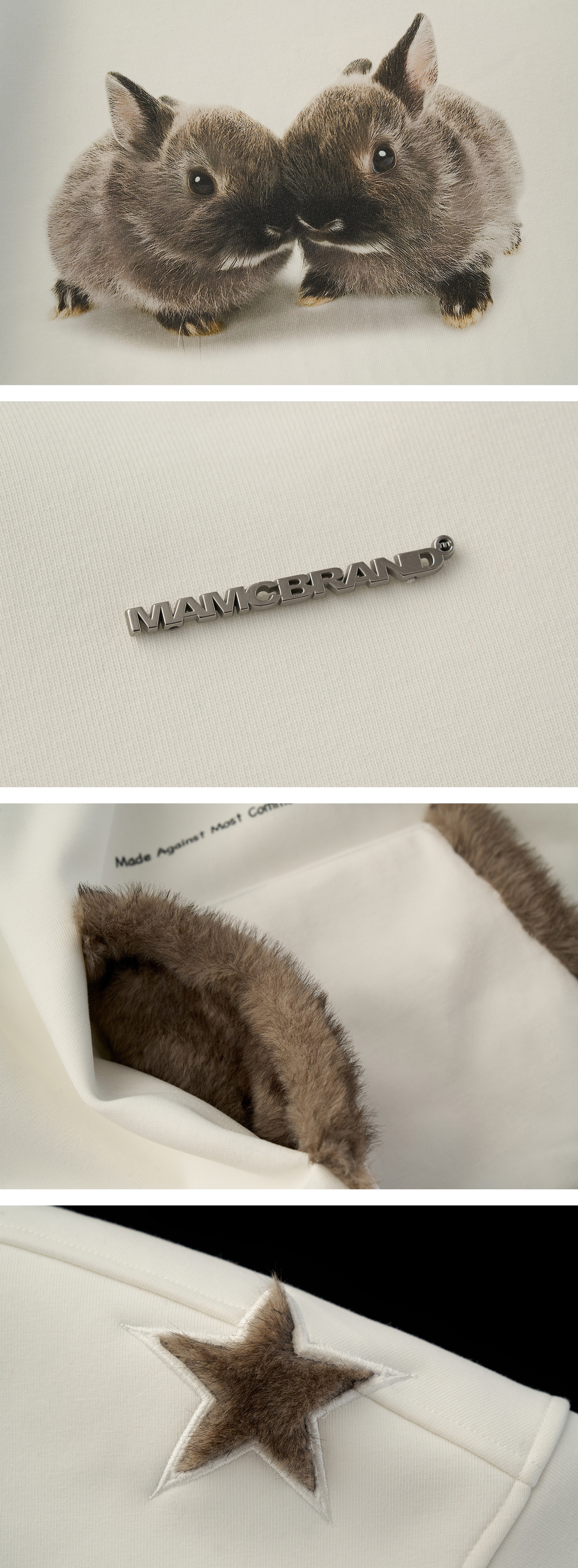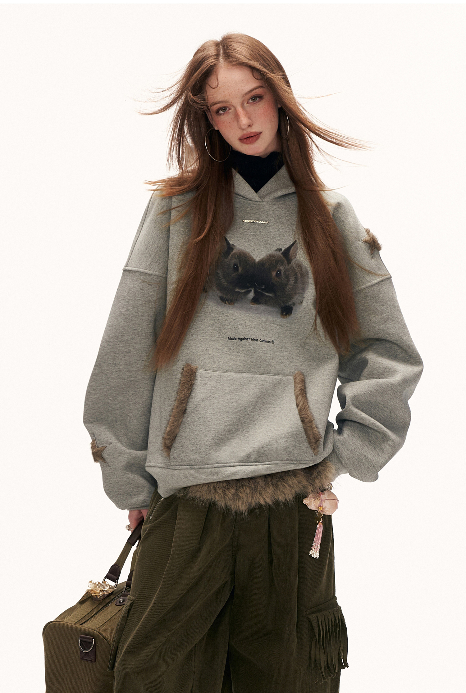 - 전면에 프린트된 버니 그래픽으로 키치하고 따뜻한 무드 연출