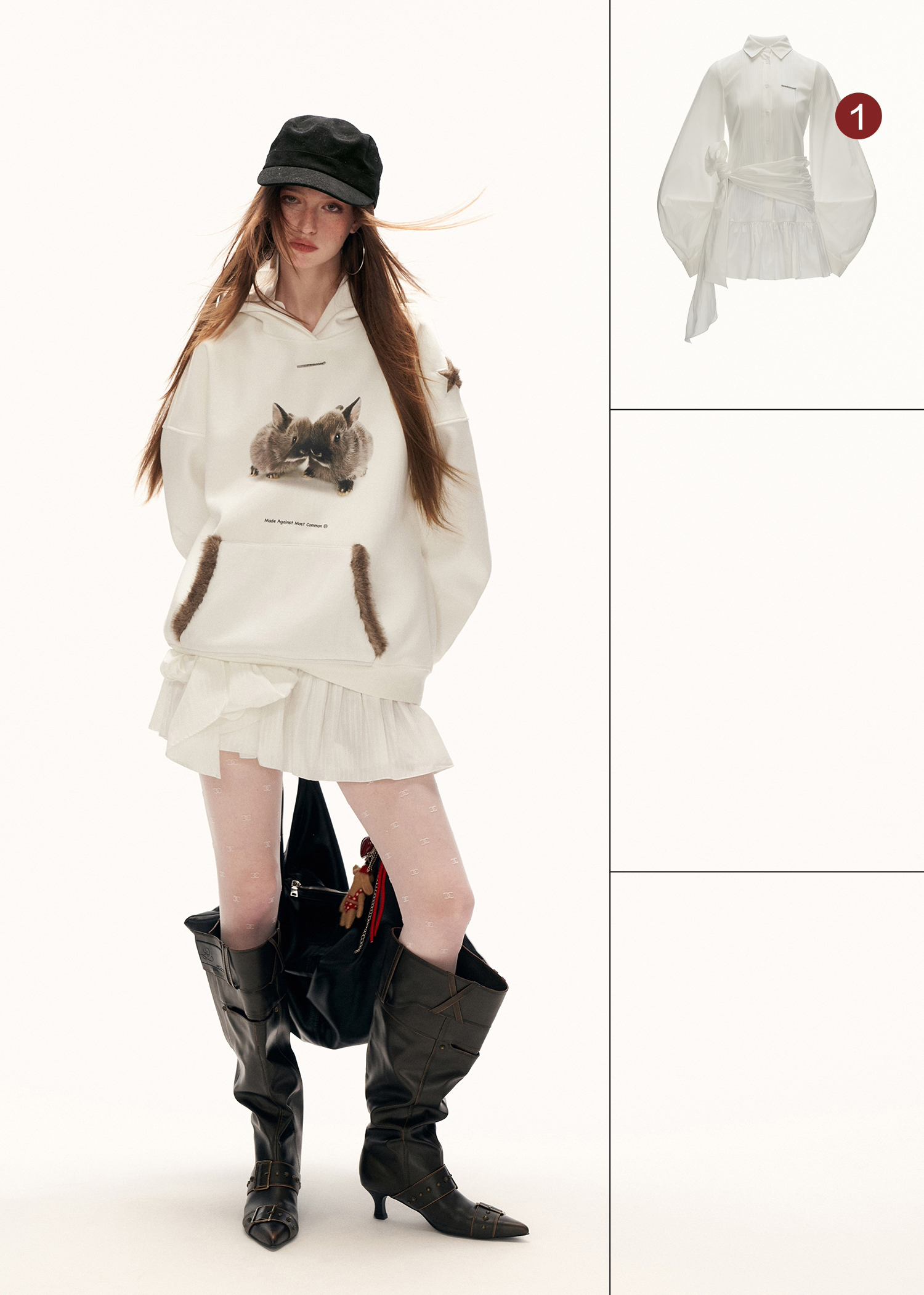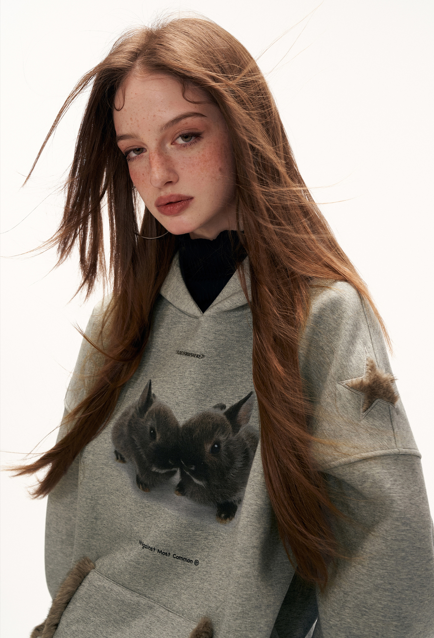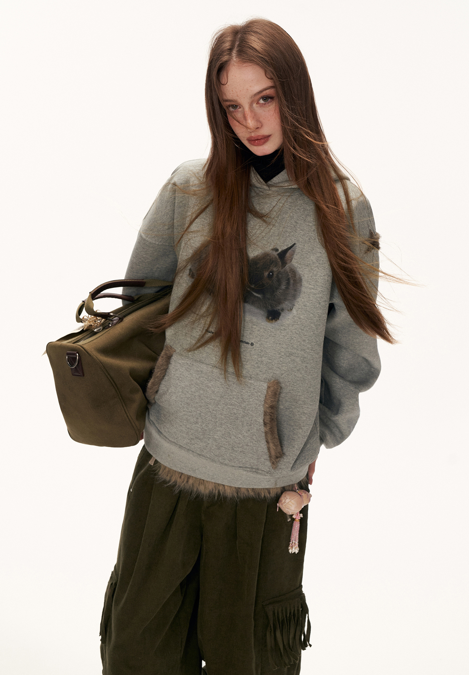 - 전면에 프린트된 버니 그래픽으로 키치하고 따뜻한 무드 연출