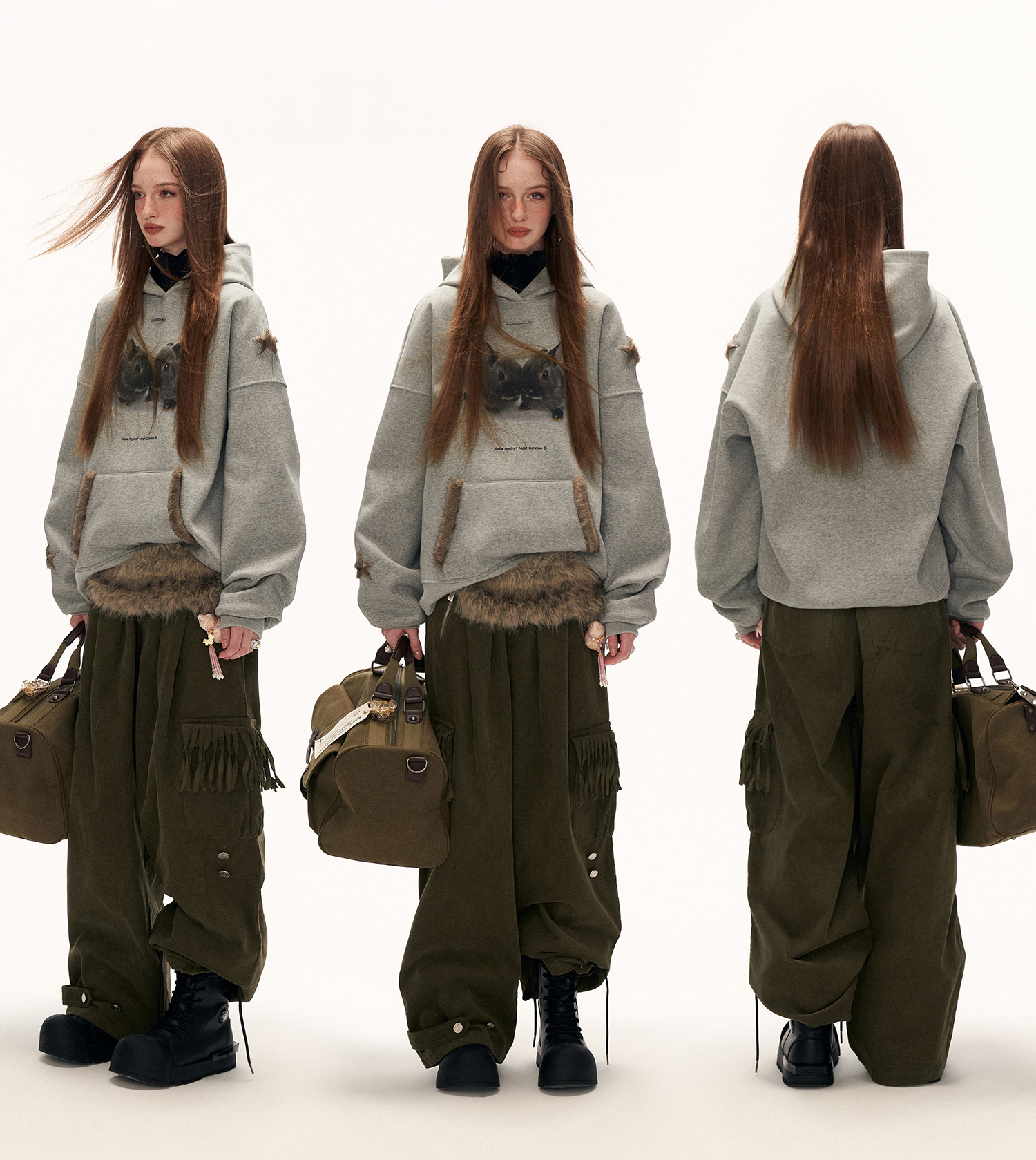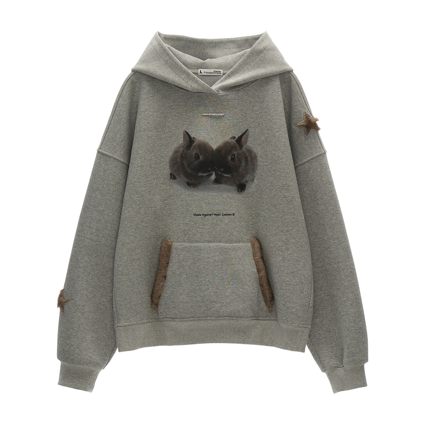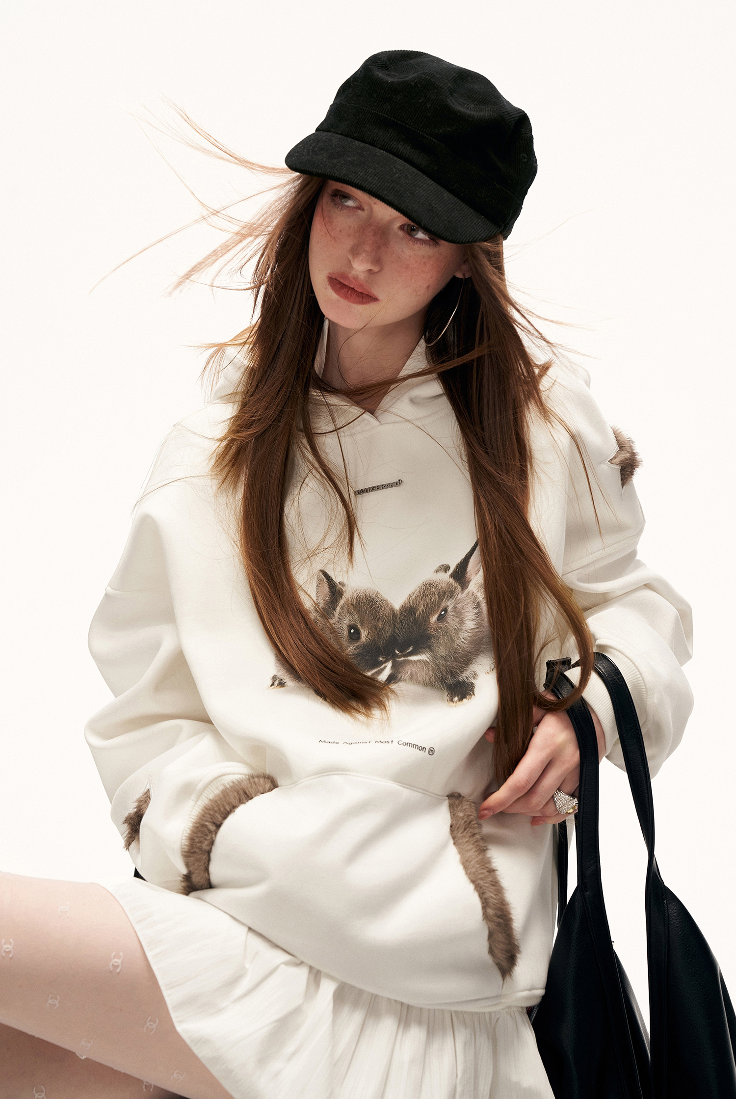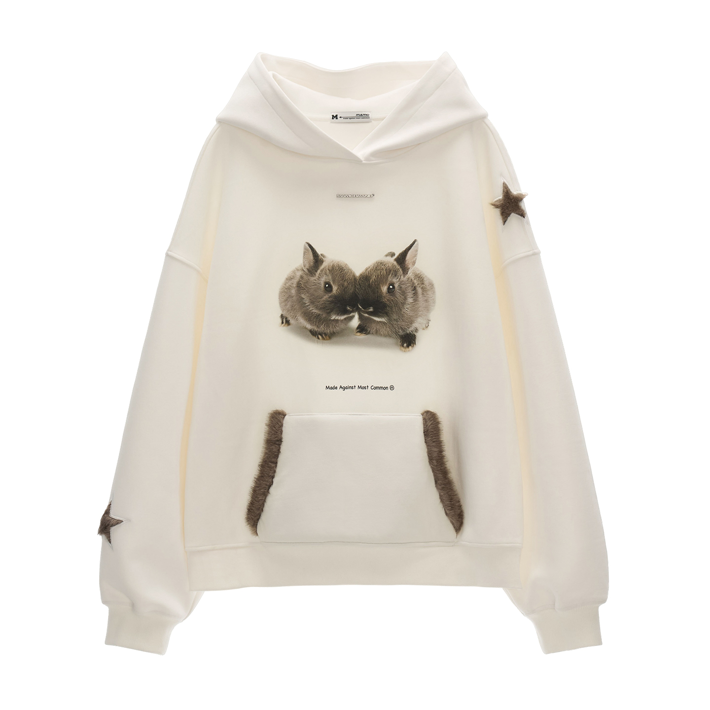 사랑스러운 버니 그래픽과 퍼 포인트 디테일로 포근함과 위트를 동시에 담아낸 오버핏 후디입니다.