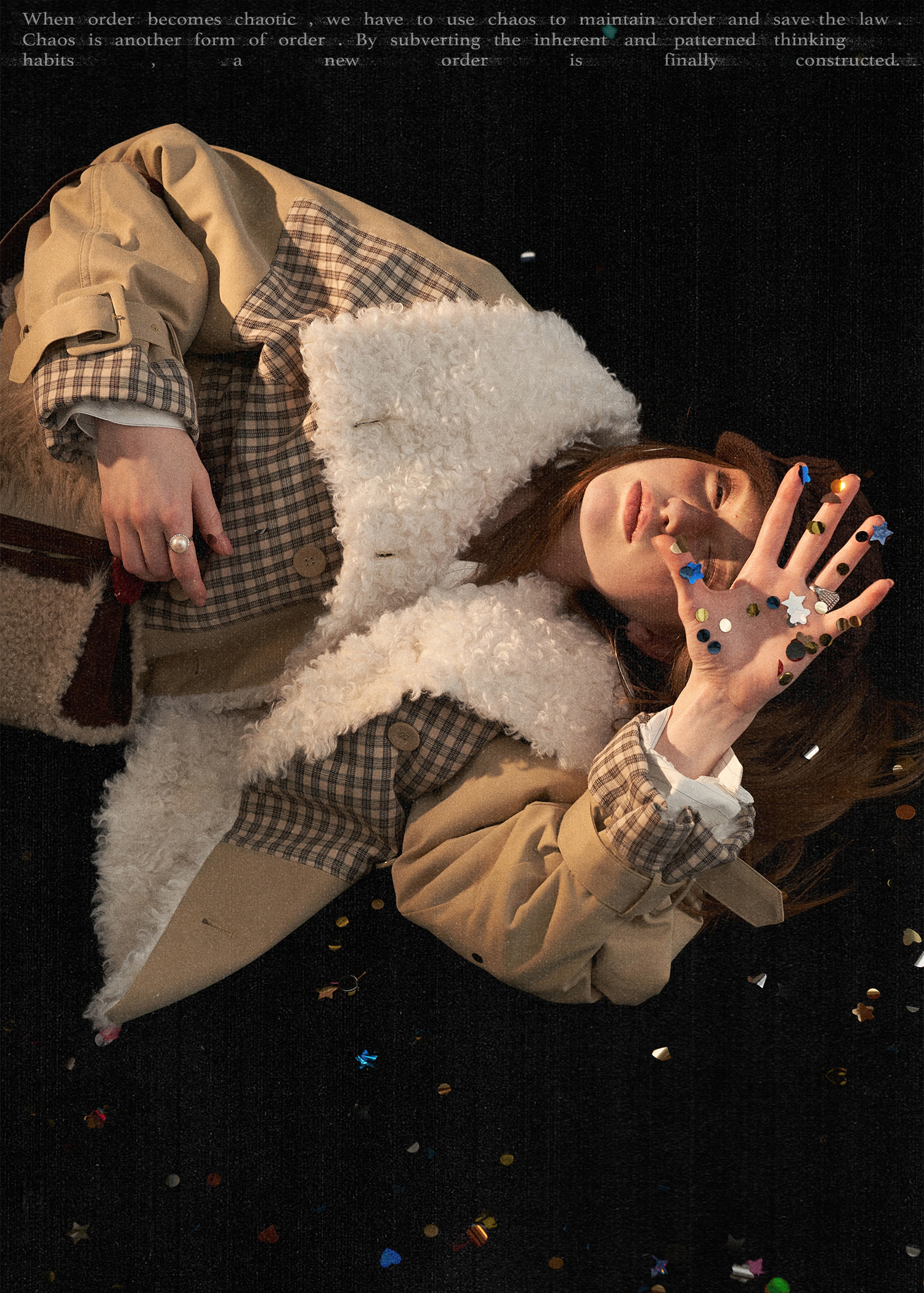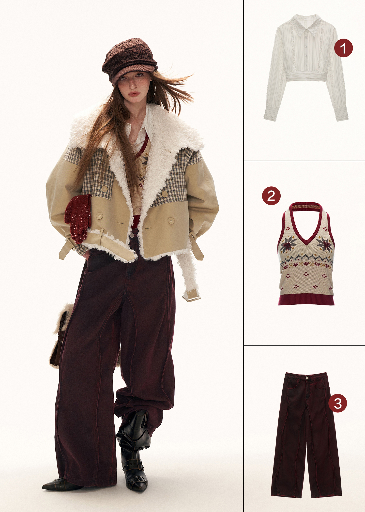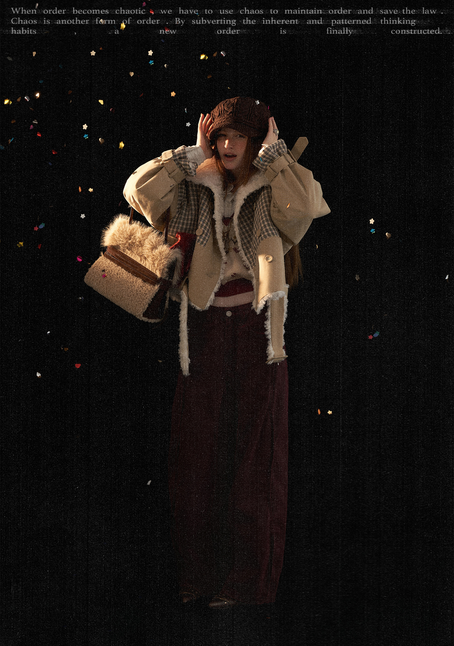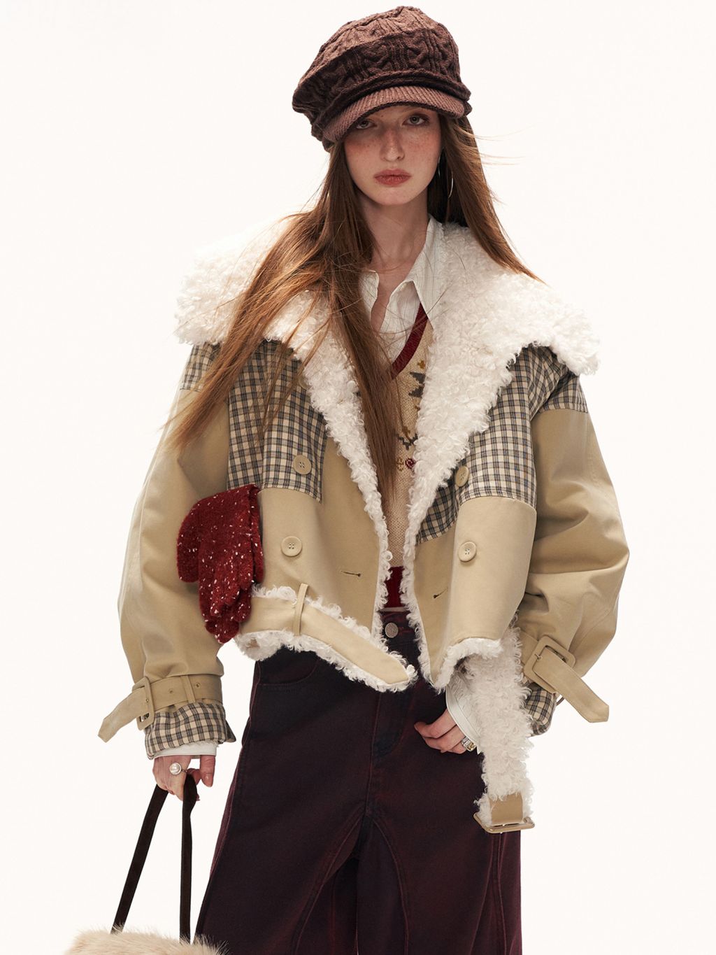 체크 패턴과 셰르파 퍼 트리밍을 믹스해 클래식한 무드에 구조적인 실루엣을 더한 벨티드 재킷입니다.
