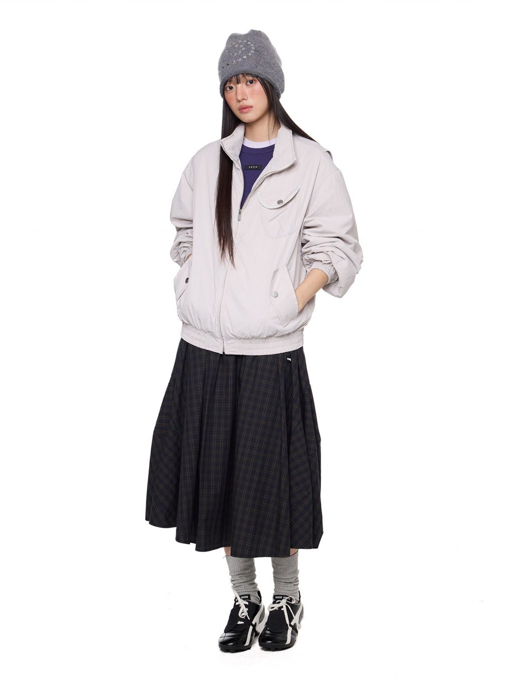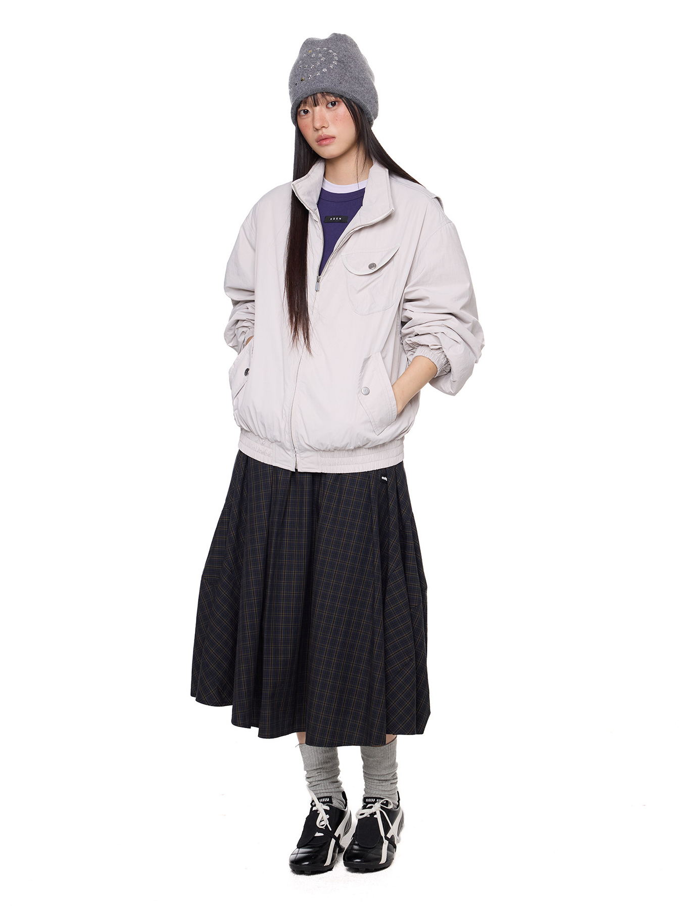 - 그레이 계열의 플래드 체크 패턴으로 클래식하면서도 차분한 무드 연출