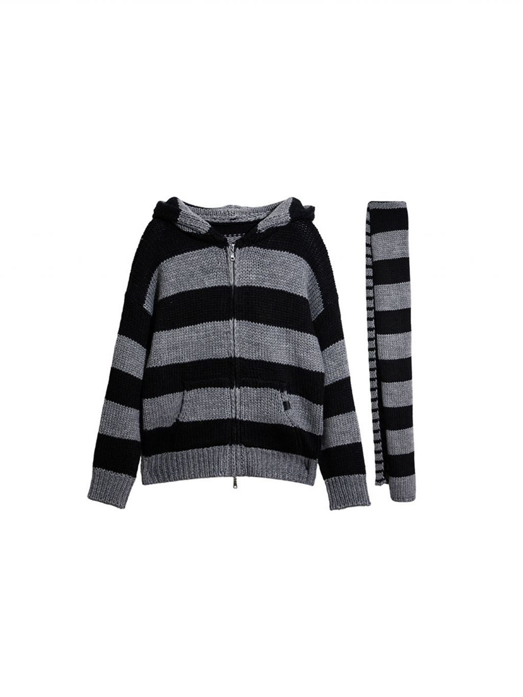 Stripe Knit Zip Hoodie with Scarf
