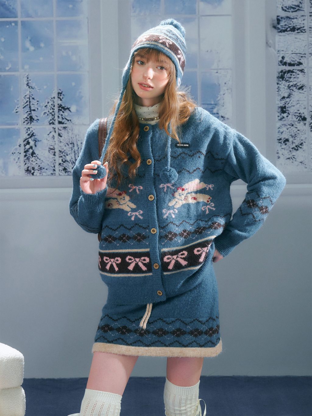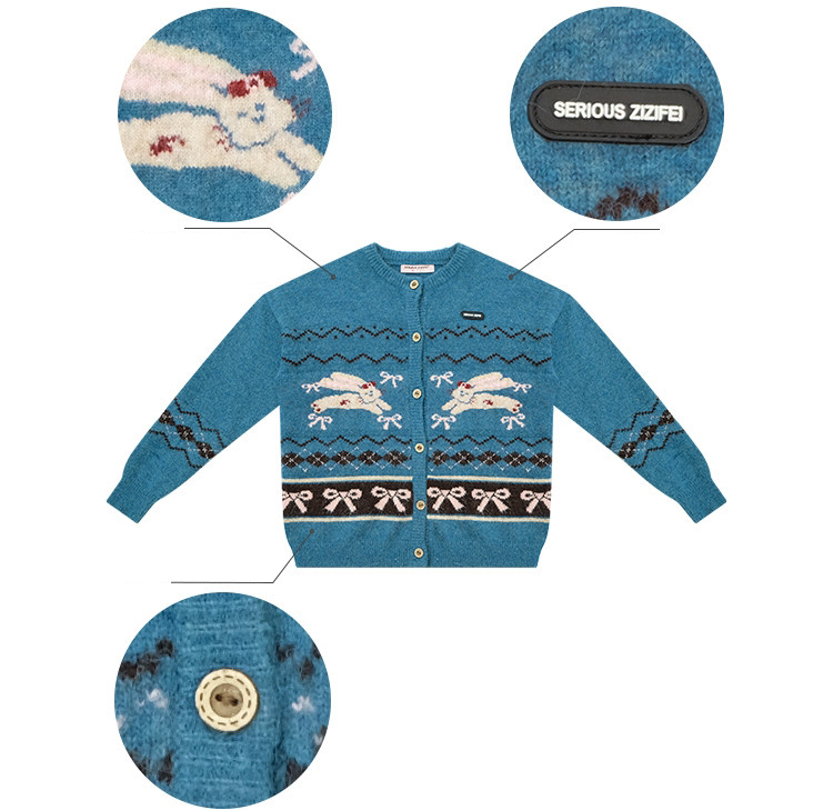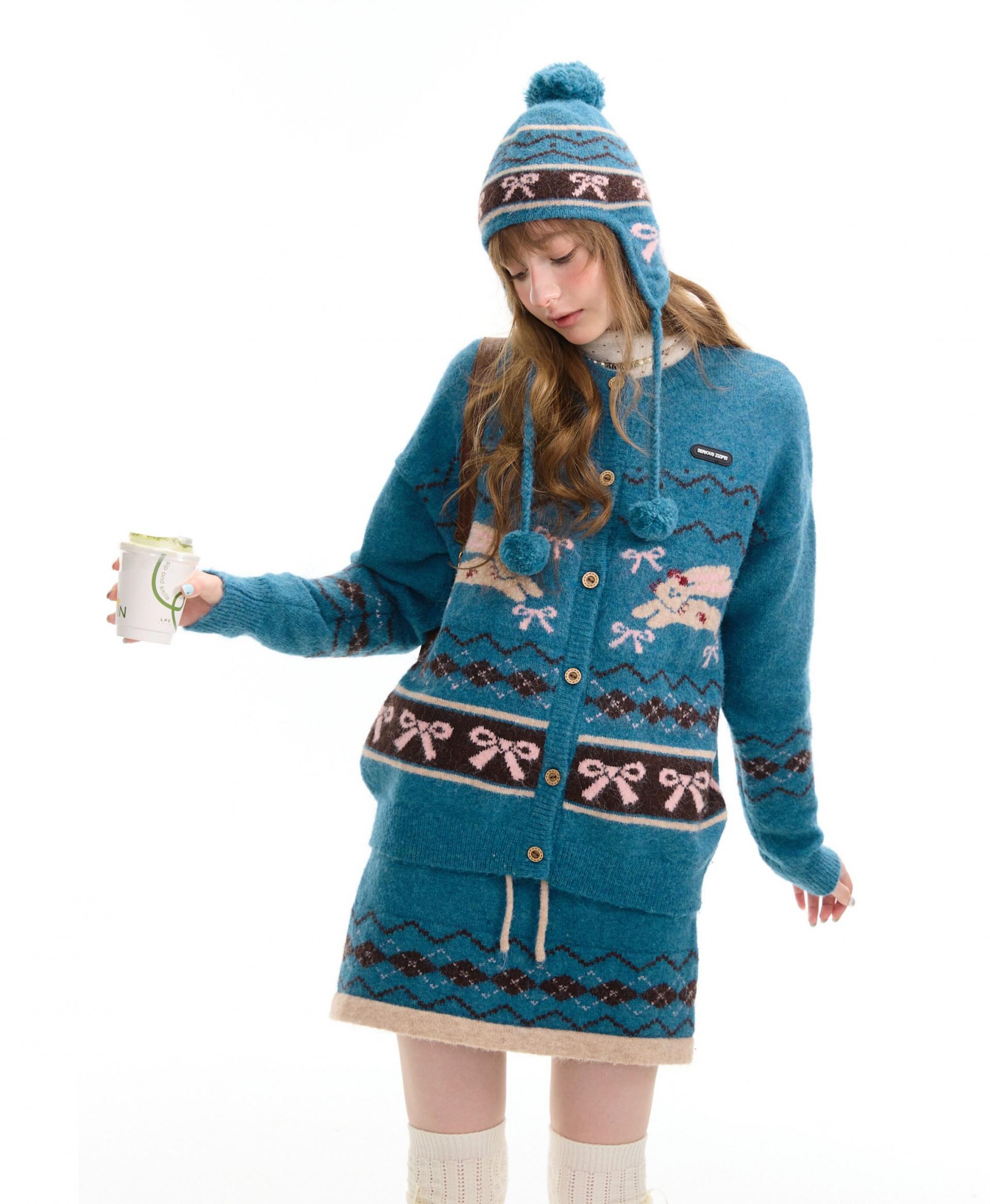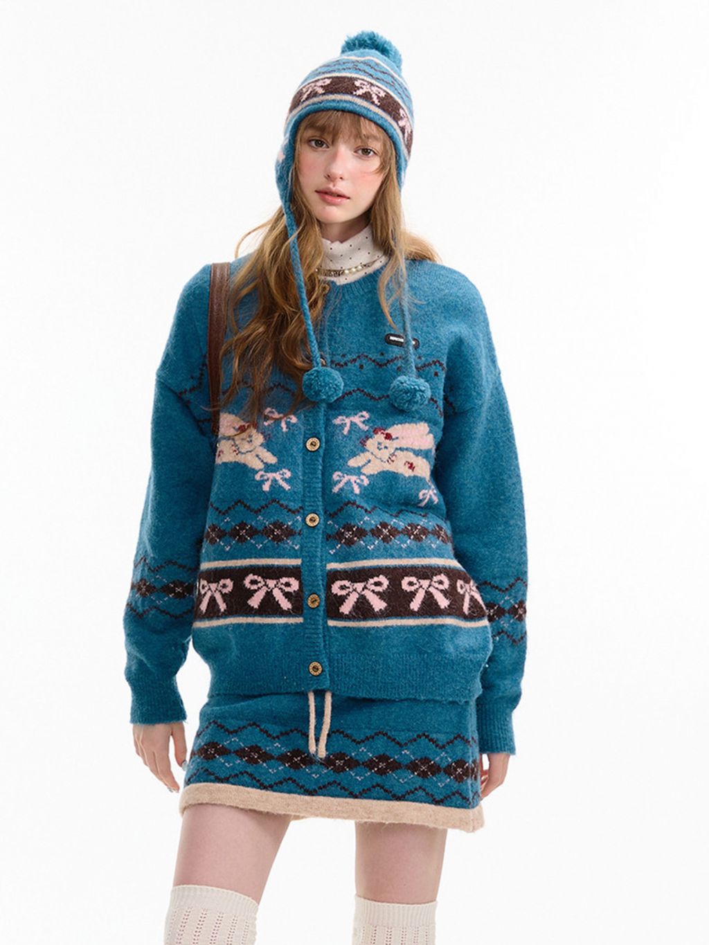 사랑스러운 버니 패턴과 페어아일 니트가 어우러져, 빈티지한 감성을 포근하게 담아낸 가디건입니다.