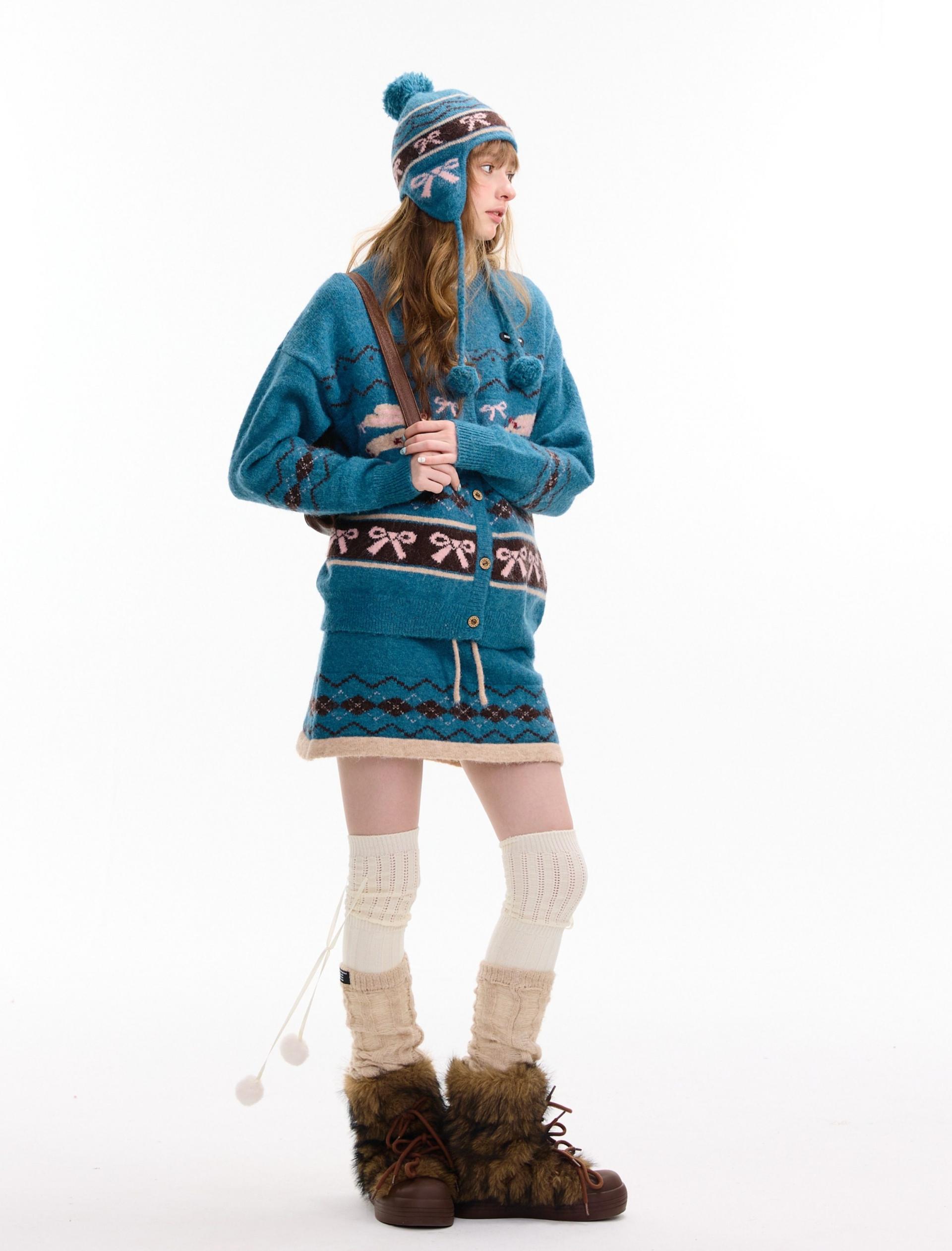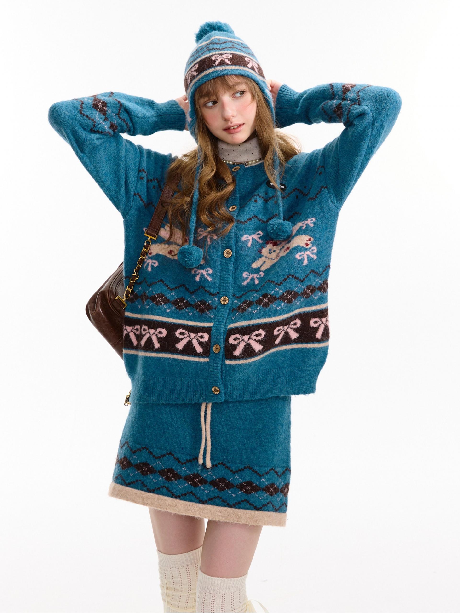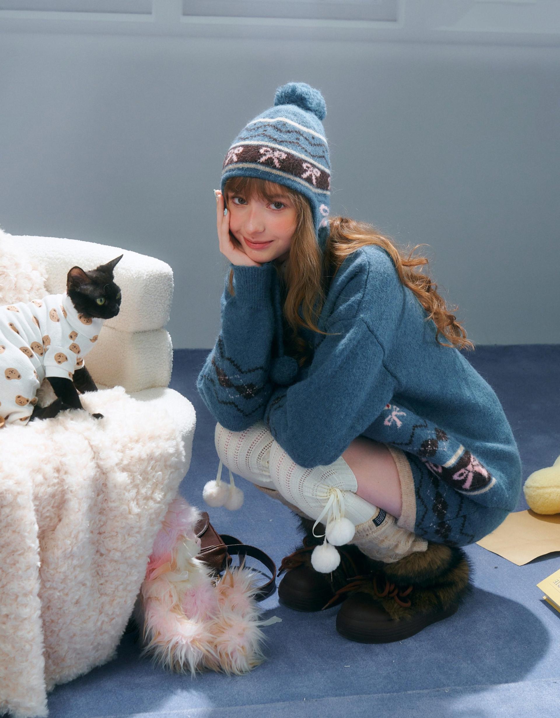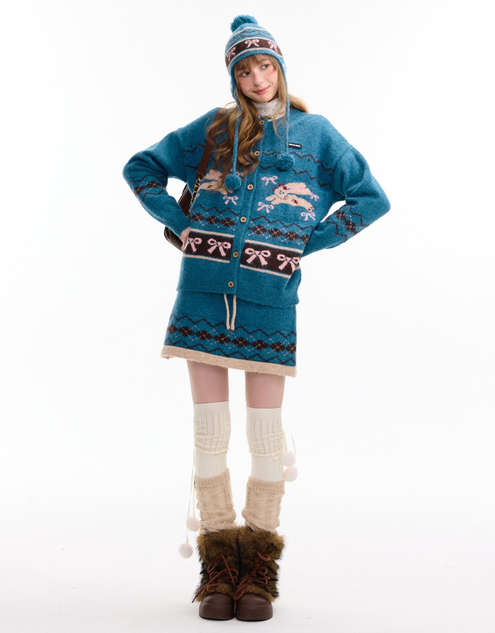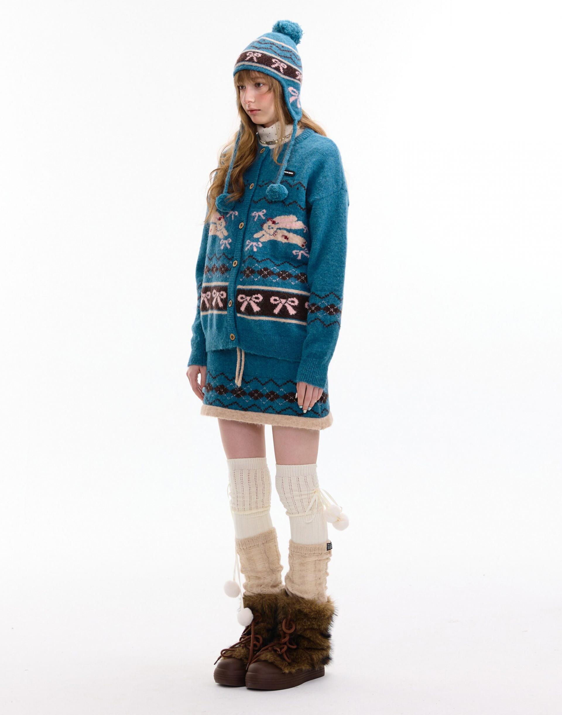 - 점프하는 버니 모티프와 페어아일 패턴으로 클래식하면서도 키치한 포인트