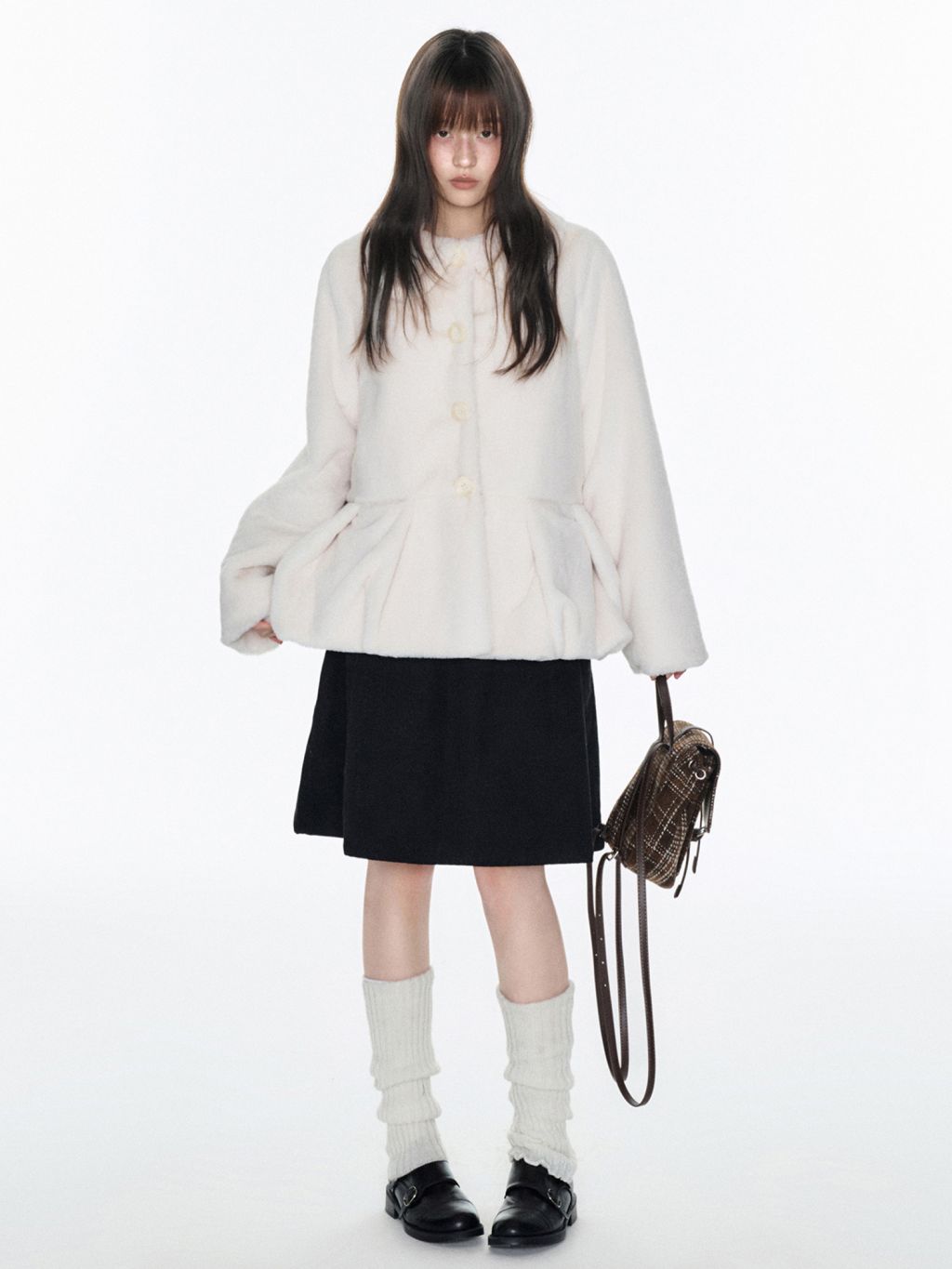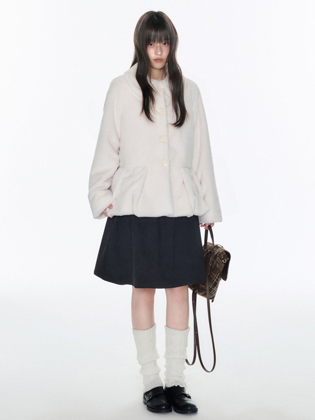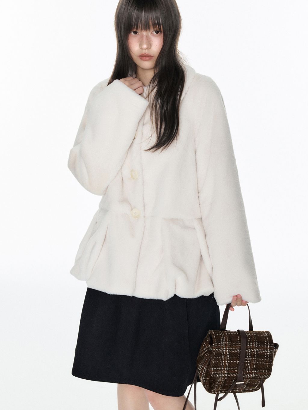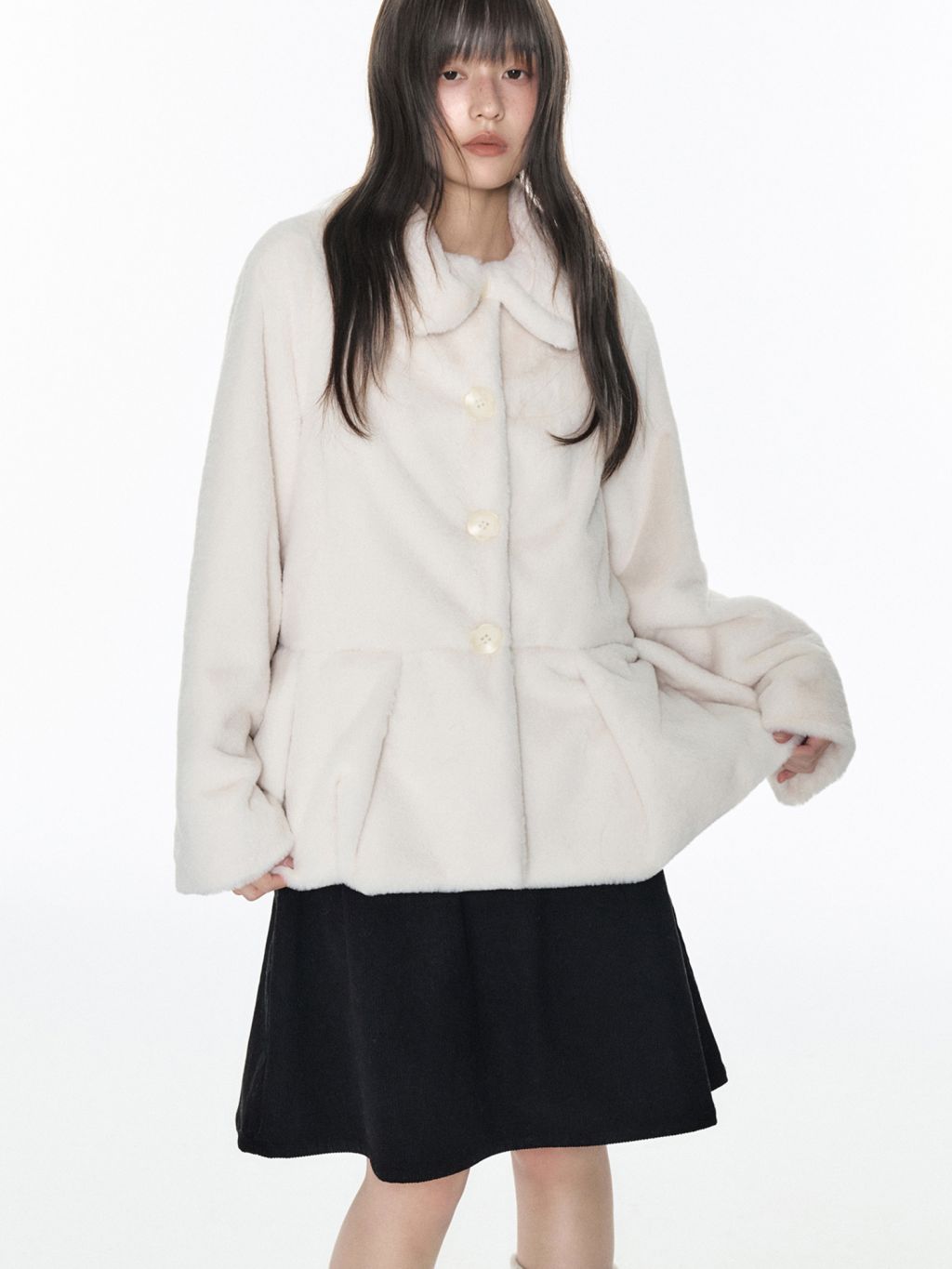 포근한 밀크 컬러의 퍼 텍스처로 부드러운 실루엣과 사랑스러운 무드를 완성한 퍼 재킷입니다.