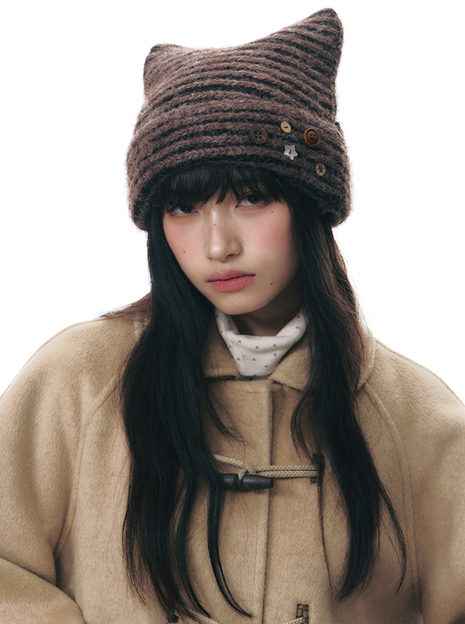 Button Cat Ear Beanie