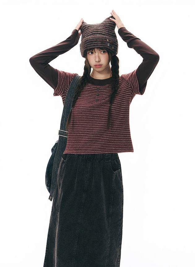 - 스트라이프 니트 조직으로 캐주얼하면서도 빈티지한 무드