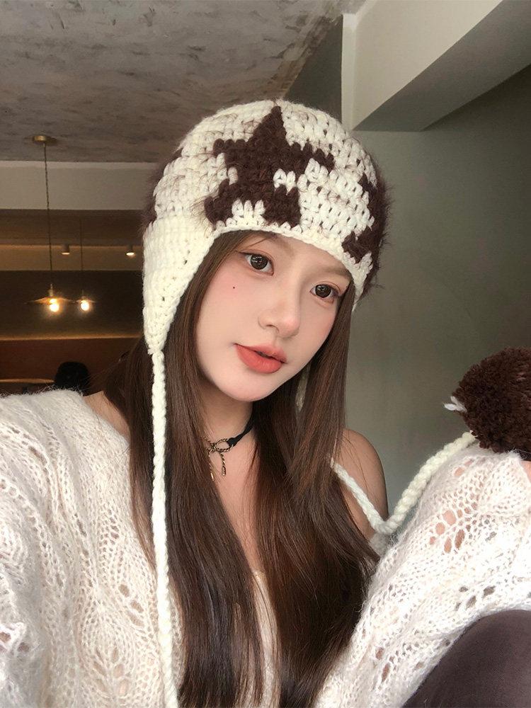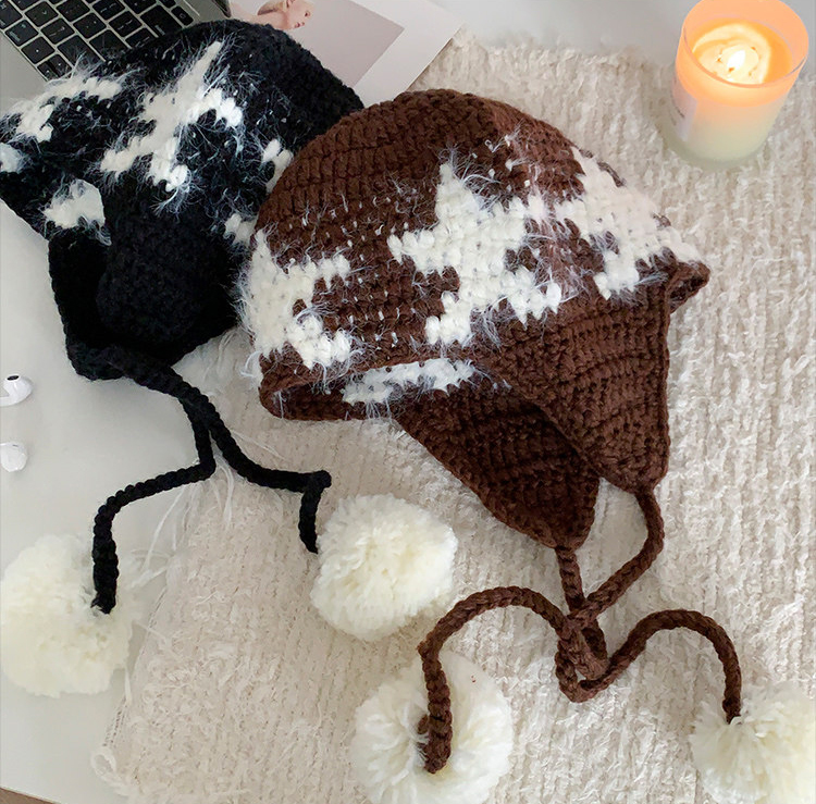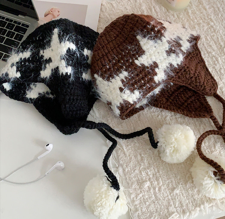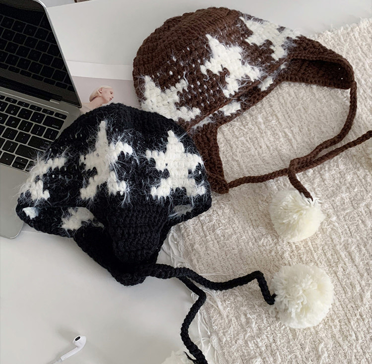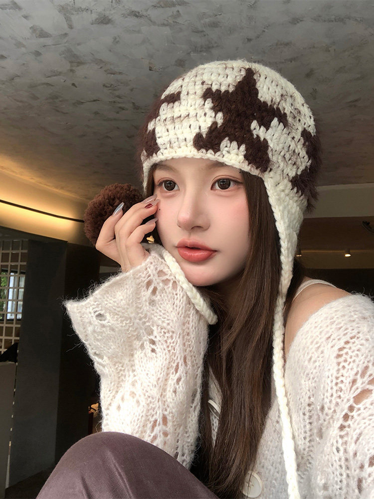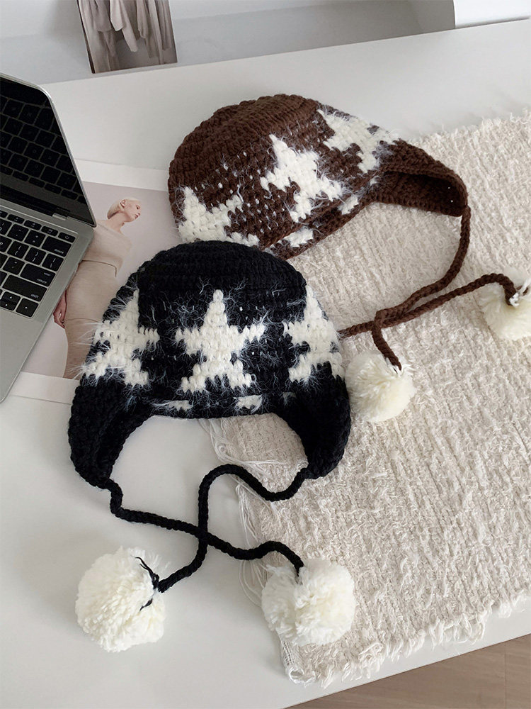 빈티지 스타 패턴과 이어플랩 디테일로 포인트를 더한 핸드메이드 무드의 니트 햇입니다.