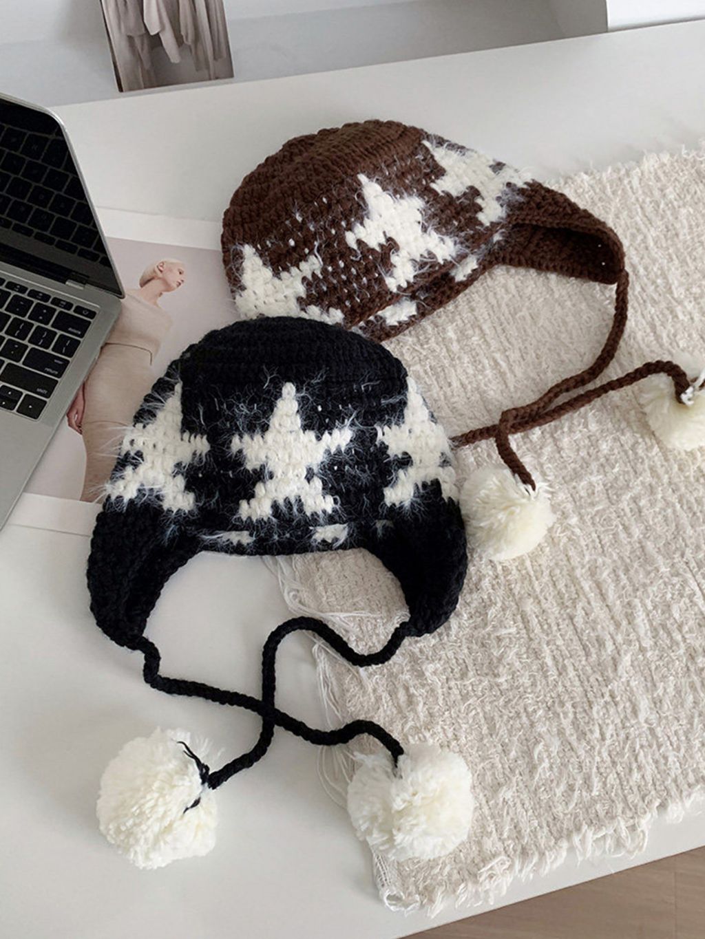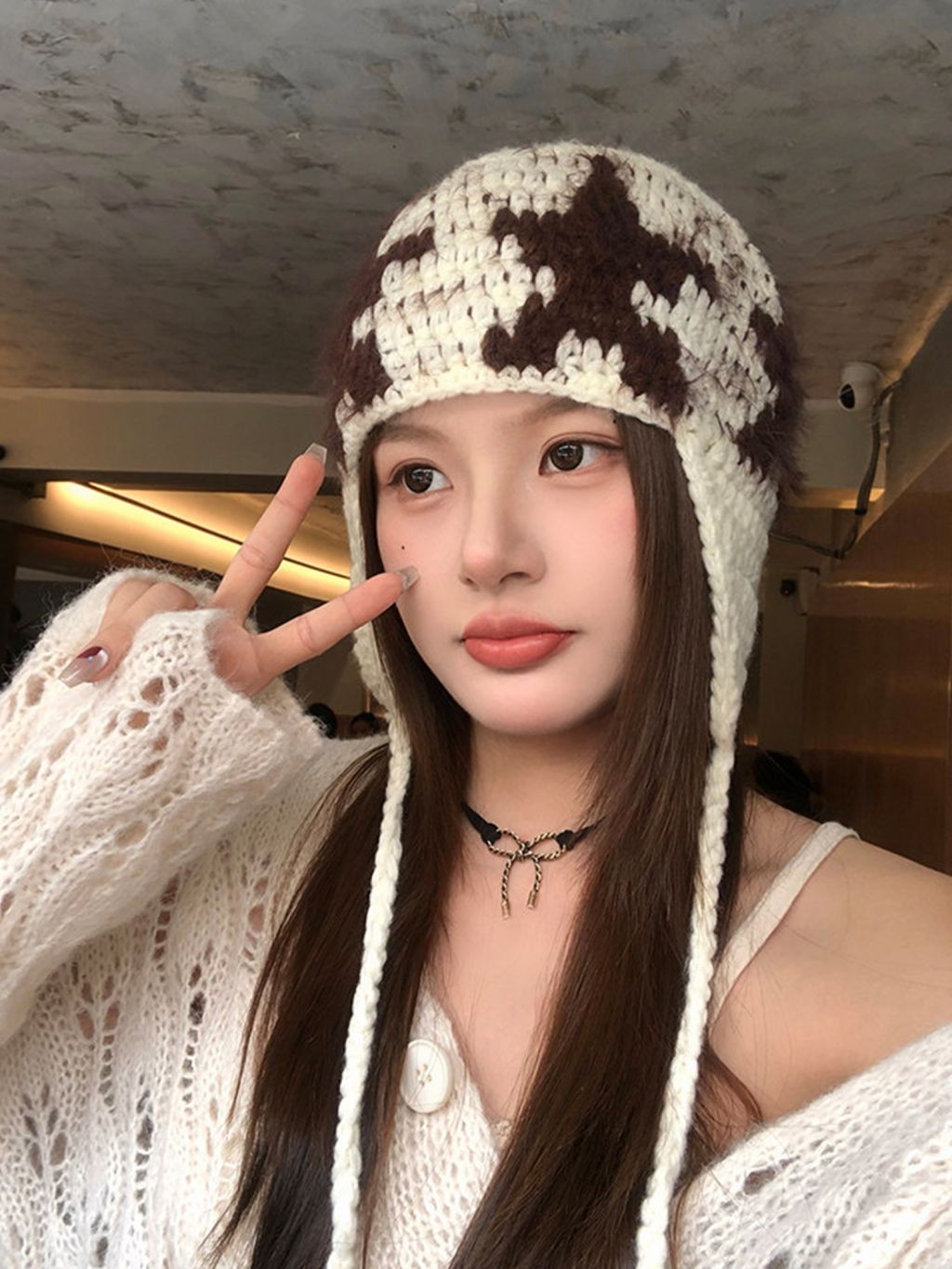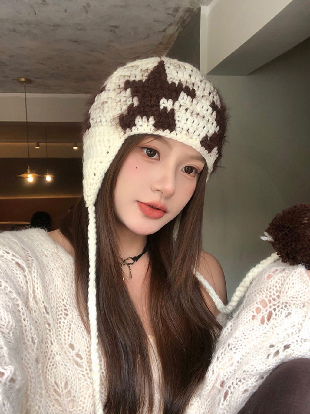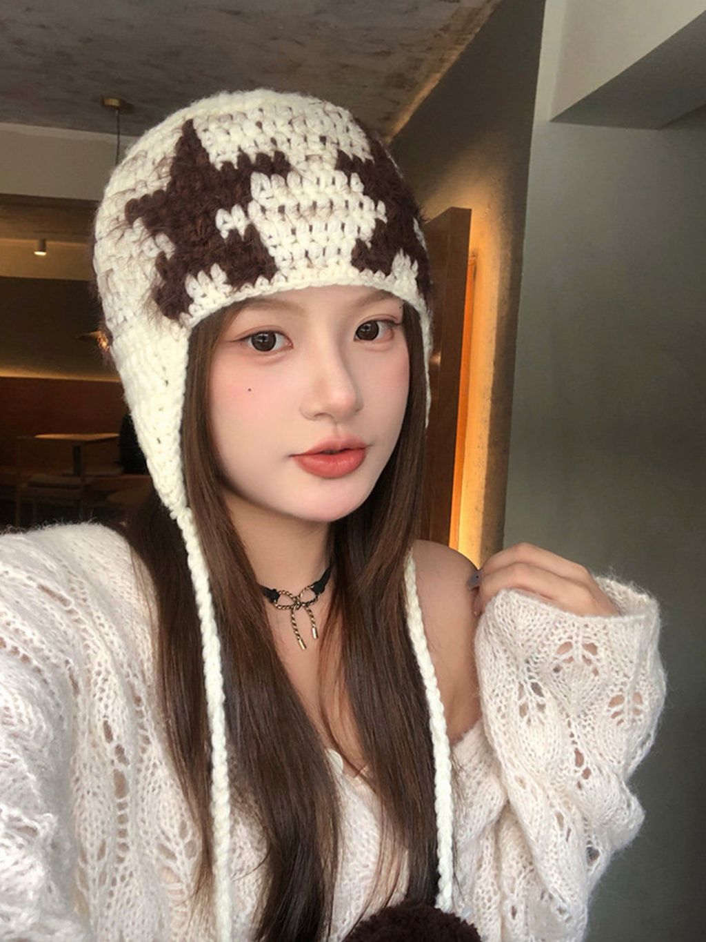빈티지 스타 패턴과 이어플랩 디테일로 포인트를 더한 핸드메이드 무드의 니트 햇입니다.
