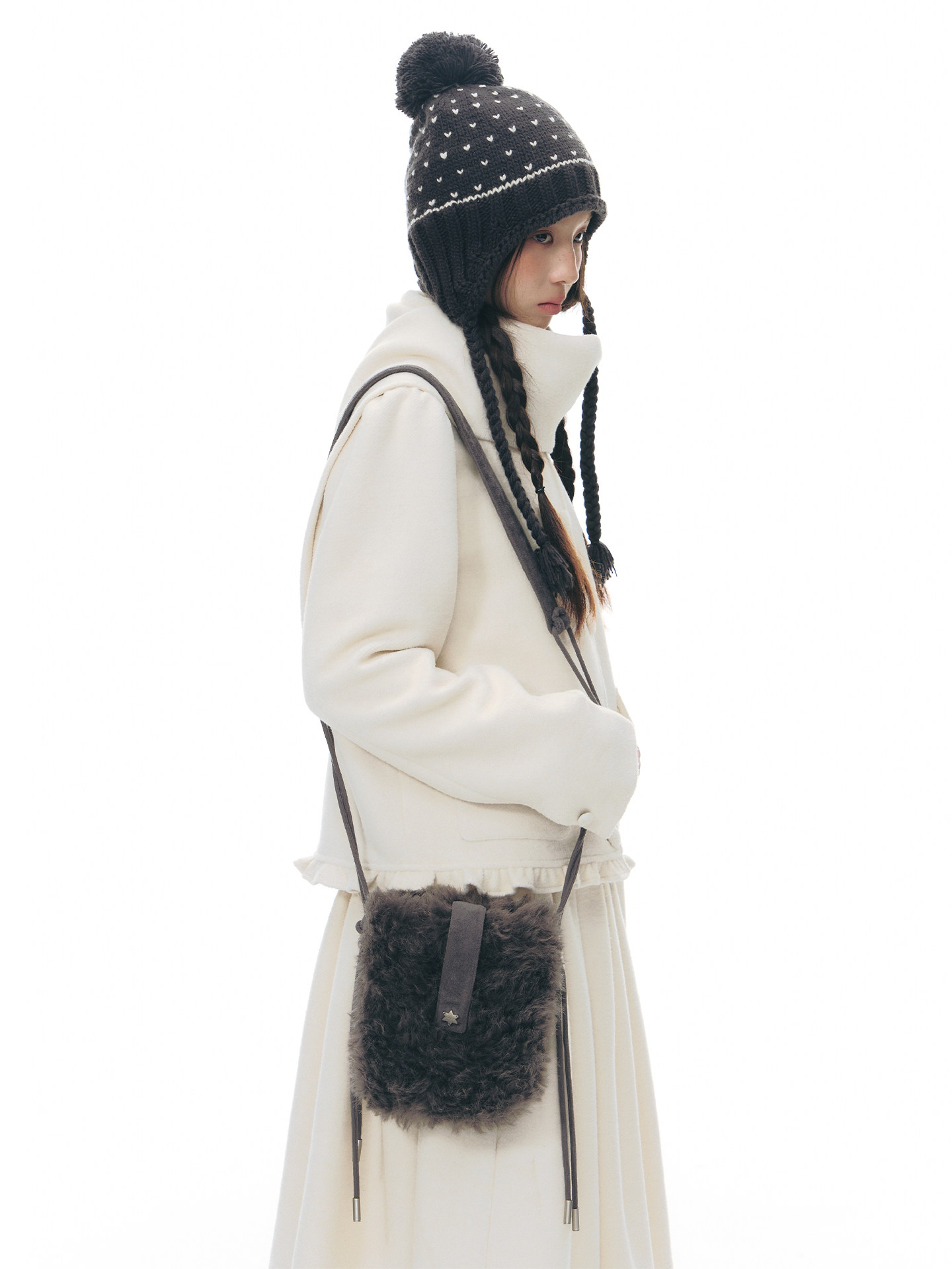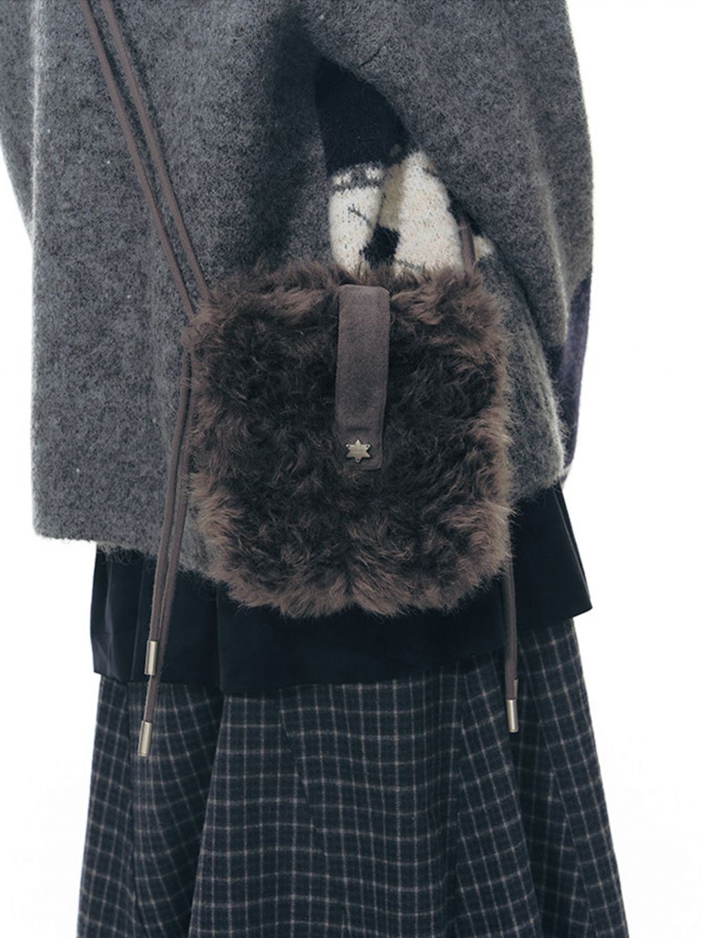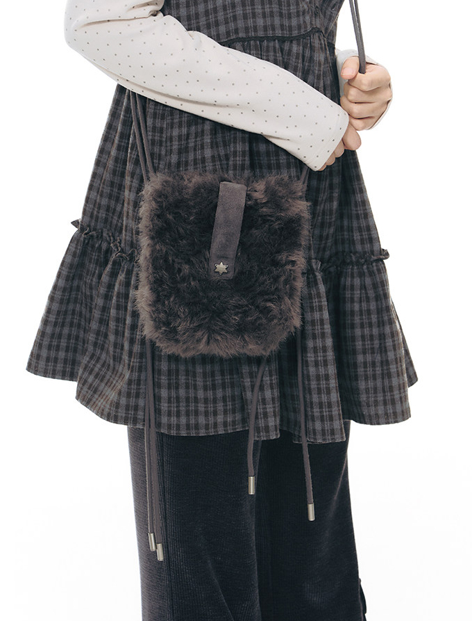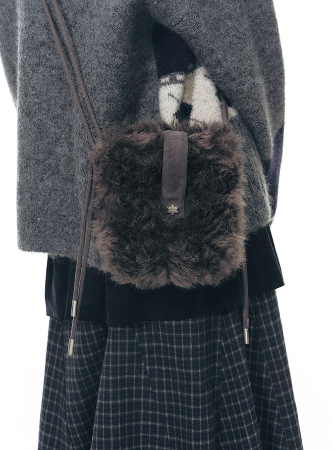 부드러운 퍼 텍스처와 미니멀한 실루엣으로 겨울 스타일에 포인트를 더하는 미니 숄더 백입니다.