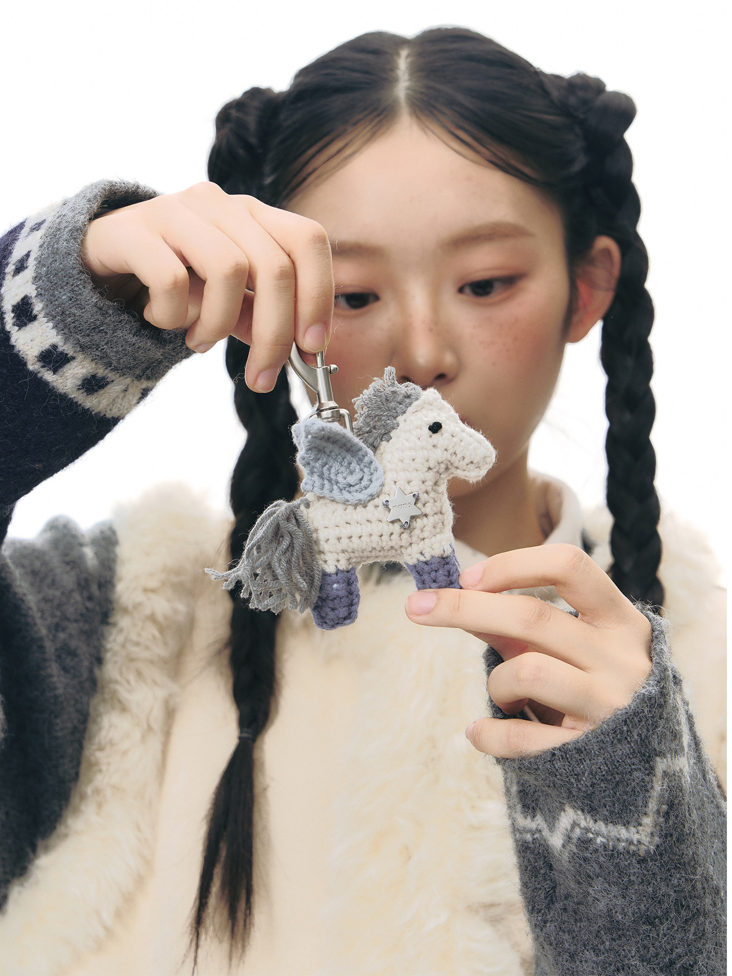 포근한 니트 질감으로 완성한 작은 포니 모티브의 감각적인 키링 아이템입니다.