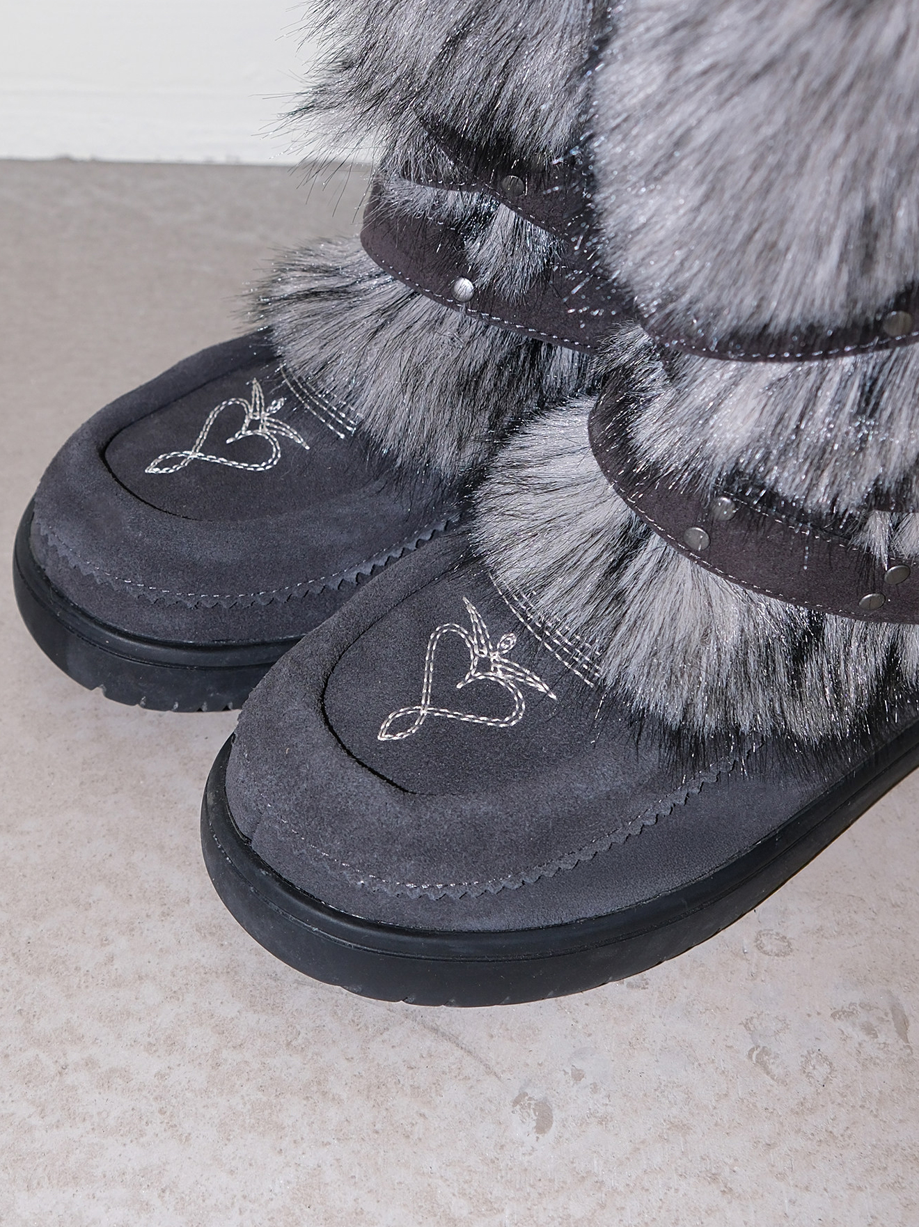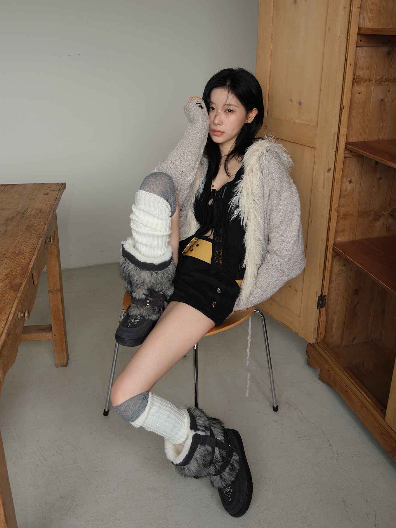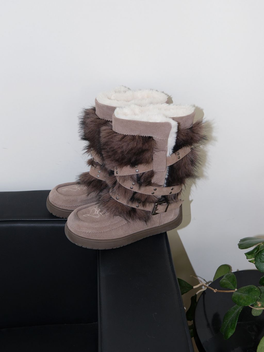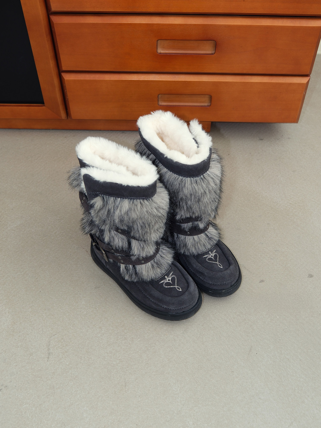 풍성한 퍼 디테일과 스트랩 포인트로 트라이벌 무드를 완성하는 퍼 부츠입니다.