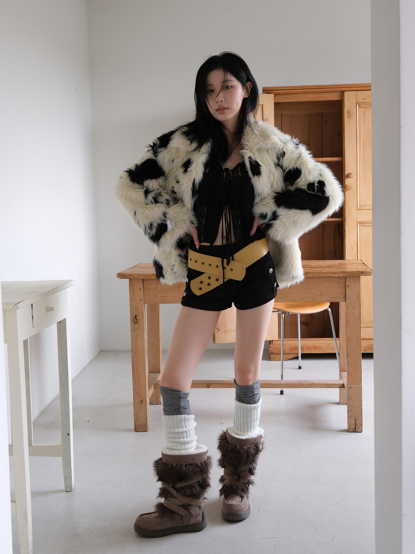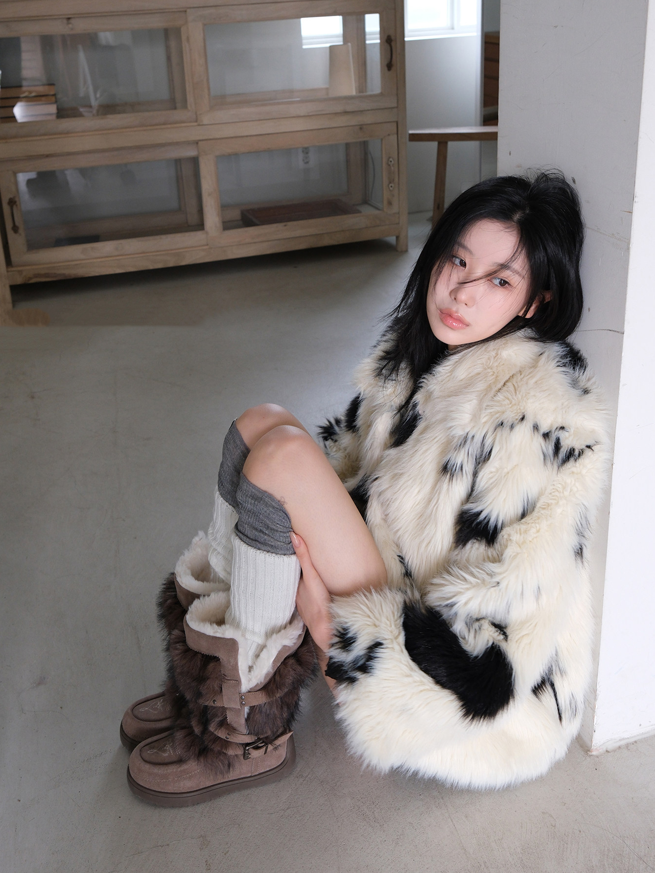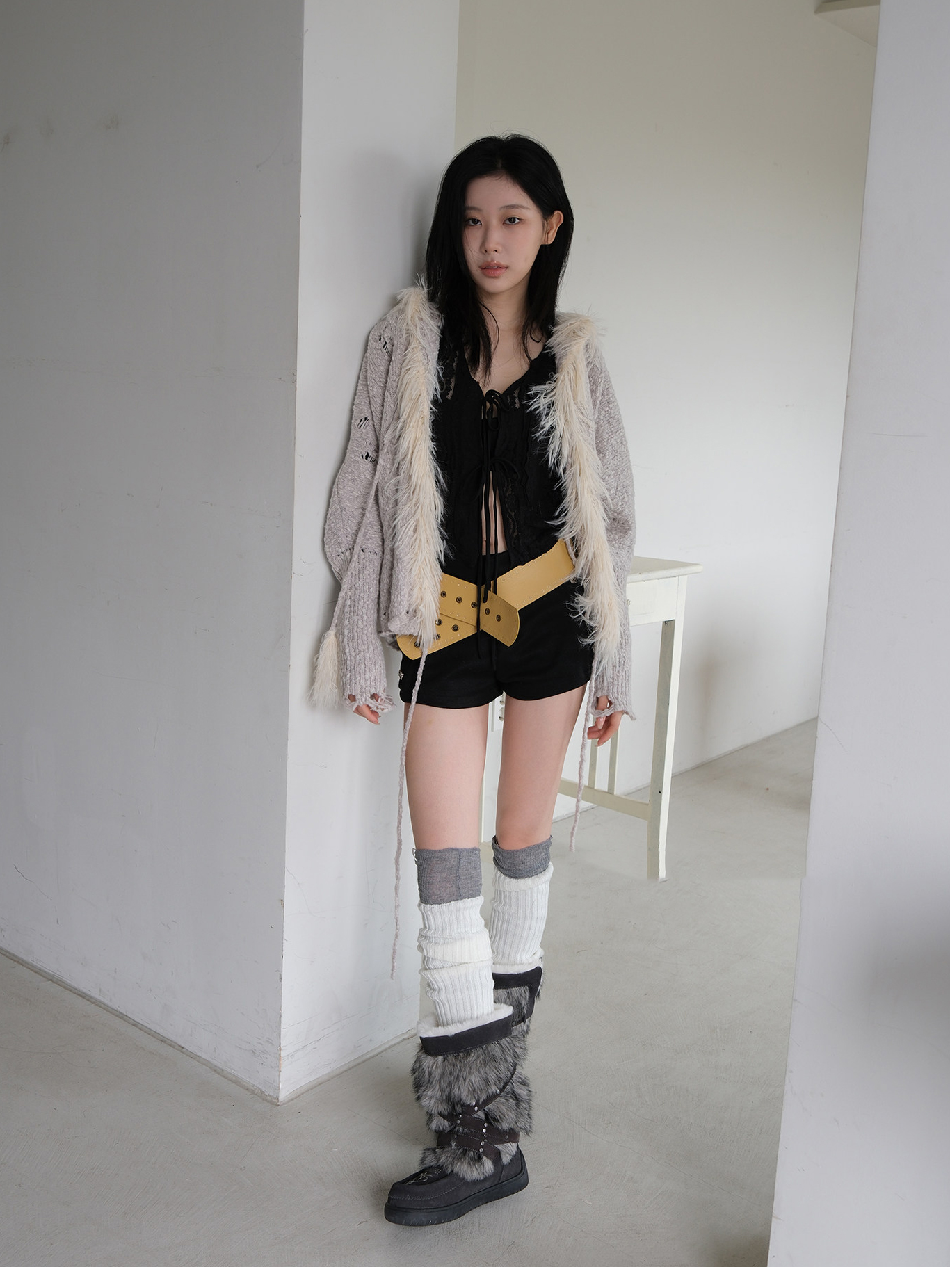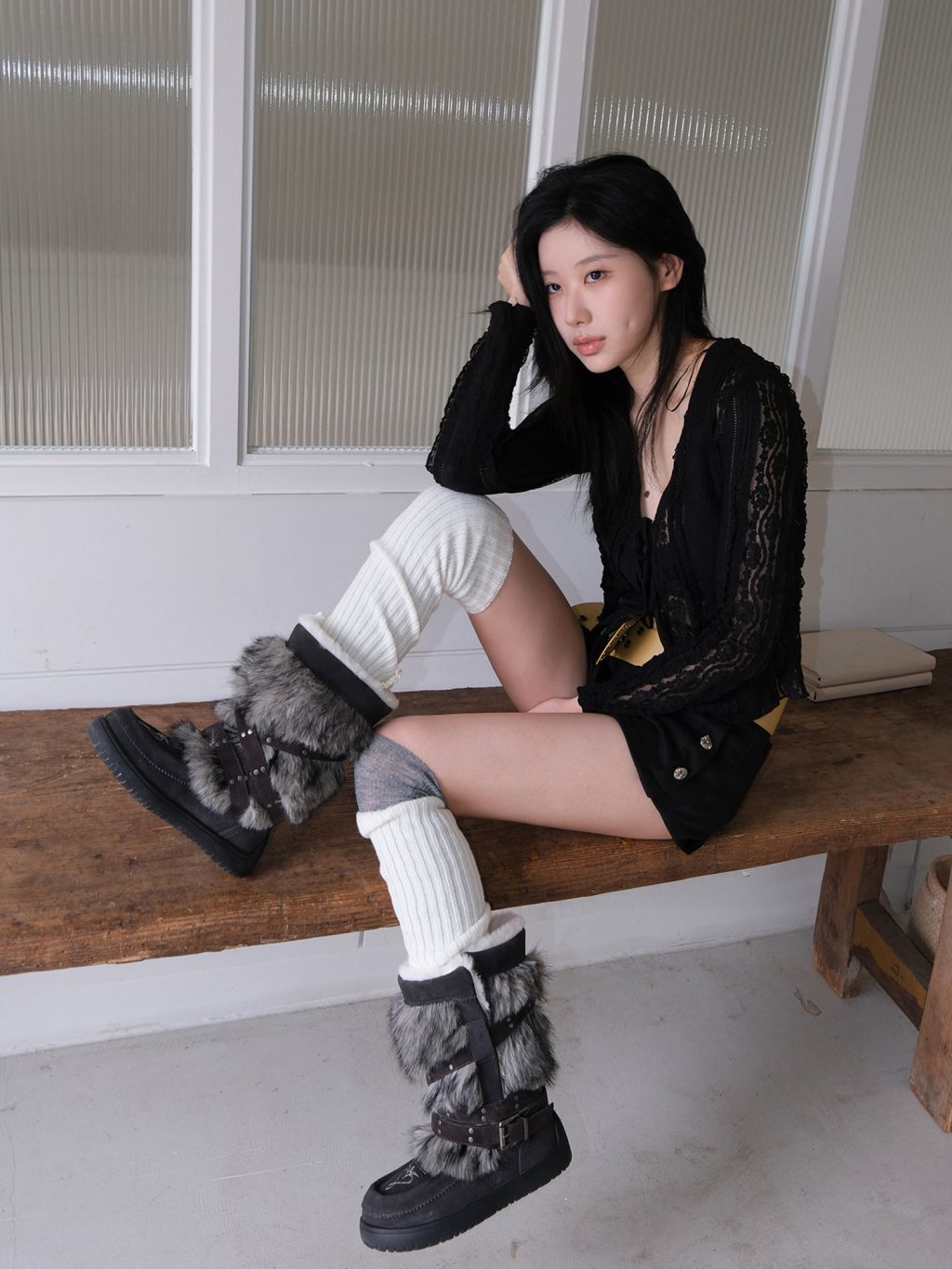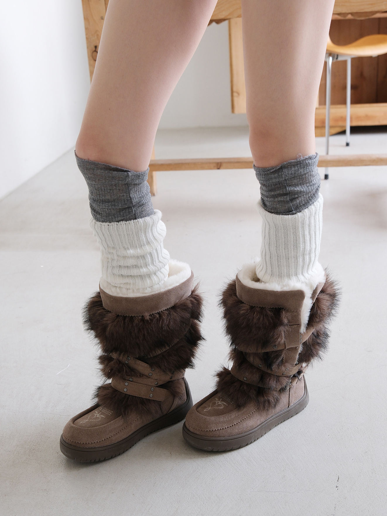 풍성한 퍼 디테일과 스트랩 포인트로 트라이벌 무드를 완성하는 퍼 부츠입니다.