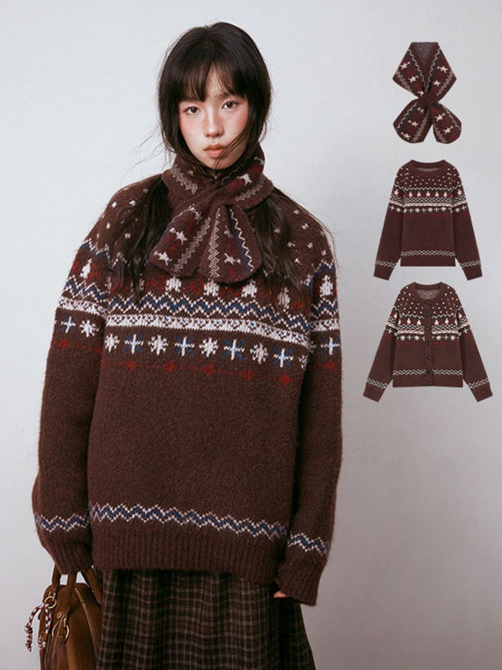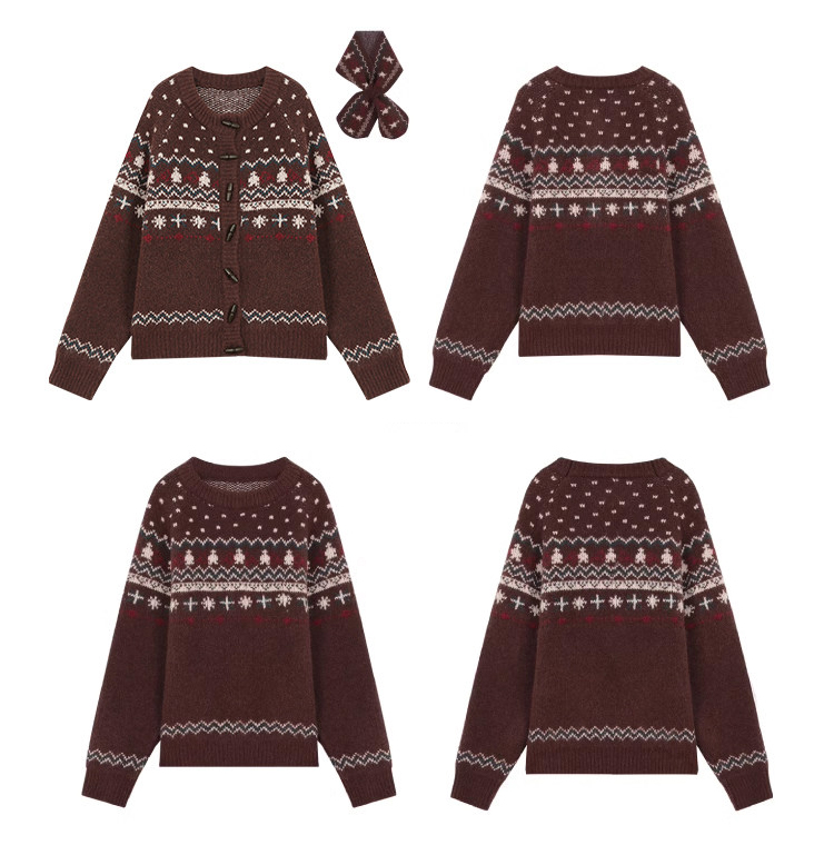 Nomad Fair Isle Knit Trio (Cardigan, Sweater & Scarf : Sold Separately)