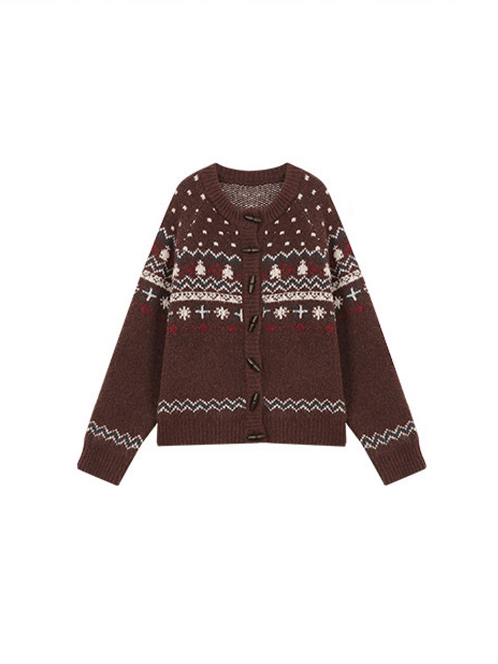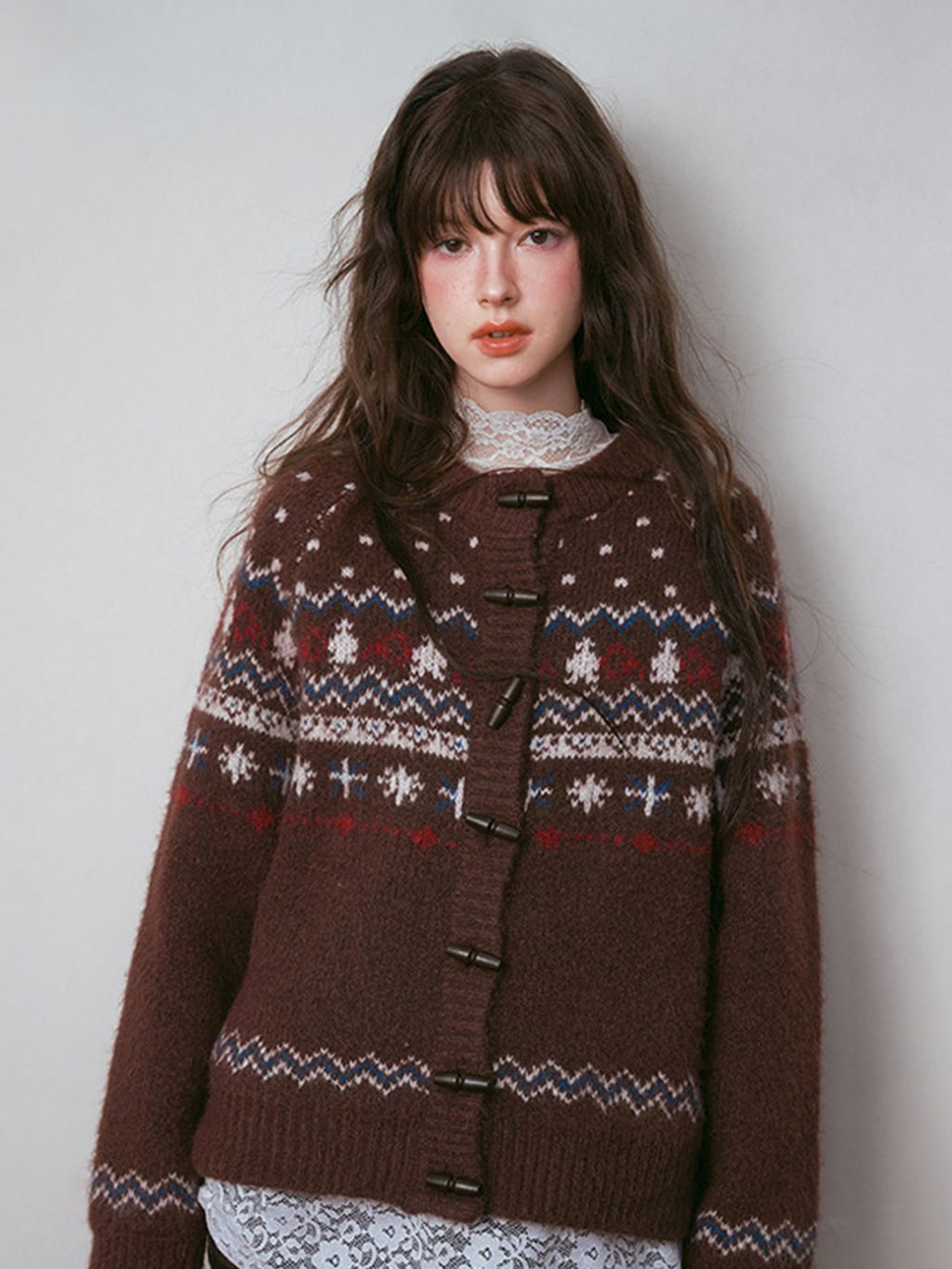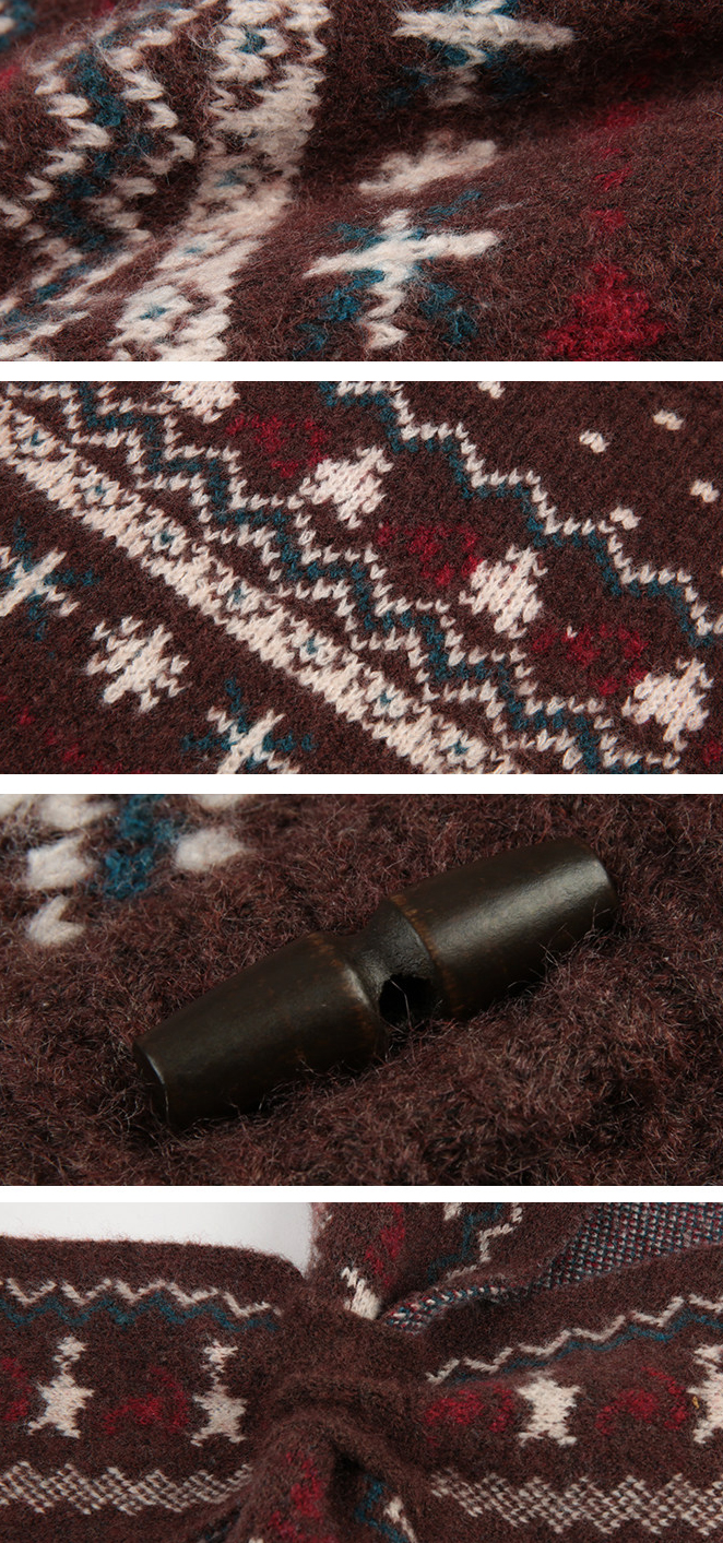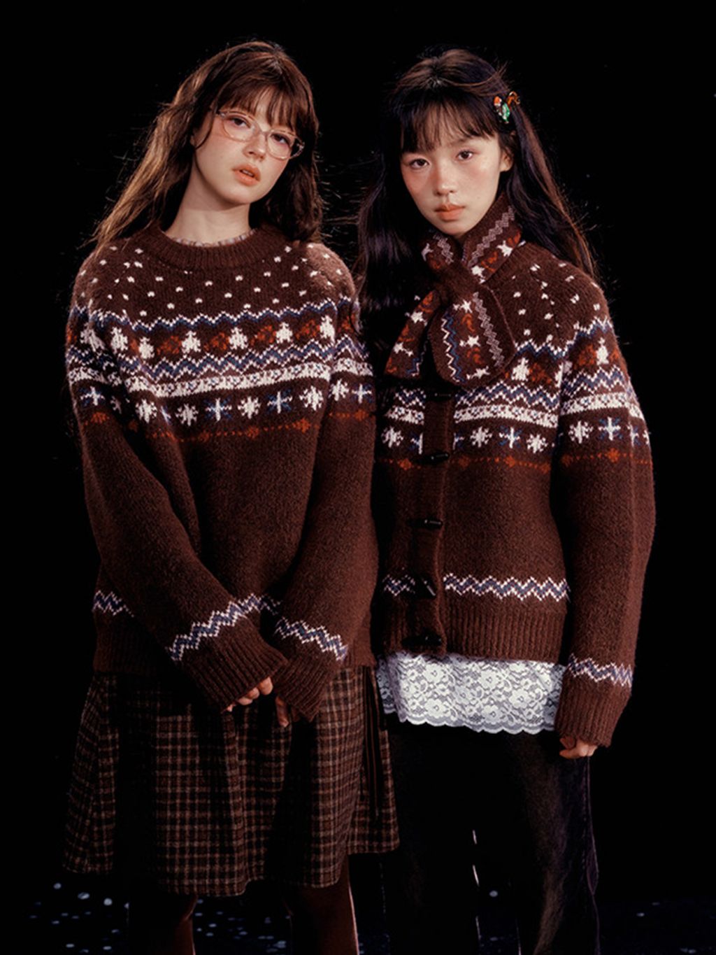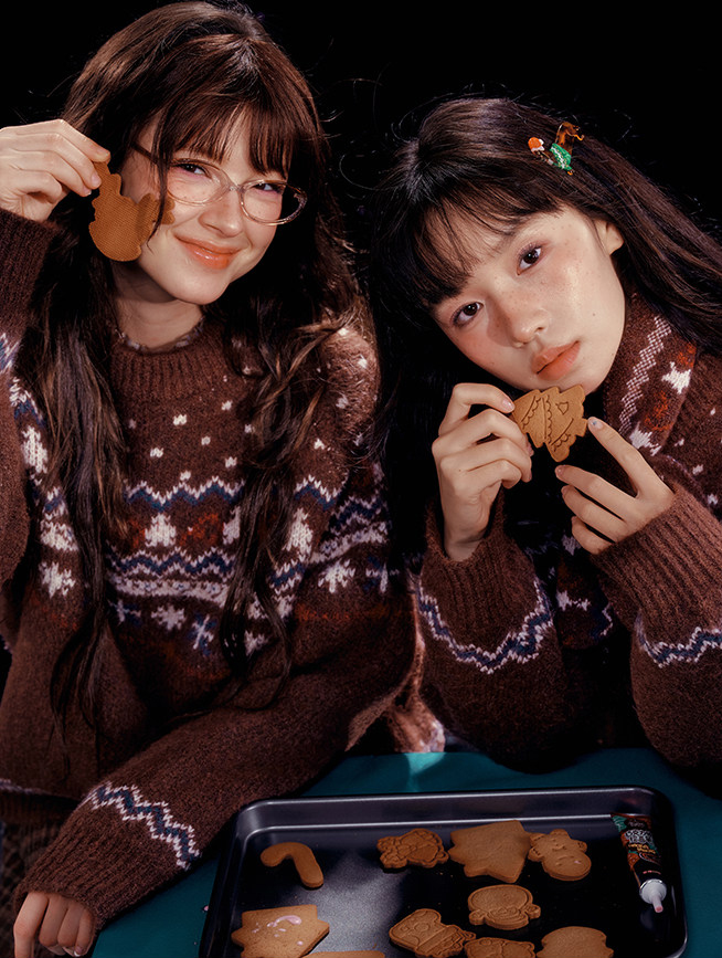 - 전통적인 페어아일 패턴을 브라운 톤으로 재해석한 빈티지 감성 니트