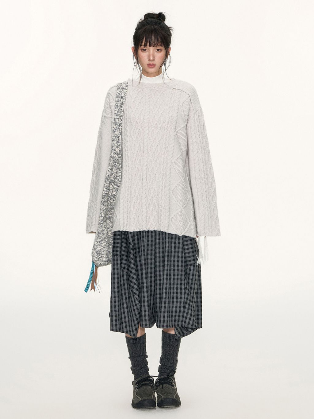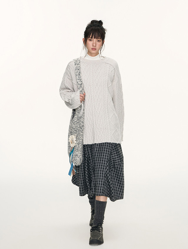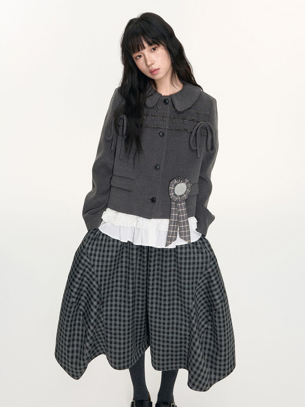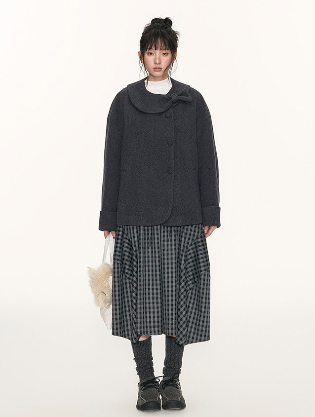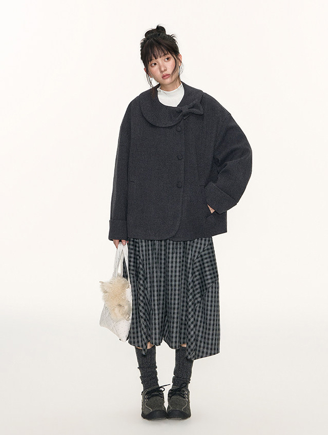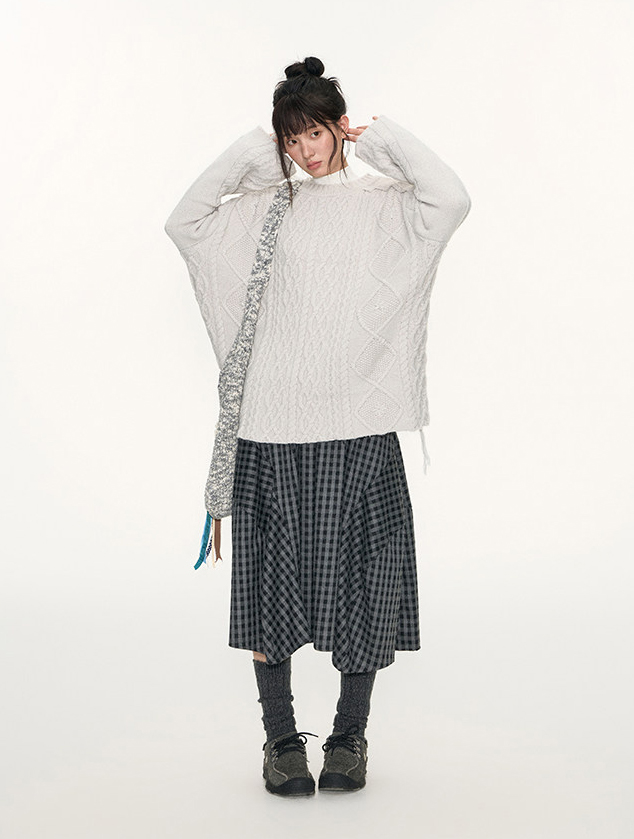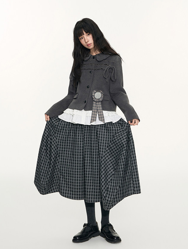 잔잔한 체크 패턴과 자연스럽게 퍼지는 실루엣이 어우러진 스커트형 스커트로, 움직임에 따라 리듬감 있는 분위기를 완성하는 아이템입니다.