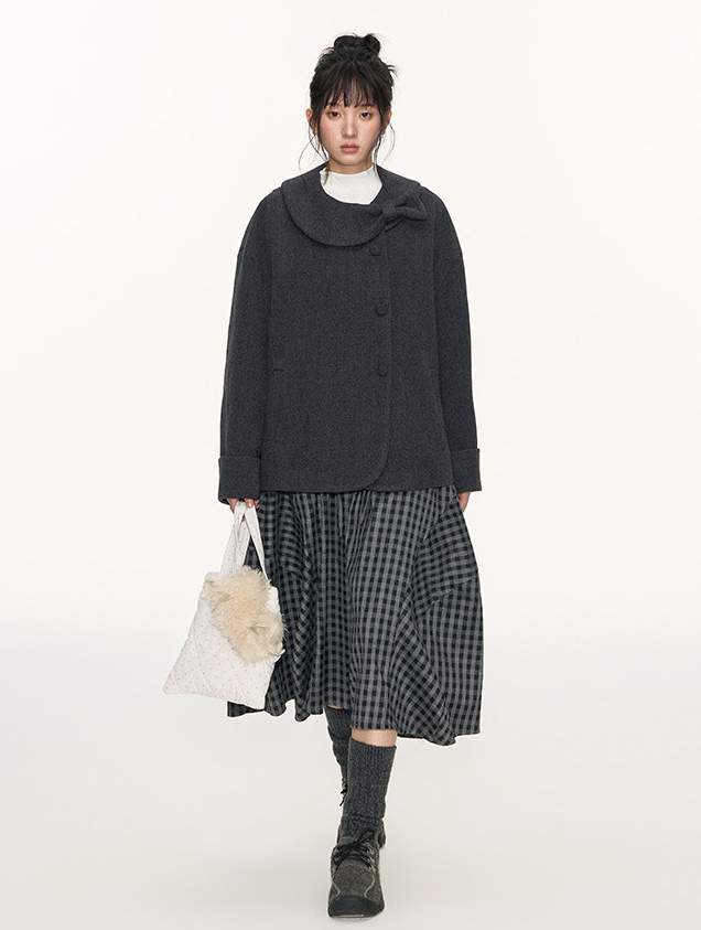 - 차콜 그레이 톤의 체크 패턴으로 차분하면서도 빈티지한 무드 연출
