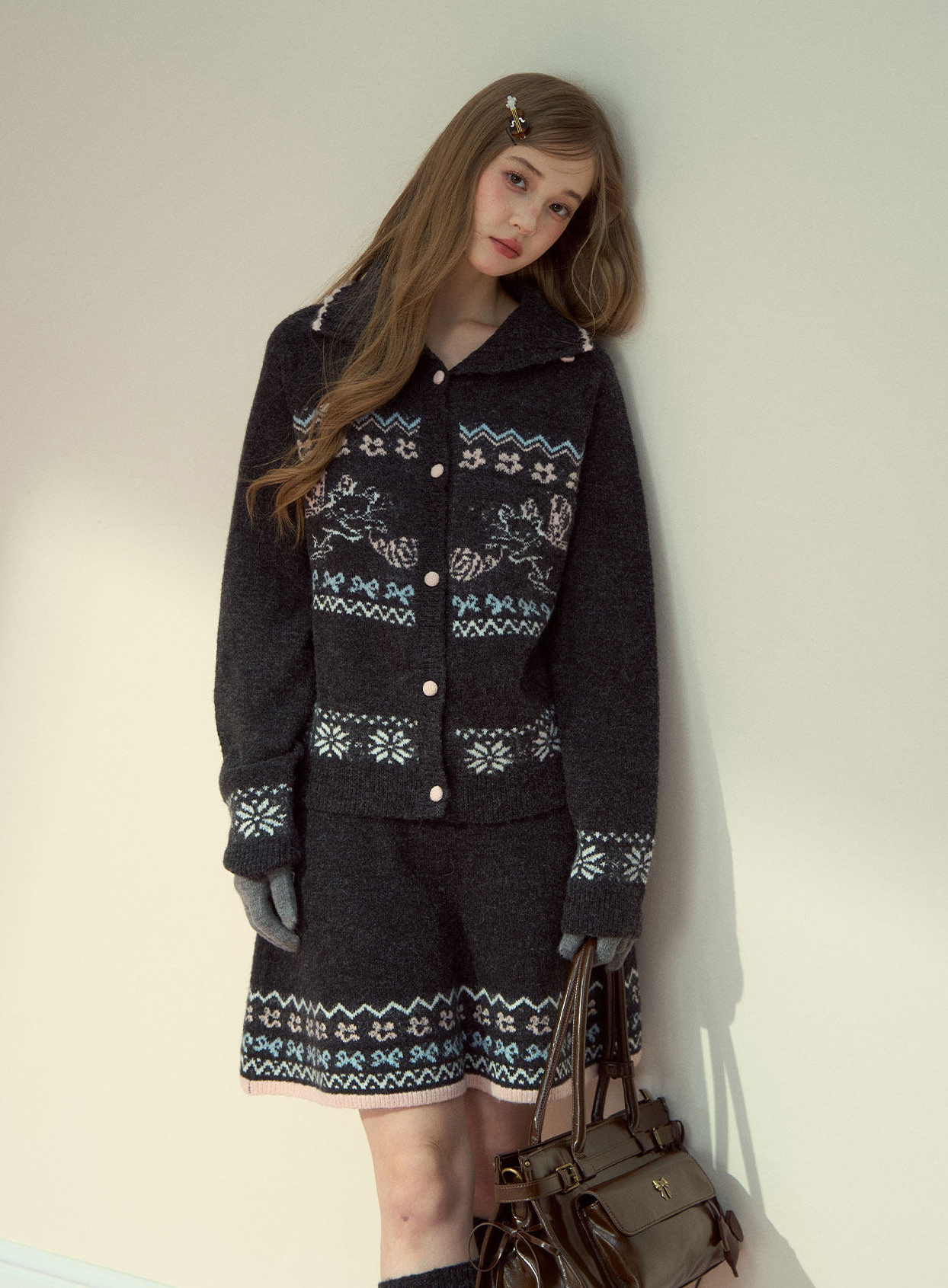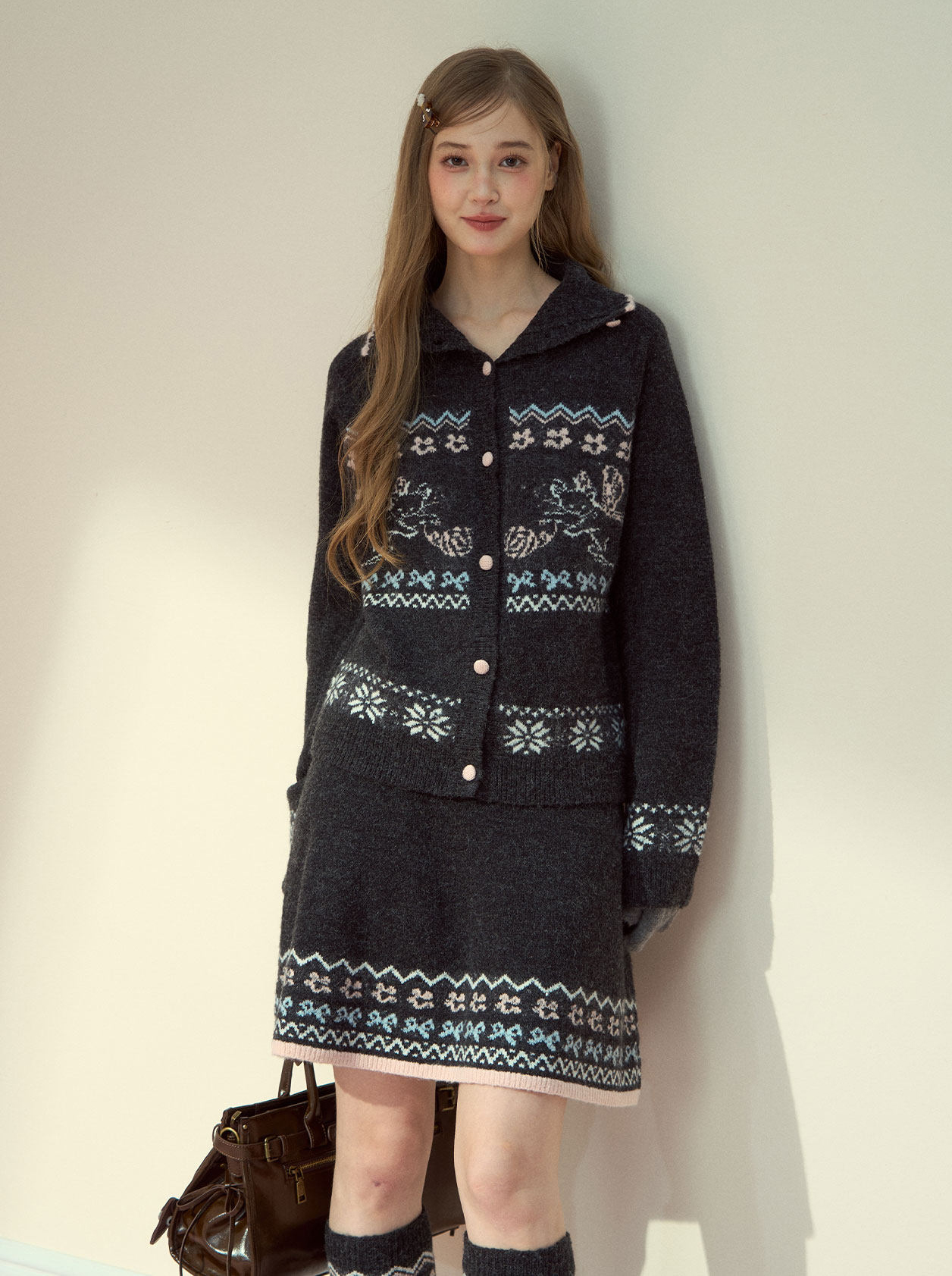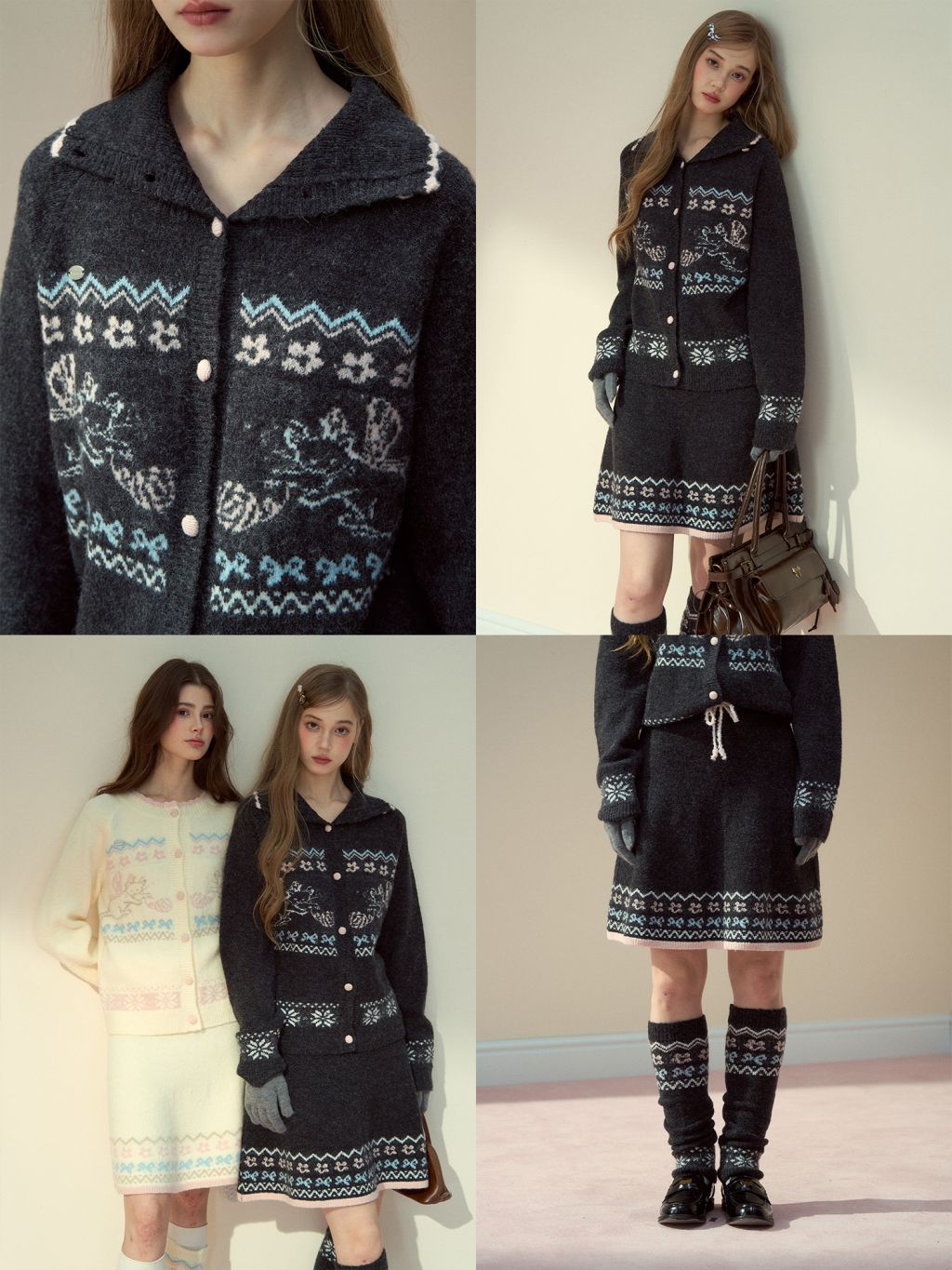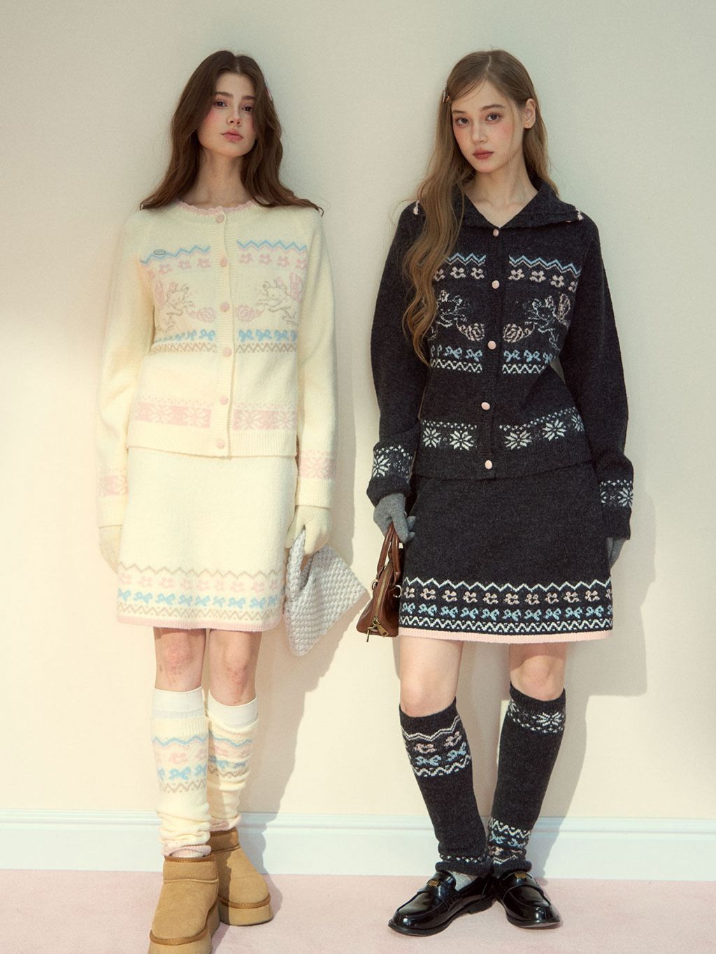 Angel Kitty Fair Isle Knit Set (Cardigan & Skirt : Sold Separately)